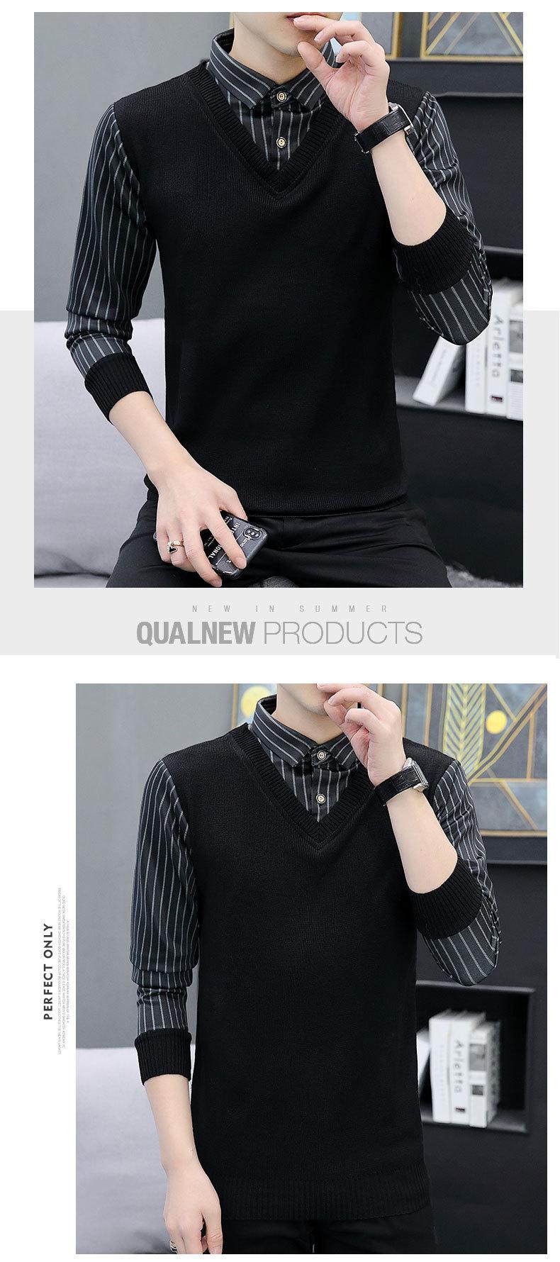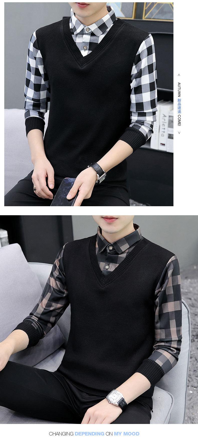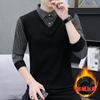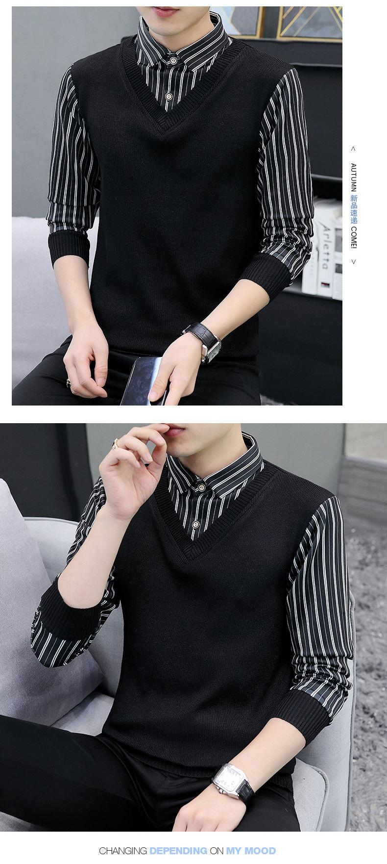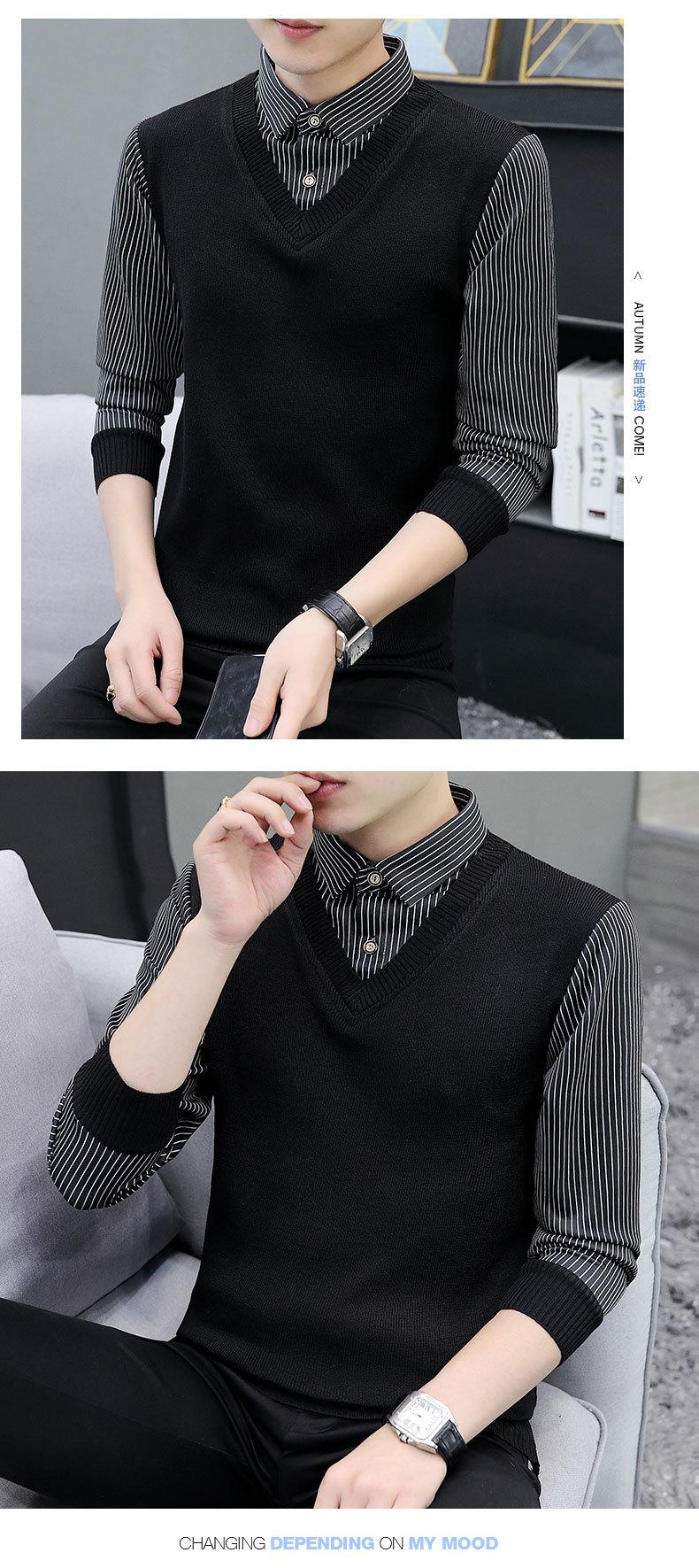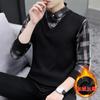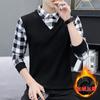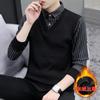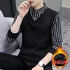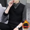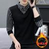 Suéter de Otoño e Invierno de Dos Piezas Falsas para Hombre con Cuello de Camisa, Tejido de Punto de Otoño Moderno, Top Grueso con Forro Polar, Suéter con Cuello en V