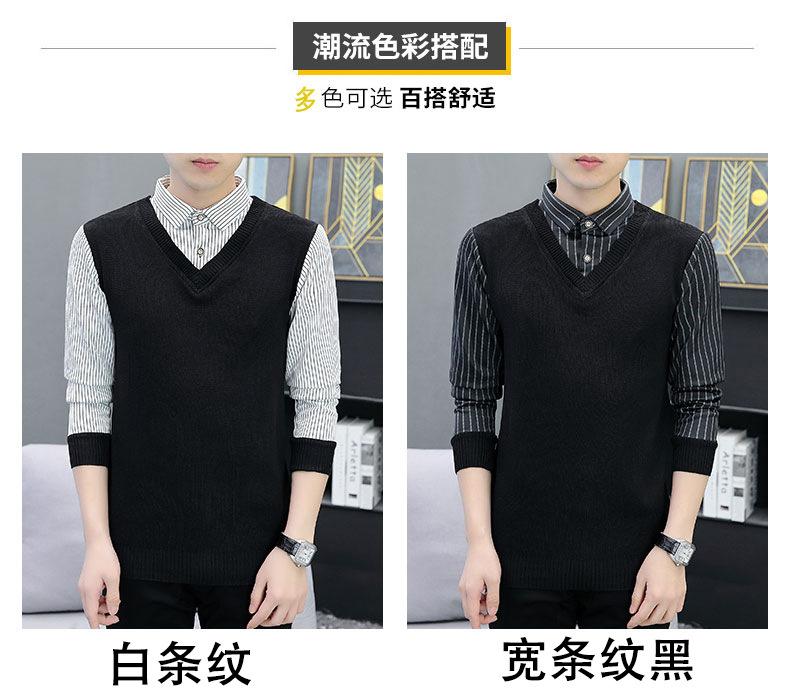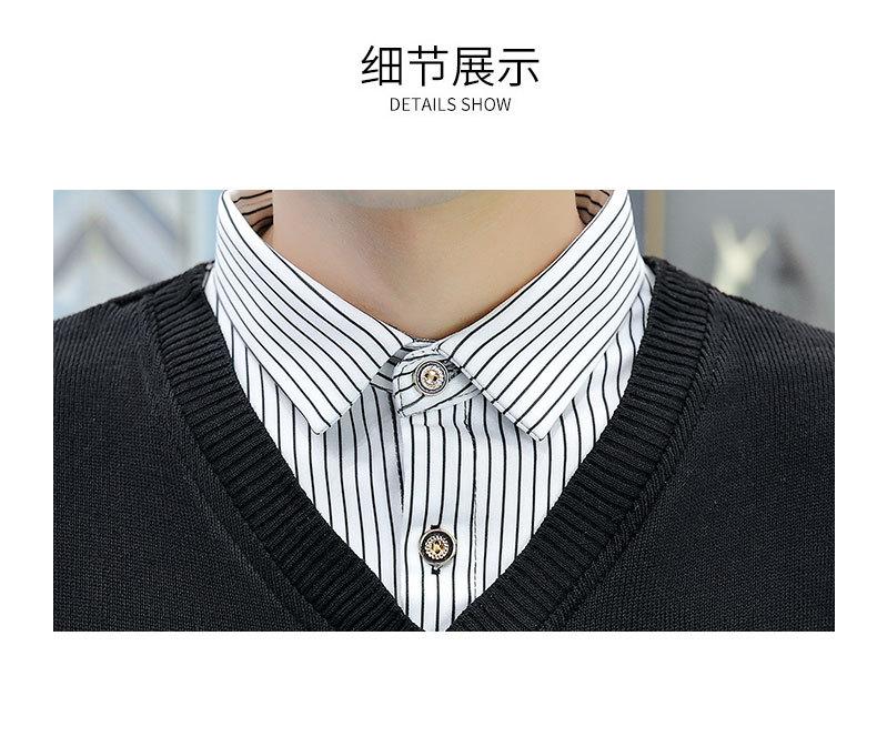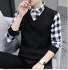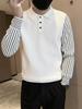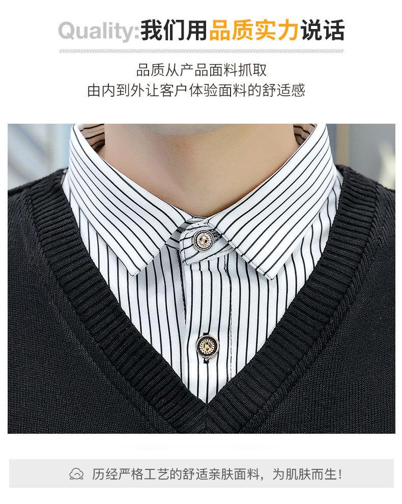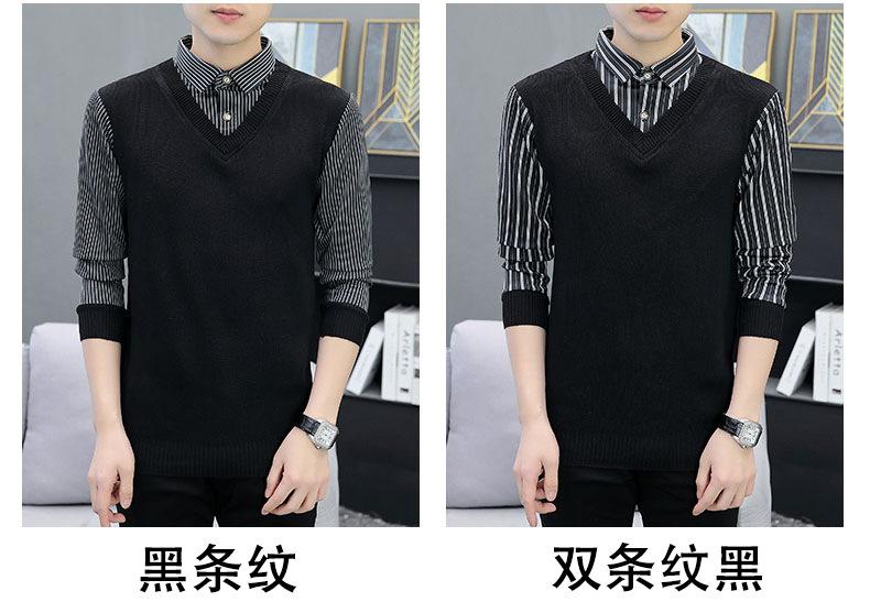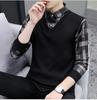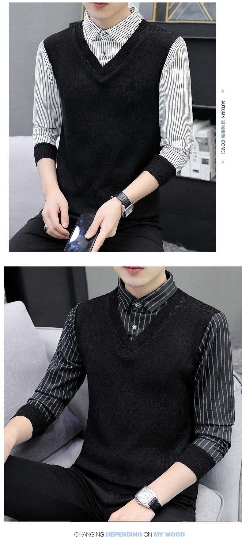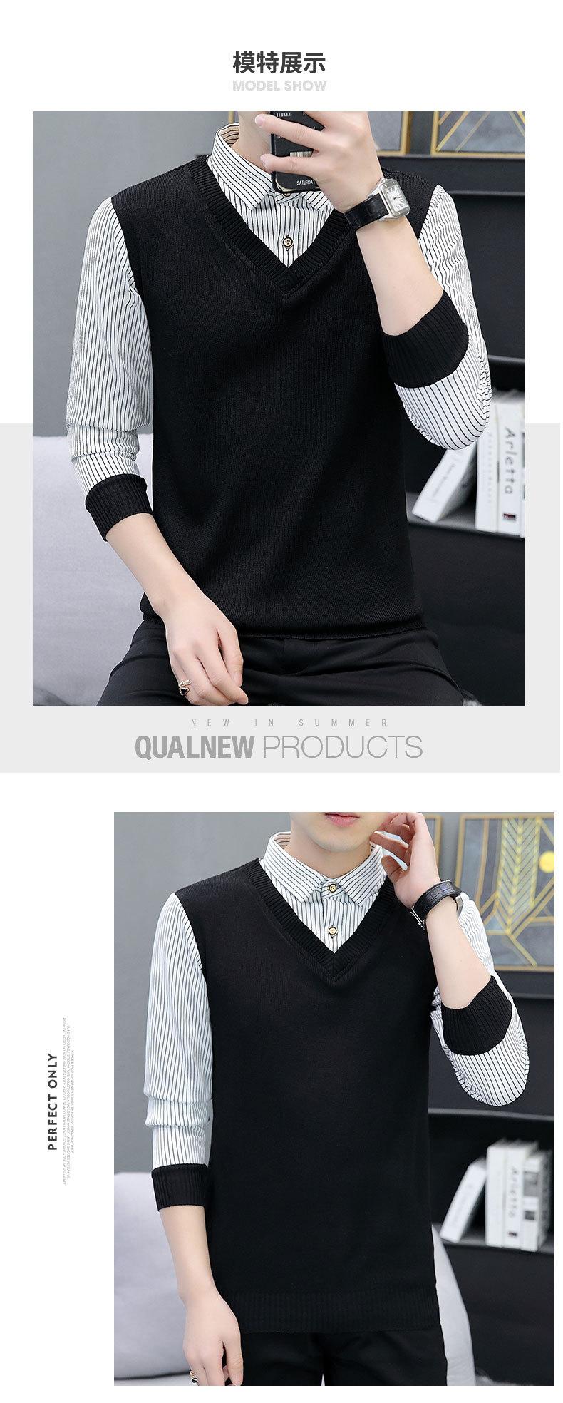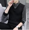 Suéter de Otoño e Invierno de Dos Piezas Falsas para Hombre con Cuello de Camisa, Tejido de Punto de Otoño Moderno, Top Grueso con Forro Polar, Suéter con Cuello en V