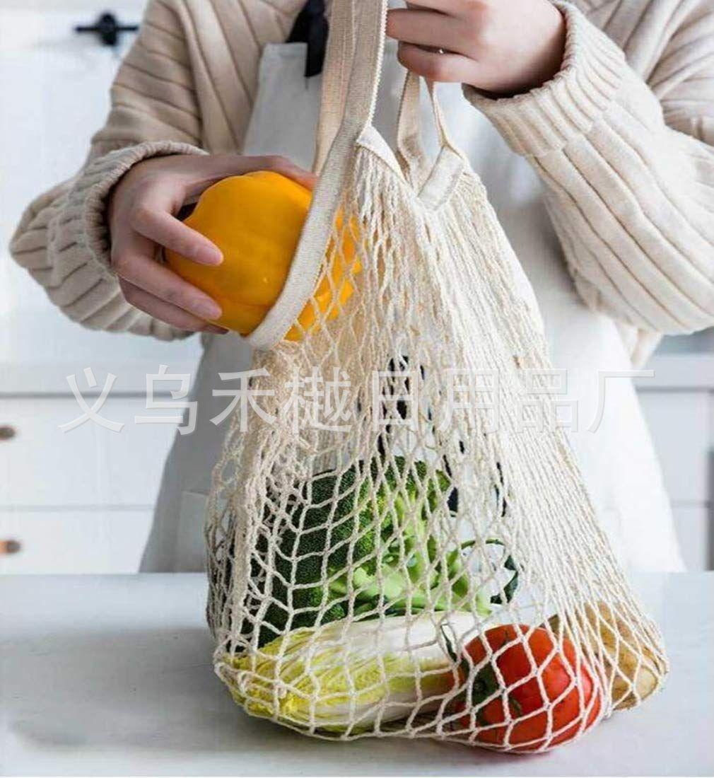 Bolsa de Compras de Supermercado Bolsa Portátil de Todo Algodón Bolsa de Malla de Algodón Bolsillo de Red para Verduras Frutas Bolsa de Recolección