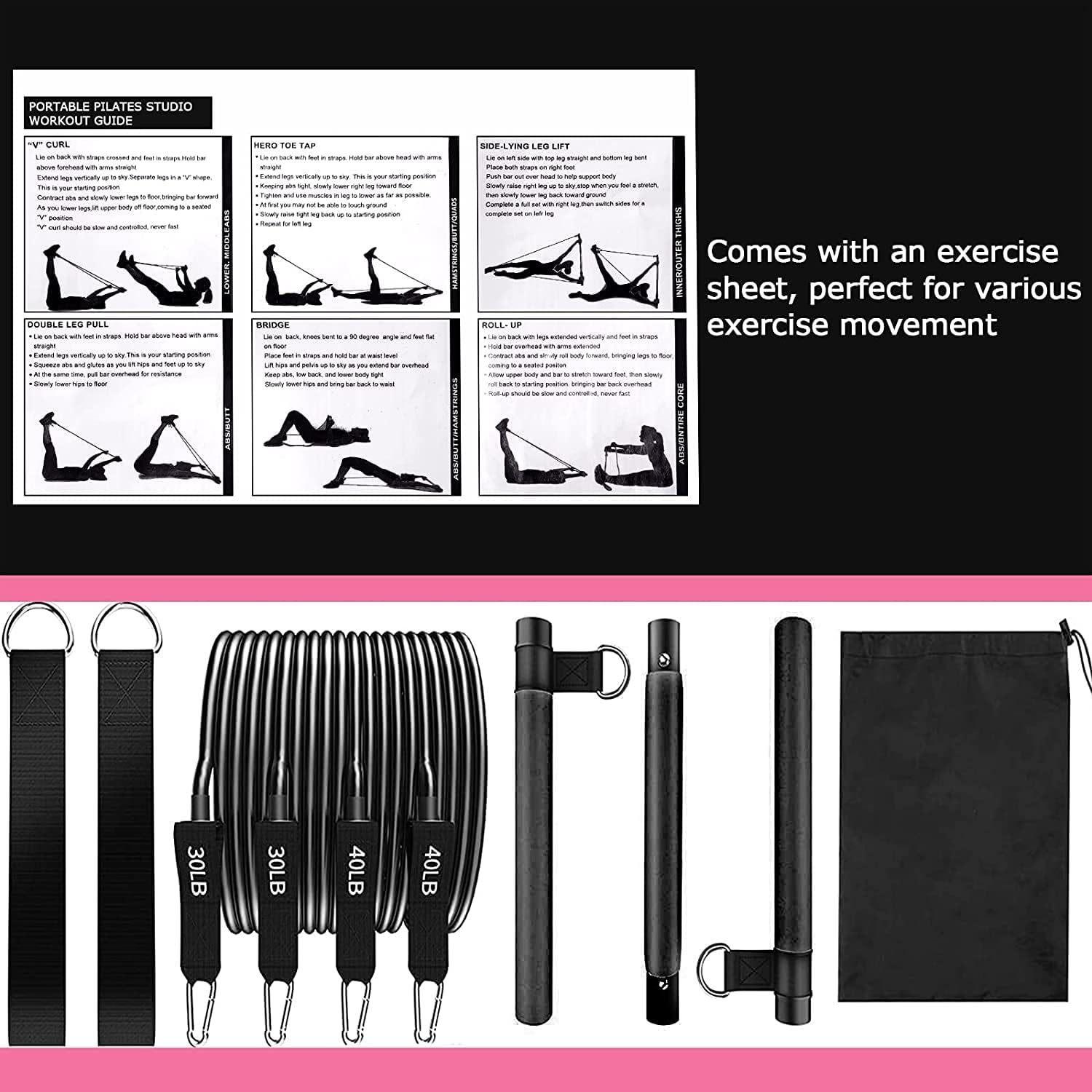 Set de 11 piezas de barra de Pilates multifuncional: cuerda de tracción para entrenamiento de fuerza, barra de Pilates ajustable para el hogar