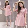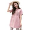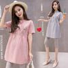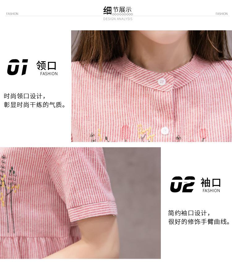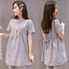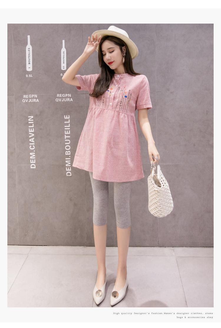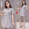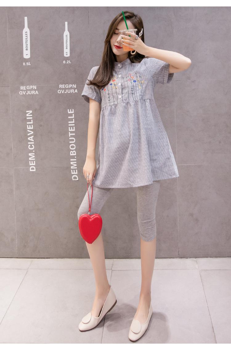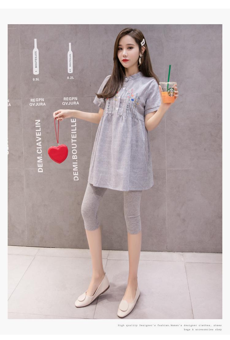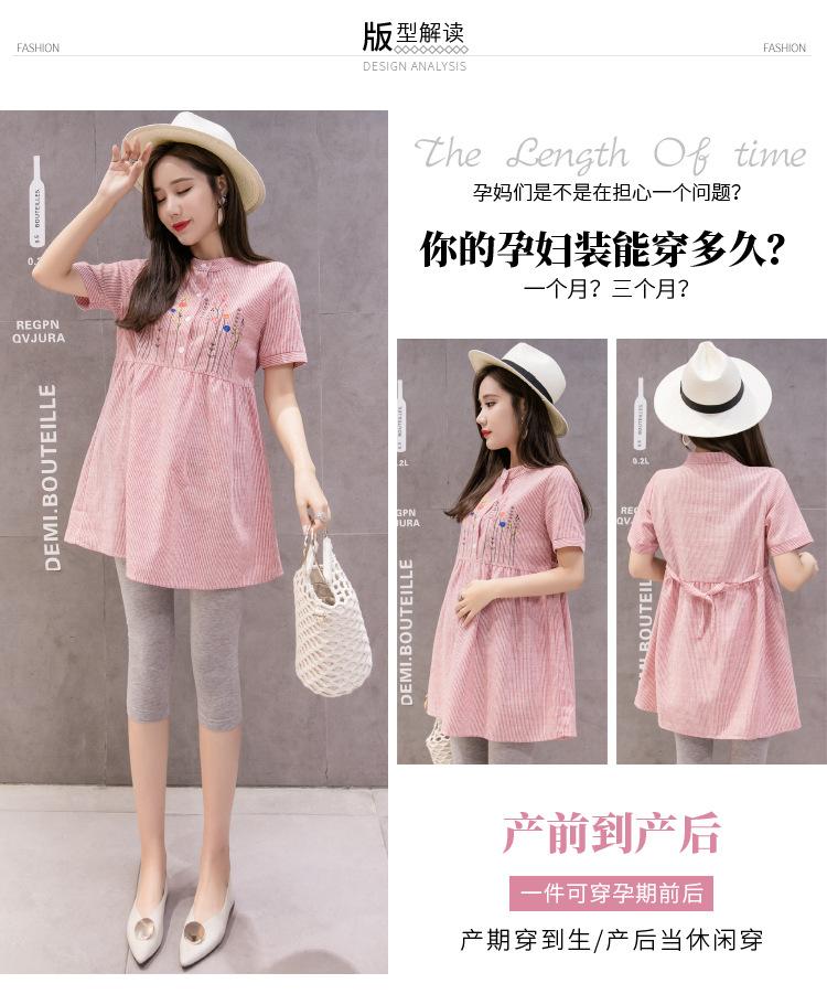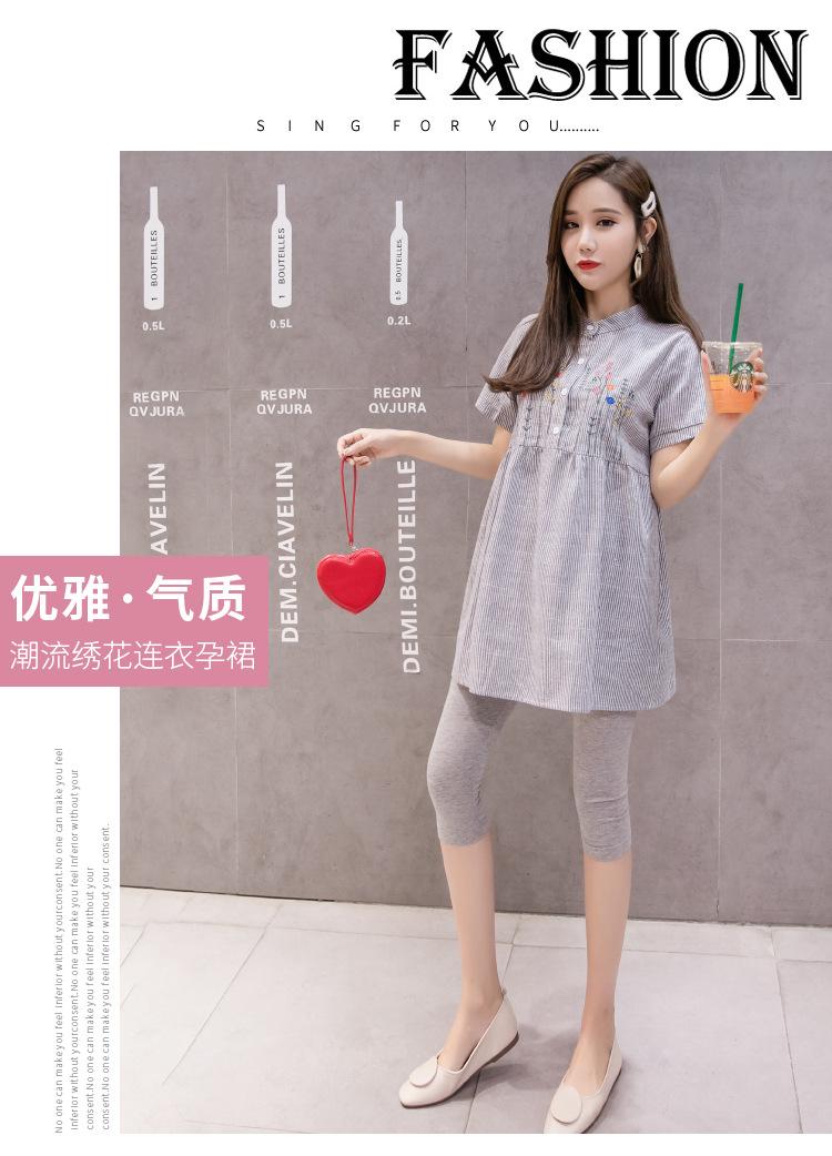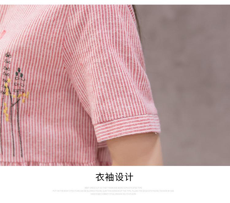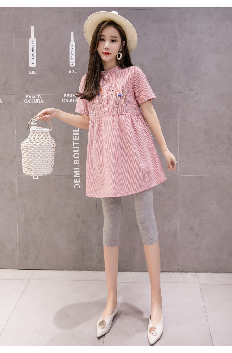 Vestido de maternidad 2024 verano Nuevo Cuello alto Algodón lino media longitud a rayas bordado holgado talla grande vestido para mujeres embarazadas
