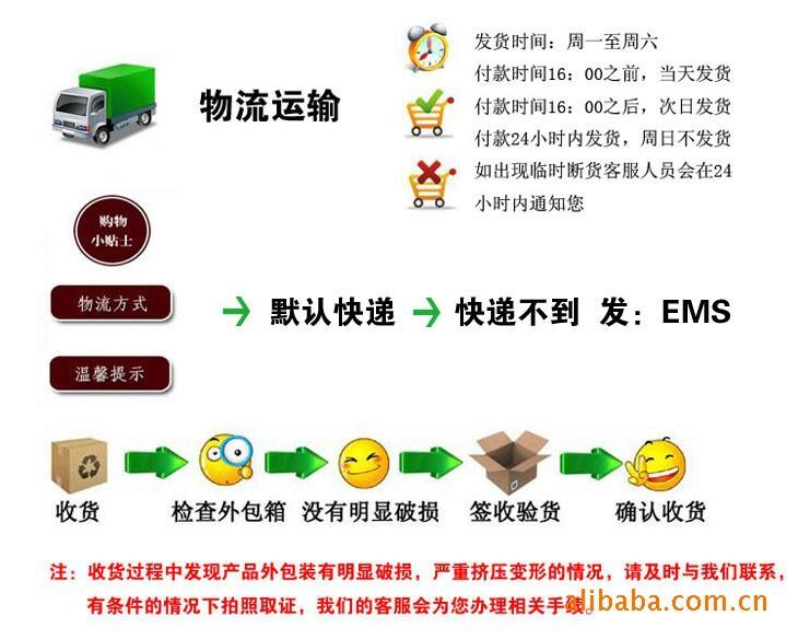 03 Entrega exprés y logística: Nuestro servicio de mensajería predeterminado es Zhongtong Express. Si necesita otros servicios de mensajería, póngase en contacto con el servicio de atención al cliente en línea. Si el servicio de mensajería no puede realizar la entrega o necesita la mercancía con urgencia, póngase en contacto con el servicio de atención al cliente para cambiar a Shunfeng y Postal Express. Para envíos a granel por logística, indique al servicio de atención al cliente la dirección de la empresa de logística más cercana y el nombre de la estación de envío para que pueda recoger la mercancía lo antes posible y en la ubicación más cercana. Declaramos solemnemente que no podemos controlar la entrega exprés ni la logística. Por favor, no utilice su insatisfacción con el servicio de entrega exprés ni con la demora en la entrega como motivo para evaluarnos.