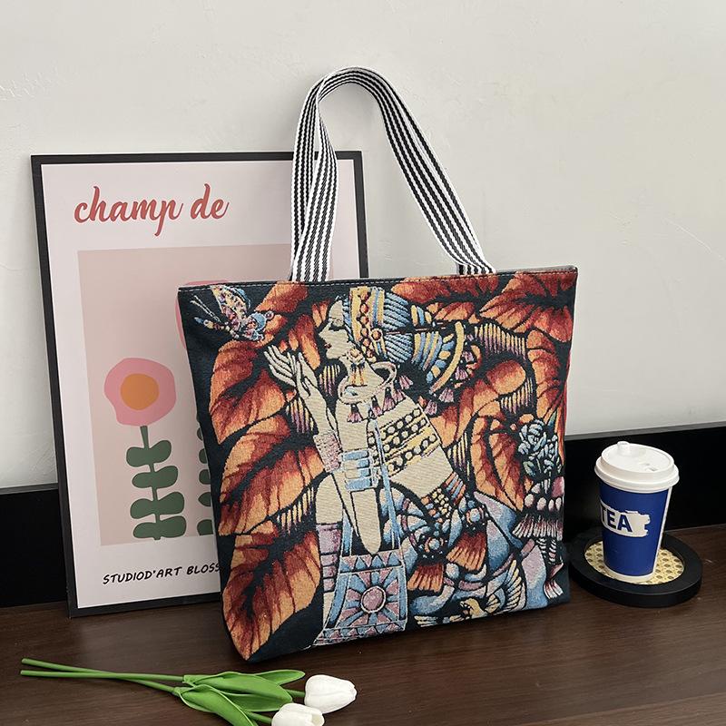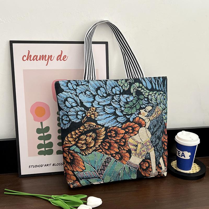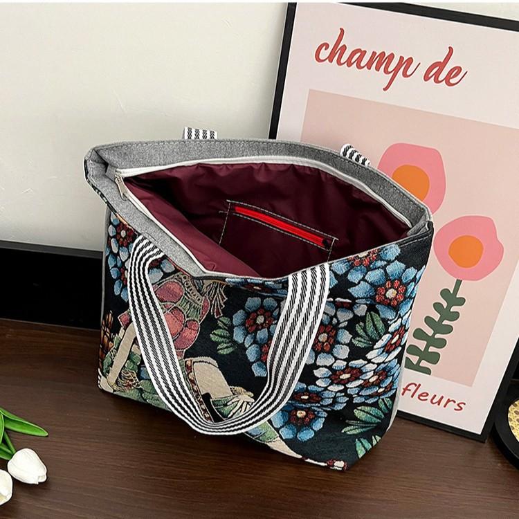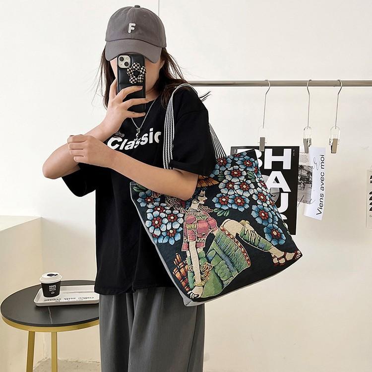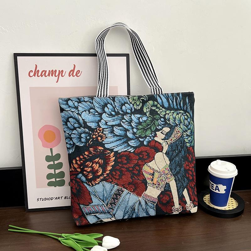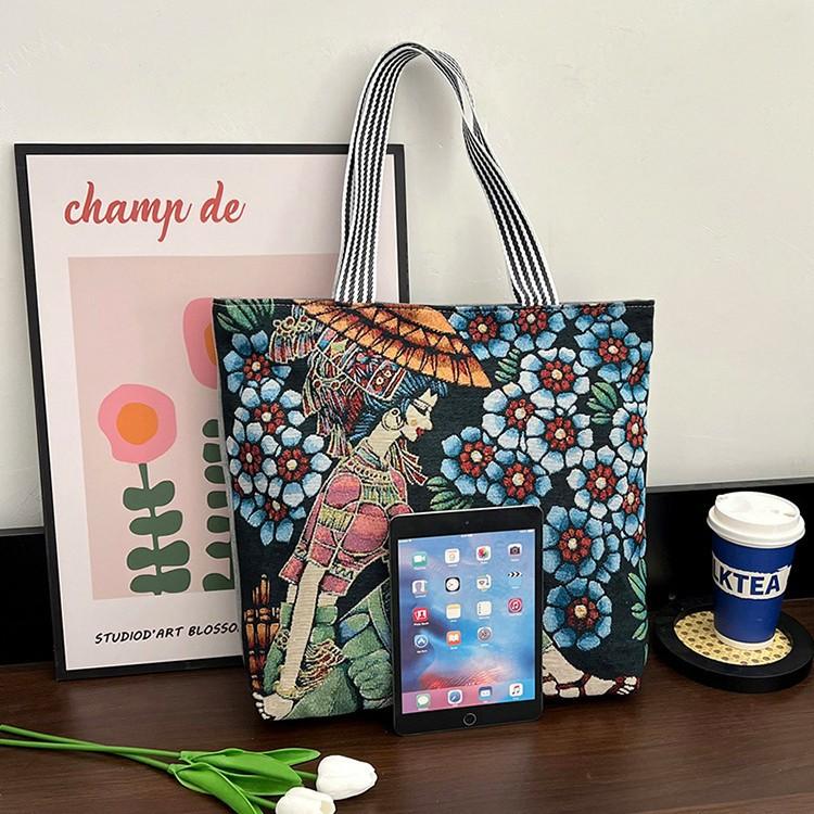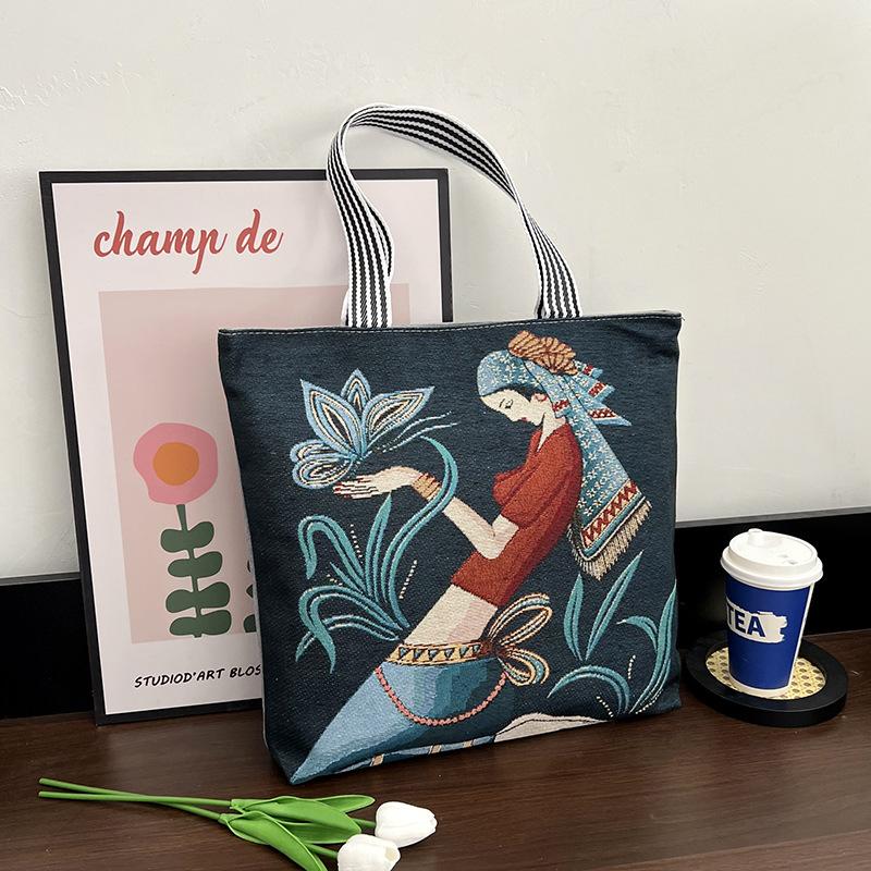 Eleva tu colección al por mayor con estas bolsas tote de lona bordadas a mano que combinan el encanto retro con la funcionalidad moderna.. Diseñados para la mujer contemporánea, estos bolsos espaciosos hacen la transición sin esfuerzo del trabajo al fin de semana con un atractivo atemporal.