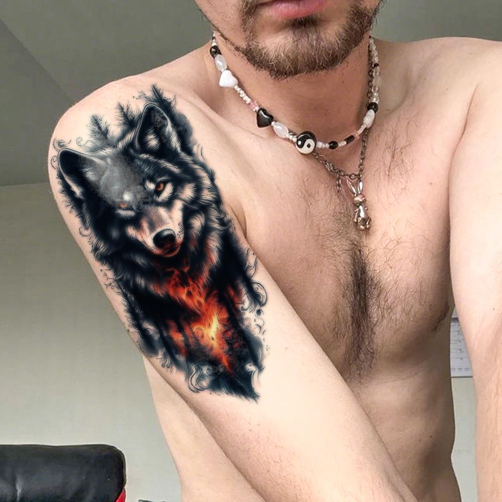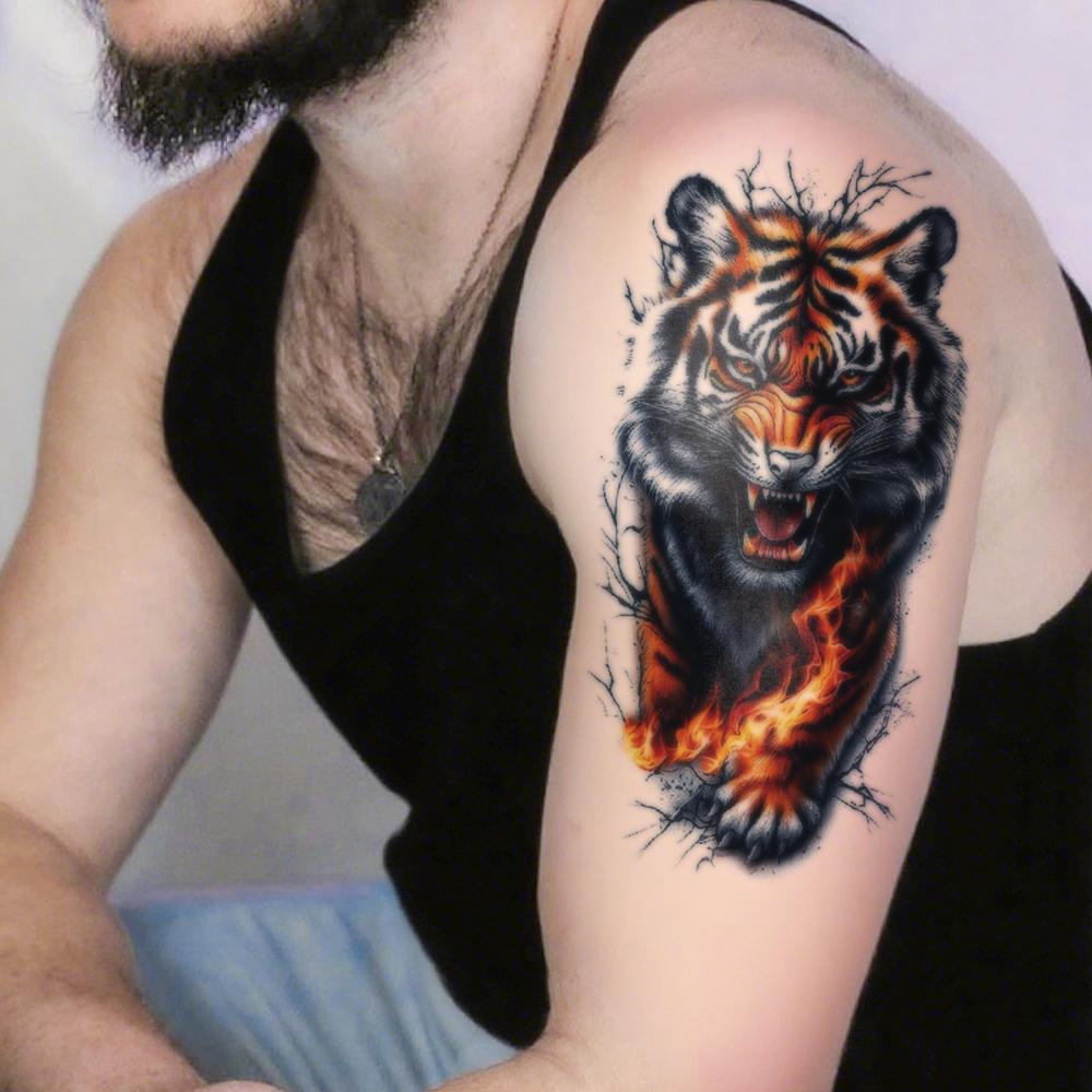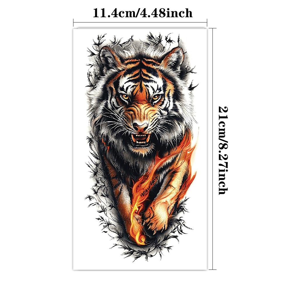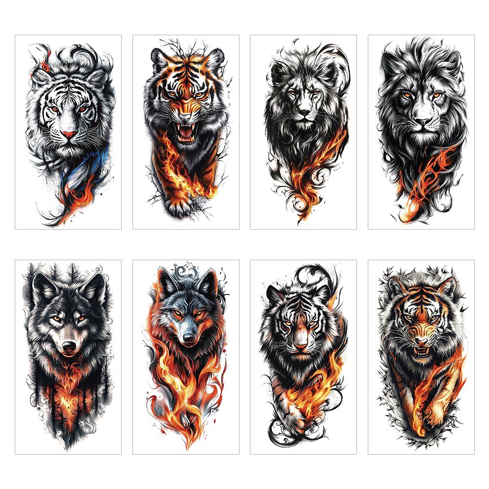 Tatuajes Temporales de Animales Valientes Tigre León Lobo Impermeables Larga Duración Tatuaje Falso Tamaño Grande Adecuado para Hombres y Mujeres Brazos Hombros Cuello Espalda Cintura Piernas Fiesta de Vacaciones Maquillaje Corporal Cubre Cicatrices Decoración Corporal de Moda Diaria También se Puede Usar como Regalos de Vacaciones, Regalos de Cumpleaños