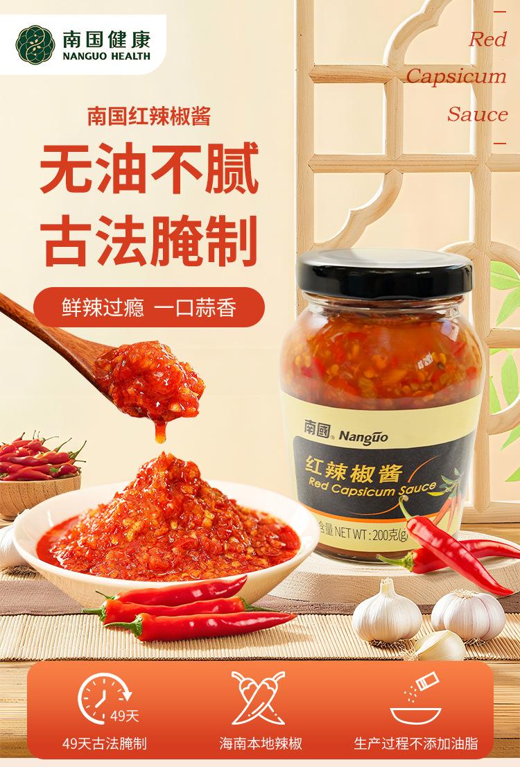Salsa de Chile Rojo Nanguo 200g Especialidad de Hainan Plato Aperitivo Fideos Arroz Mijo Salsa de Chile Sabor Sichuan Salsa de Chile Picado Picante
