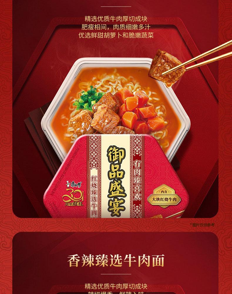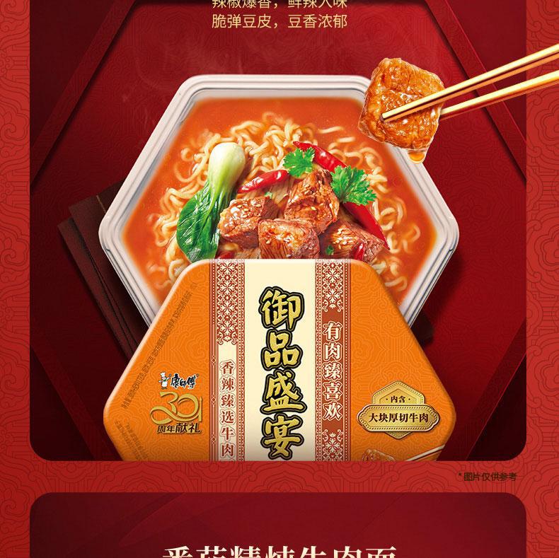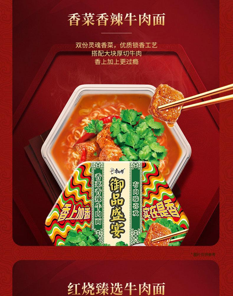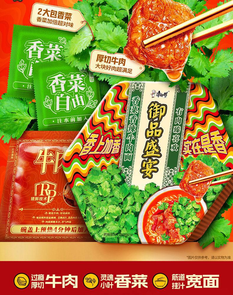 【Lanzamiento de Nuevo Sabor】Fiesta Imperial de Trozos Grandes de Carne Cilantro Fideos de Res Picantes Fideos Instantáneos