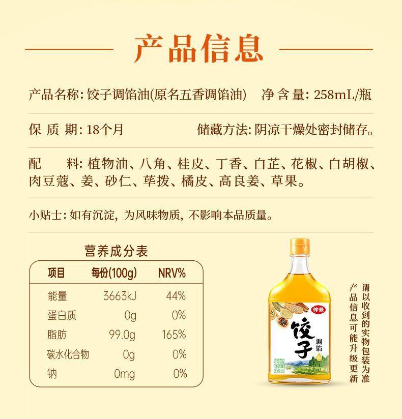 Compra Aceite Cinco Especias Zhongjing Aceite para Dumplings Condimento Trece Especias para Cangrejo de Río Relleno para Dumplings Aceite Condimento para Saltear 125/258ml al por mayor en Joom.pro