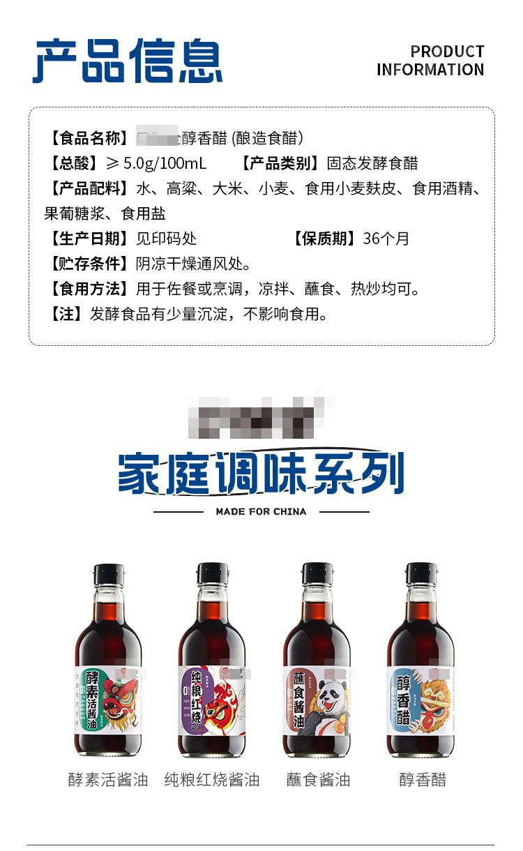 Vinagre de grano puro fermentado 340ml embotellado dumplings ensalada vinagre sazonador catering comercial mayoreo entrega de una pieza
