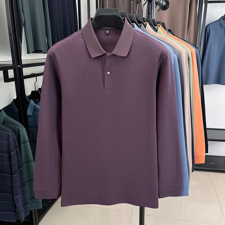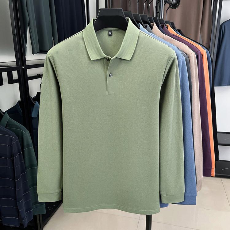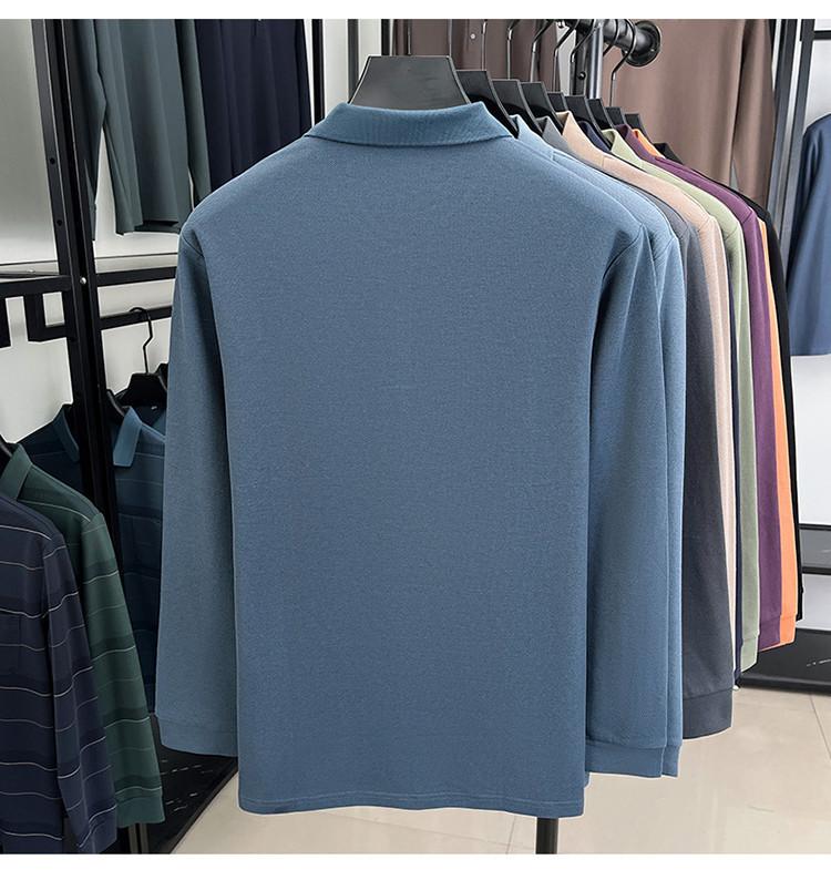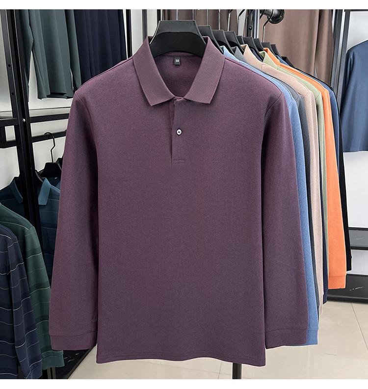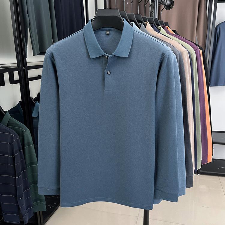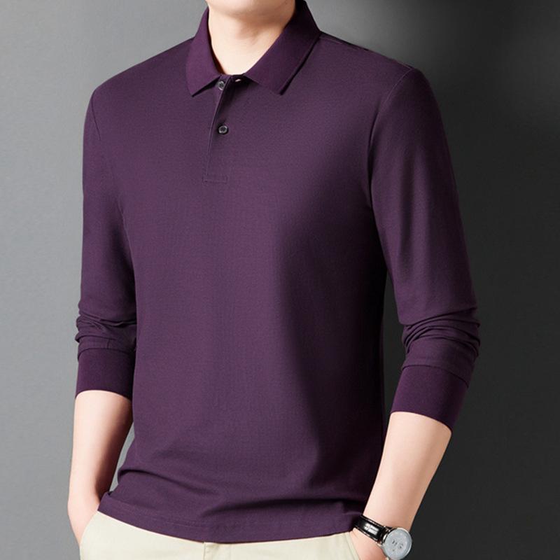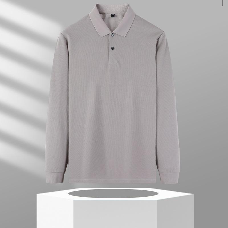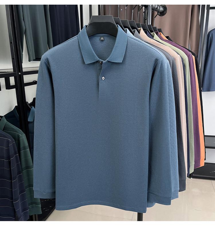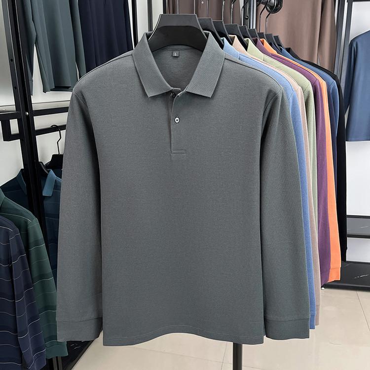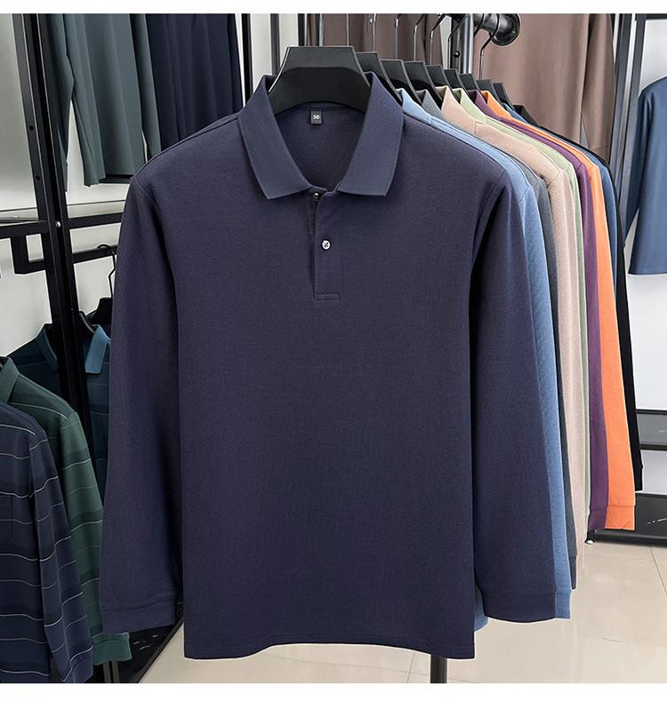 Playera de Manga Larga de Algodón 100% Puro para Hombre 2025 Otoño Nuevo Edad Media Negocios Casual Solapa Ropa de Papá Top Color Sólido