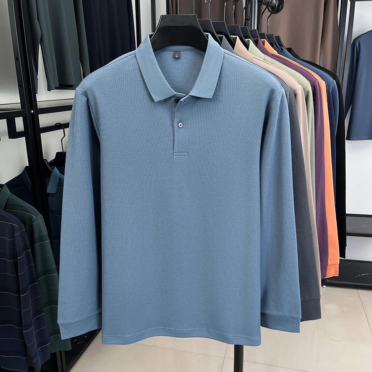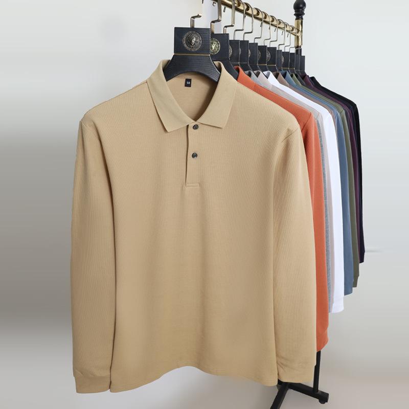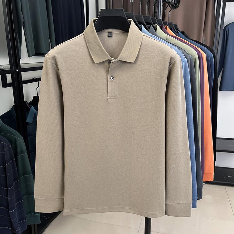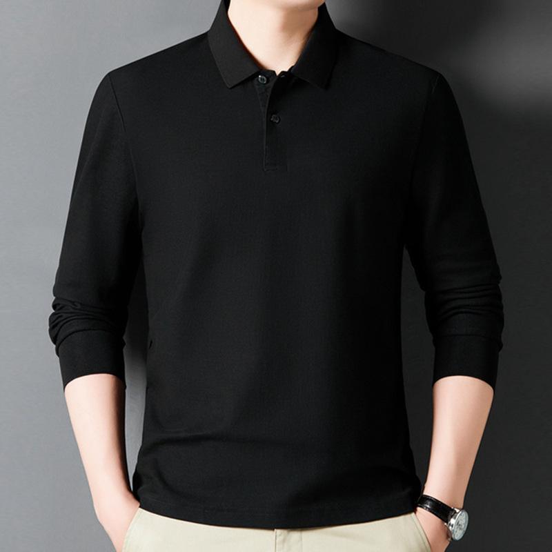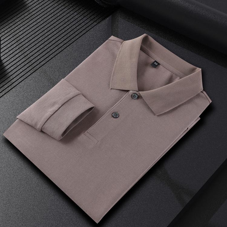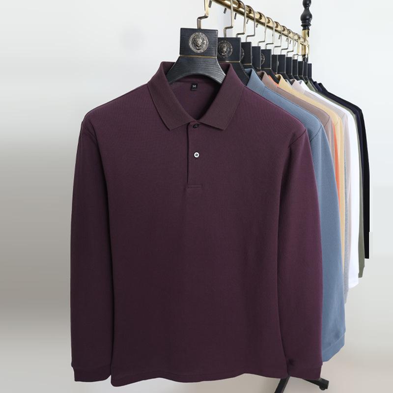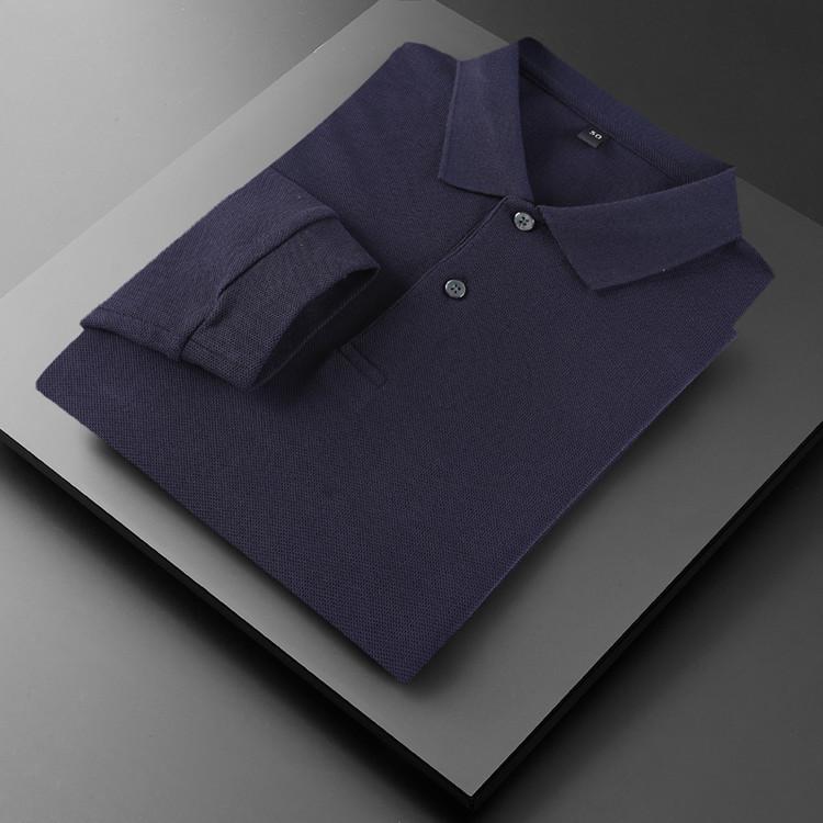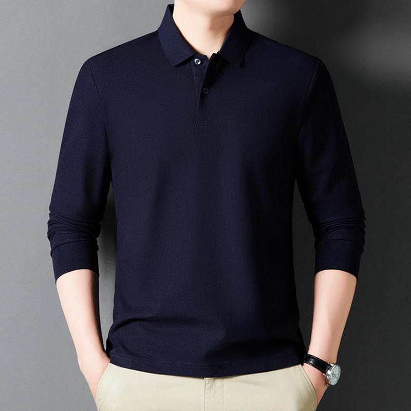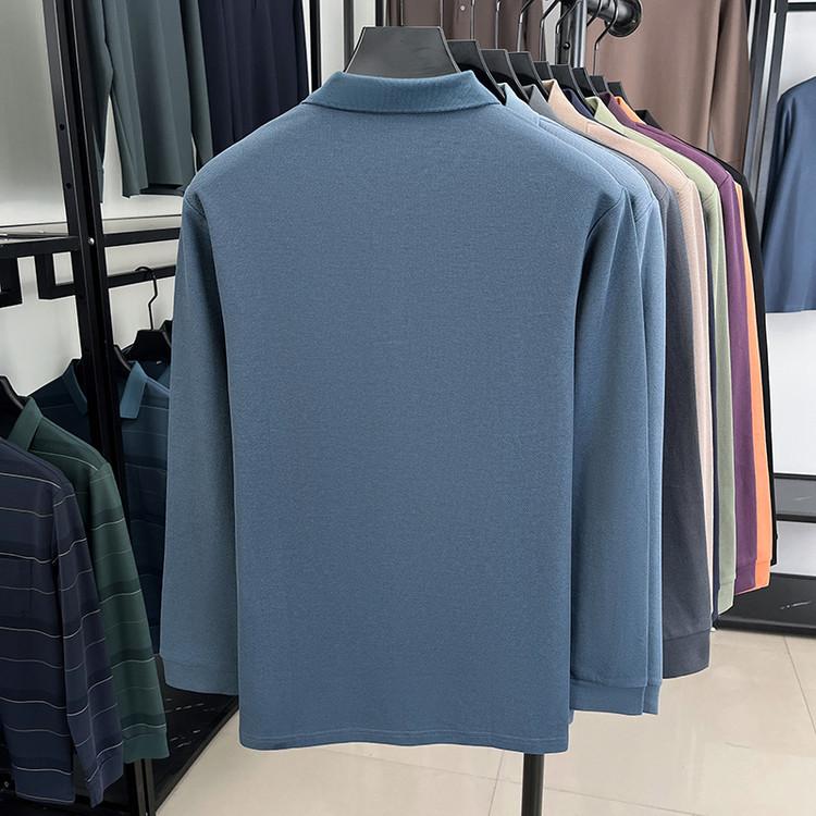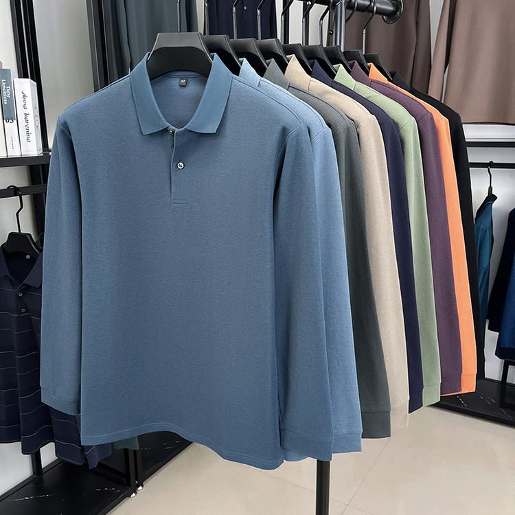 Playera de Manga Larga de Algodón 100% Puro para Hombre 2025 Otoño Nuevo Edad Media Negocios Casual Solapa Ropa de Papá Top Color Sólido