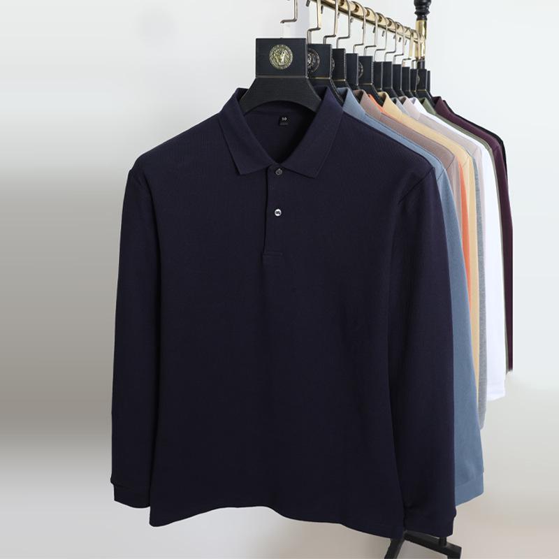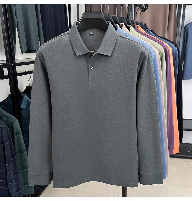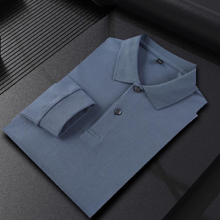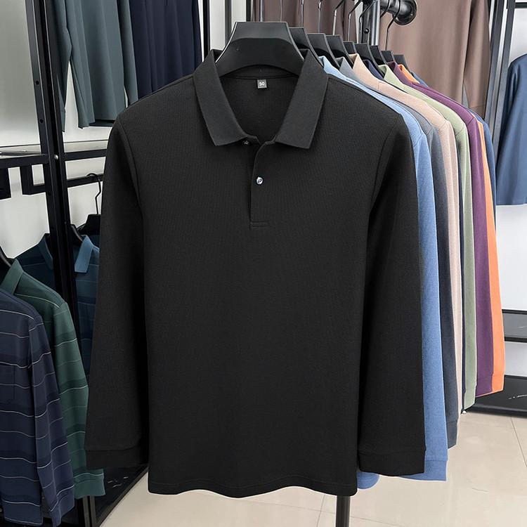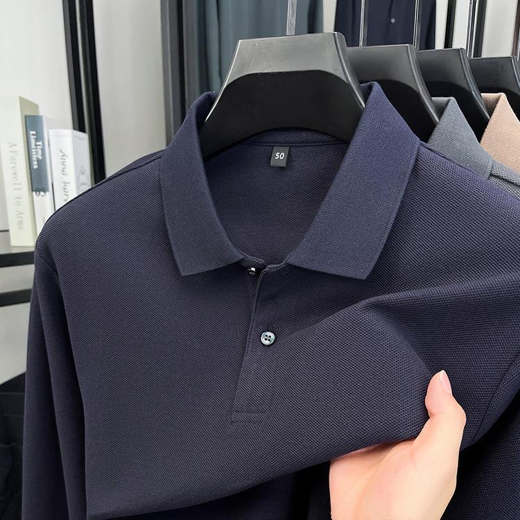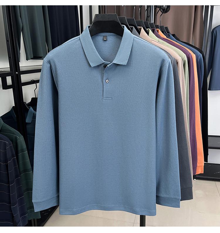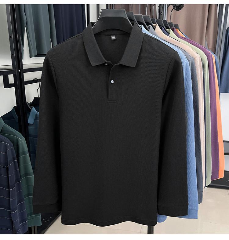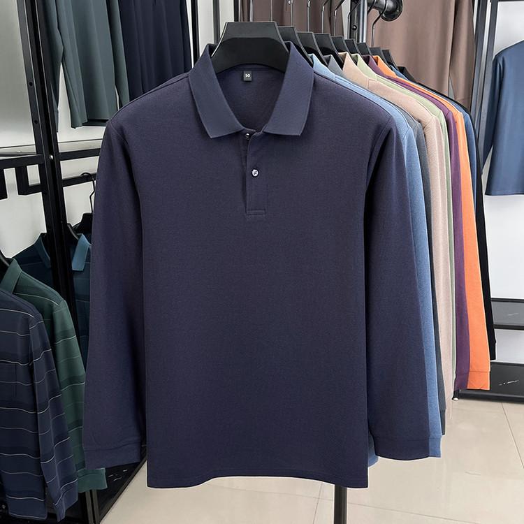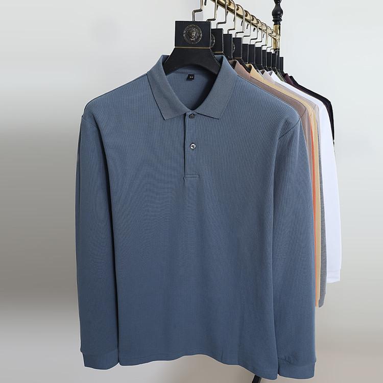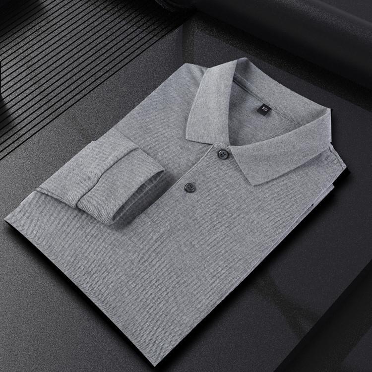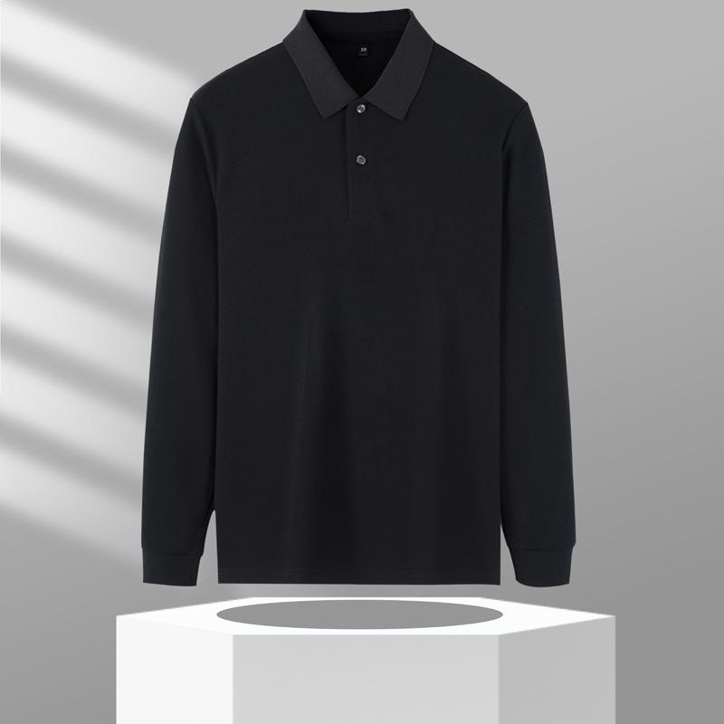 Playera de Manga Larga de Algodón 100% Puro para Hombre 2025 Otoño Nuevo Edad Media Negocios Casual Solapa Ropa de Papá Top Color Sólido