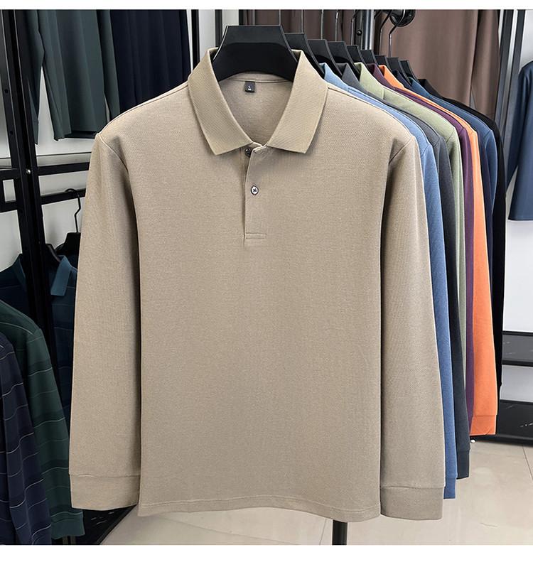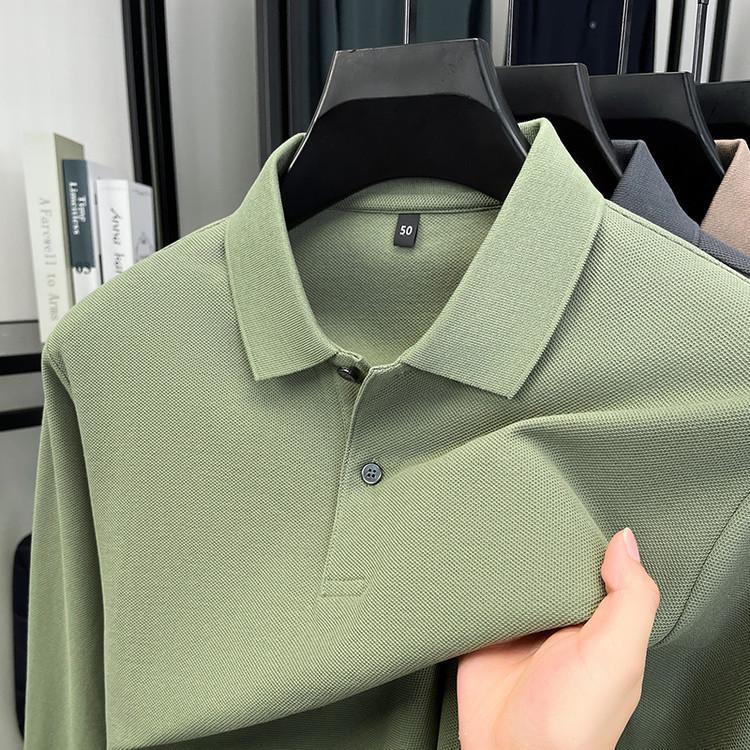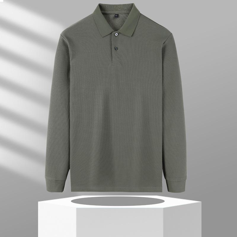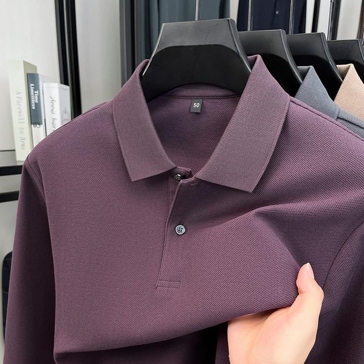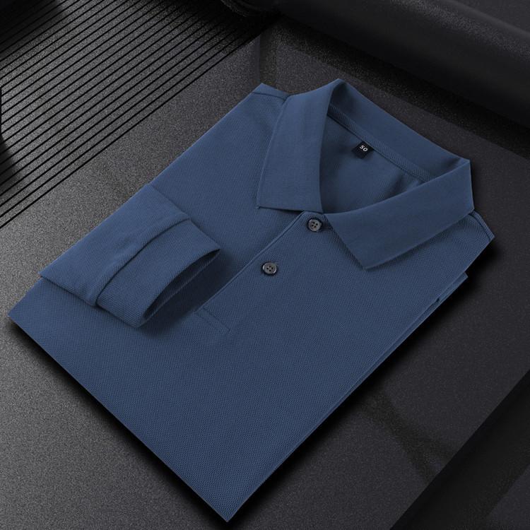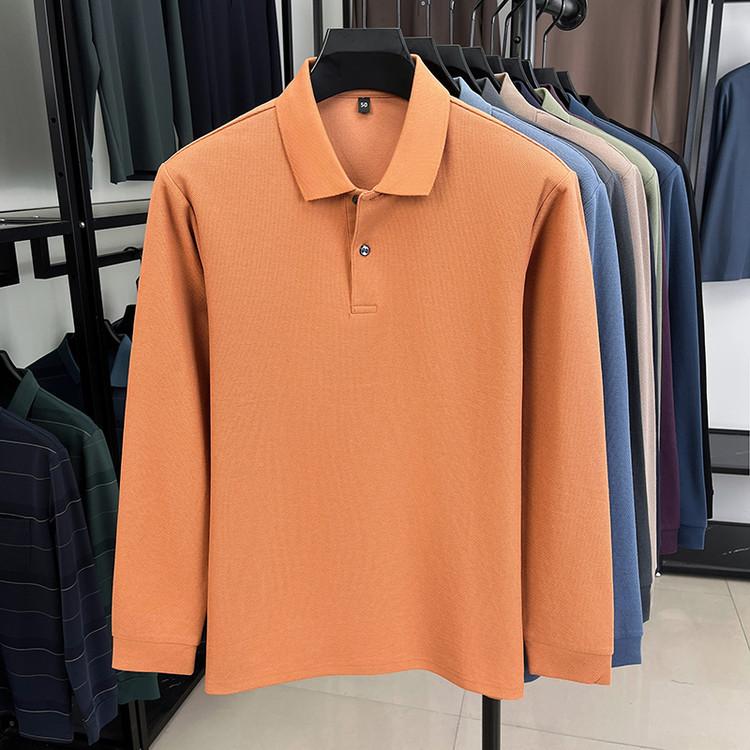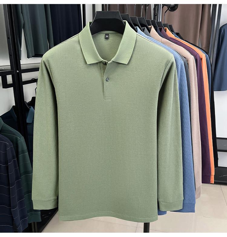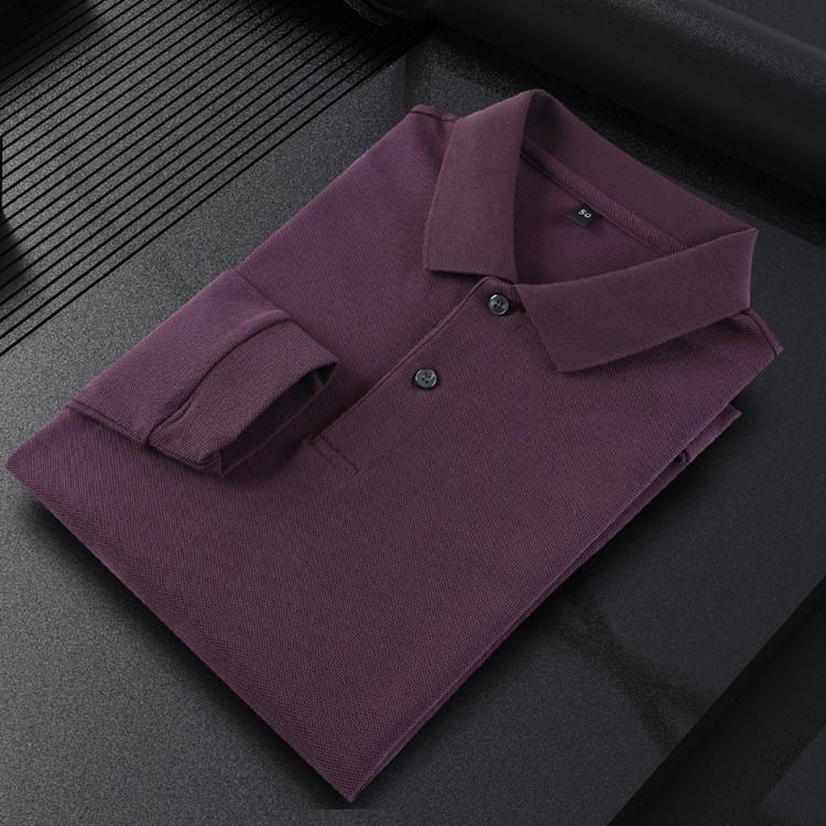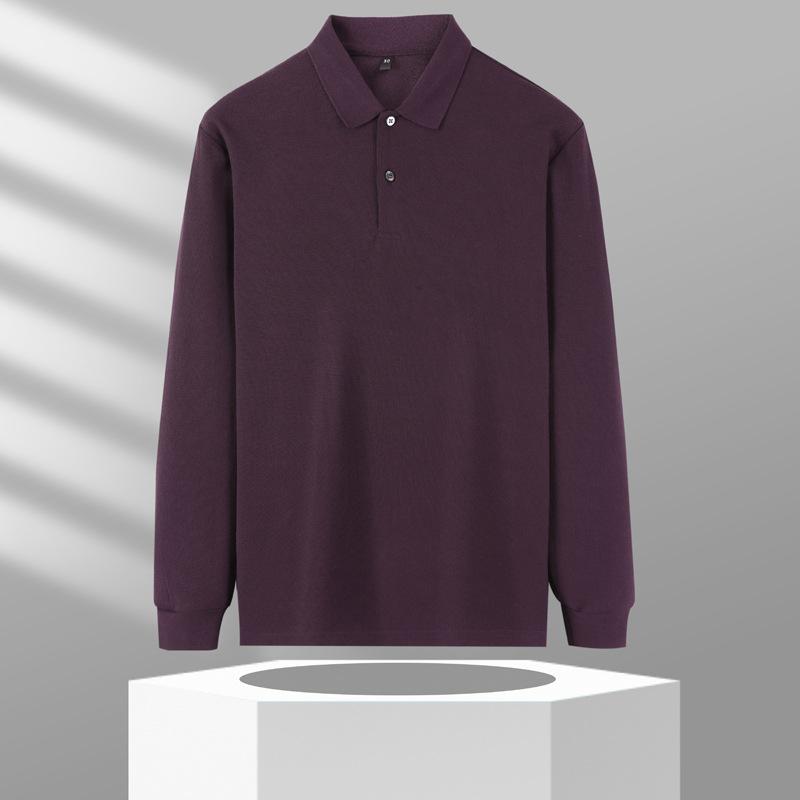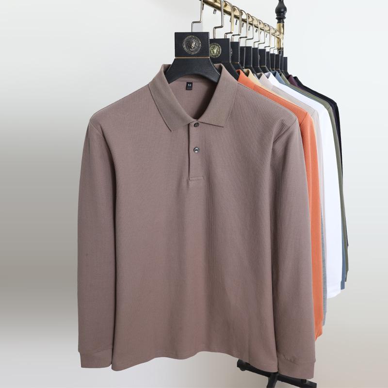Playera de Manga Larga de Algodón 100% Puro para Hombre 2025 Otoño Nuevo Edad Media Negocios Casual Solapa Ropa de Papá Top Color Sólido