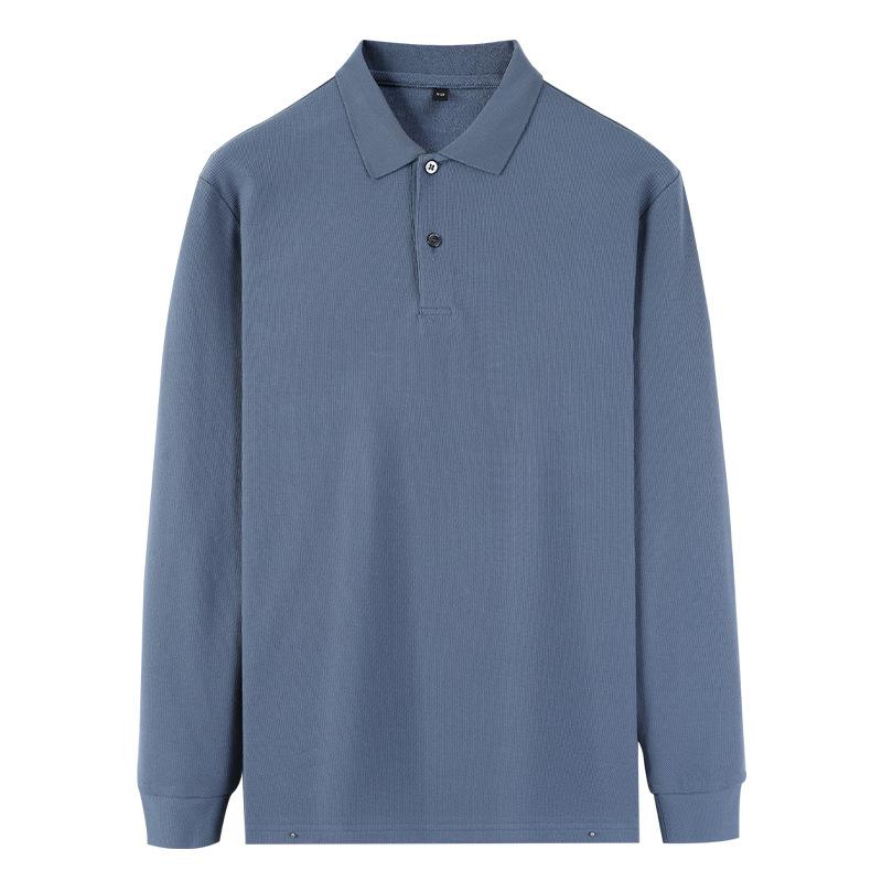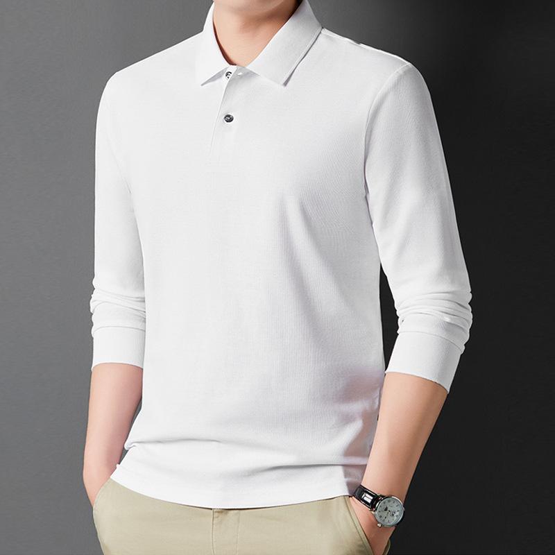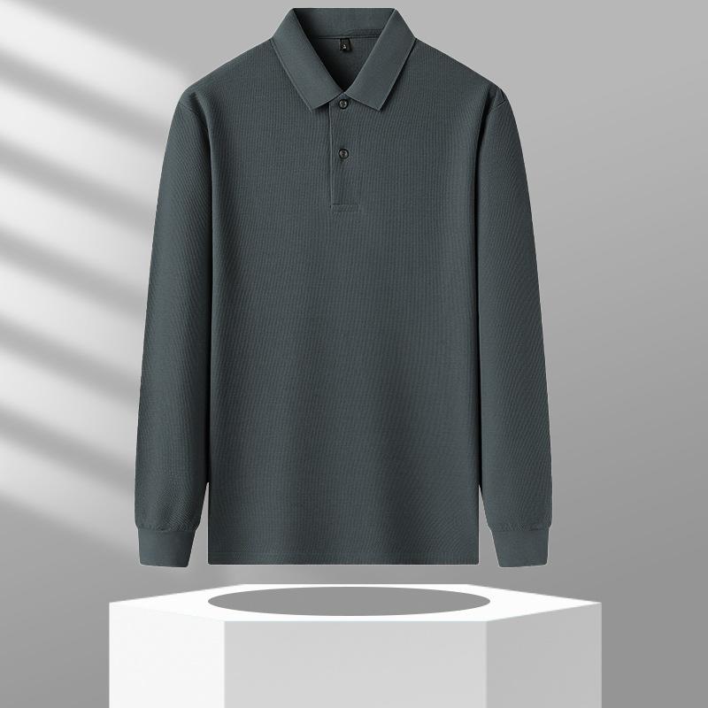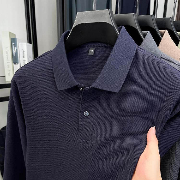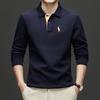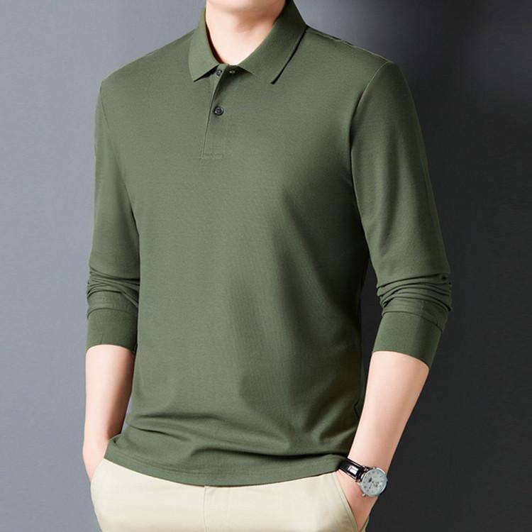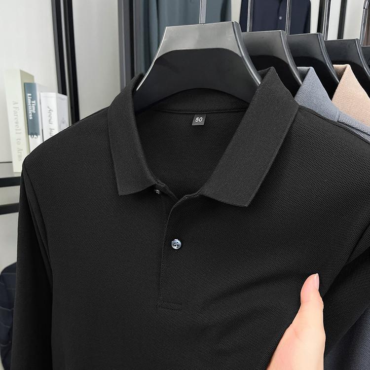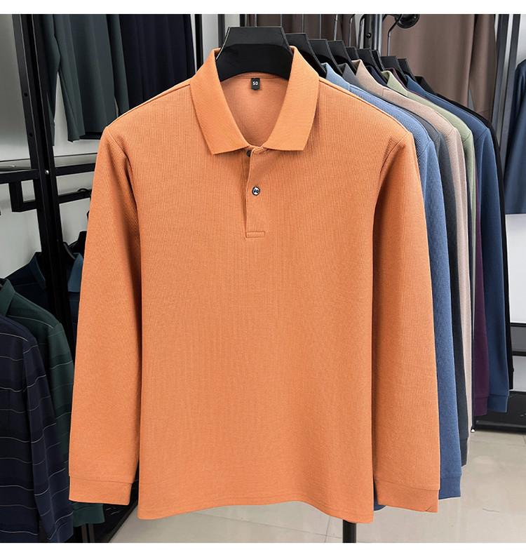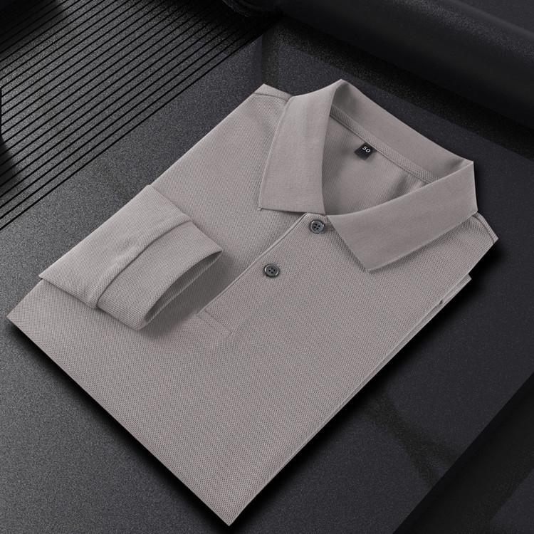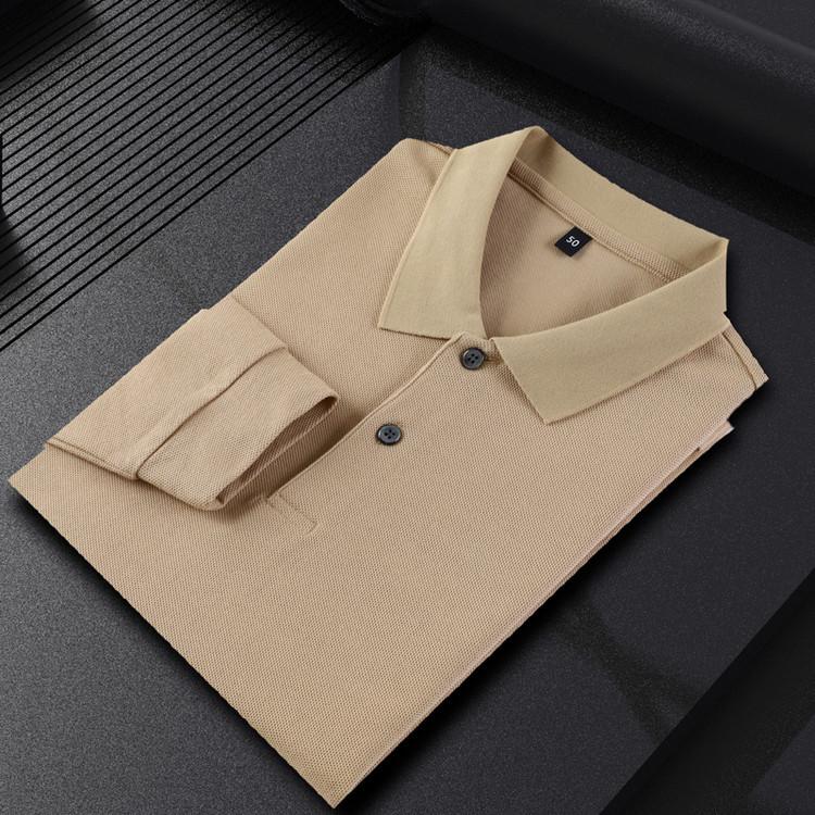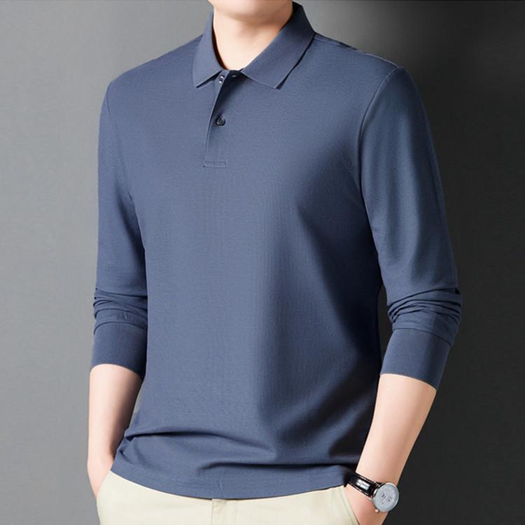 Playera de Manga Larga de Algodón 100% Puro para Hombre 2025 Otoño Nuevo Edad Media Negocios Casual Solapa Ropa de Papá Top Color Sólido