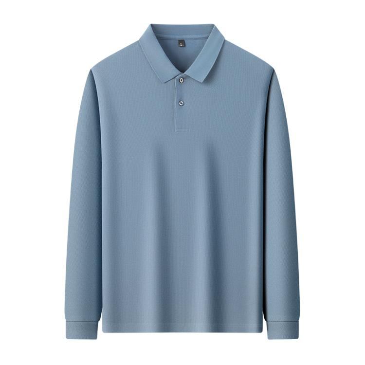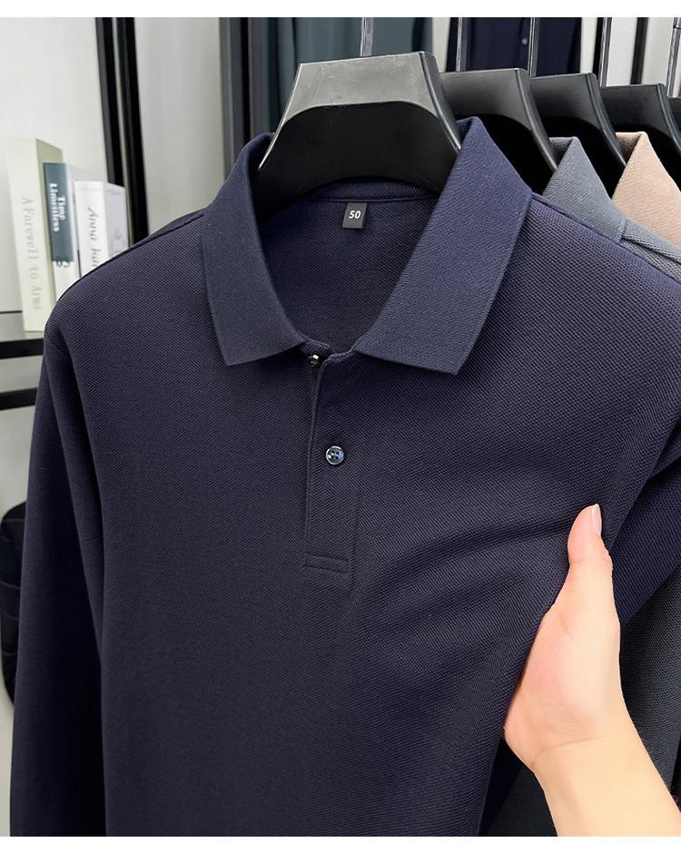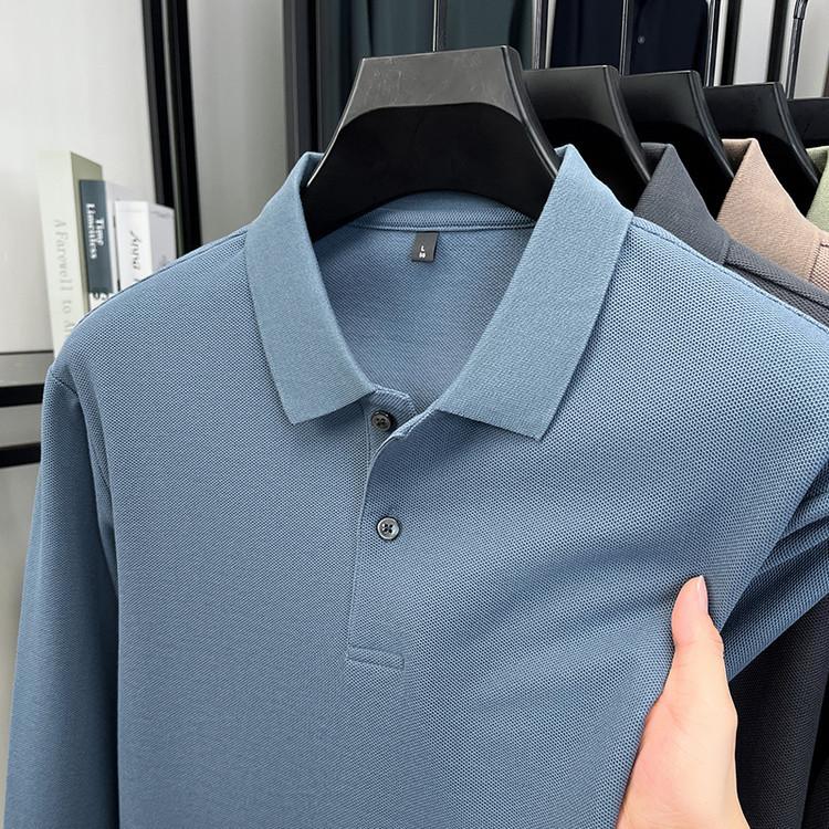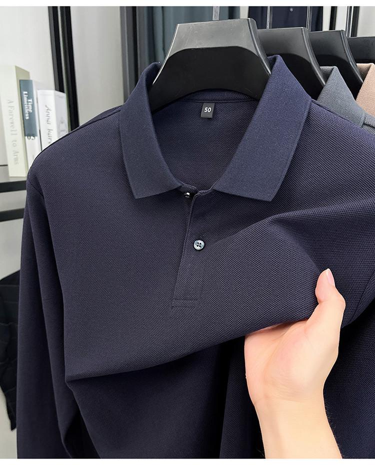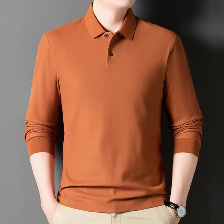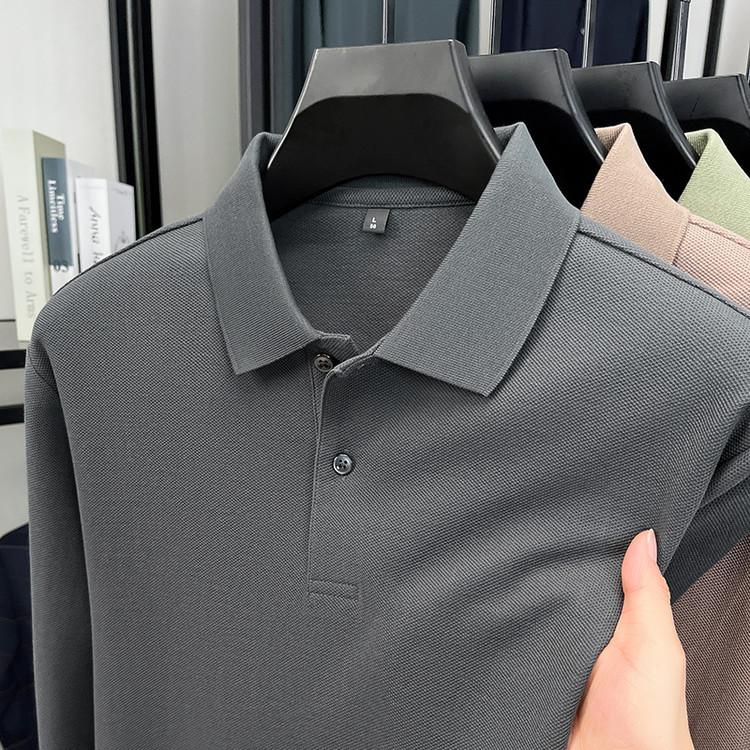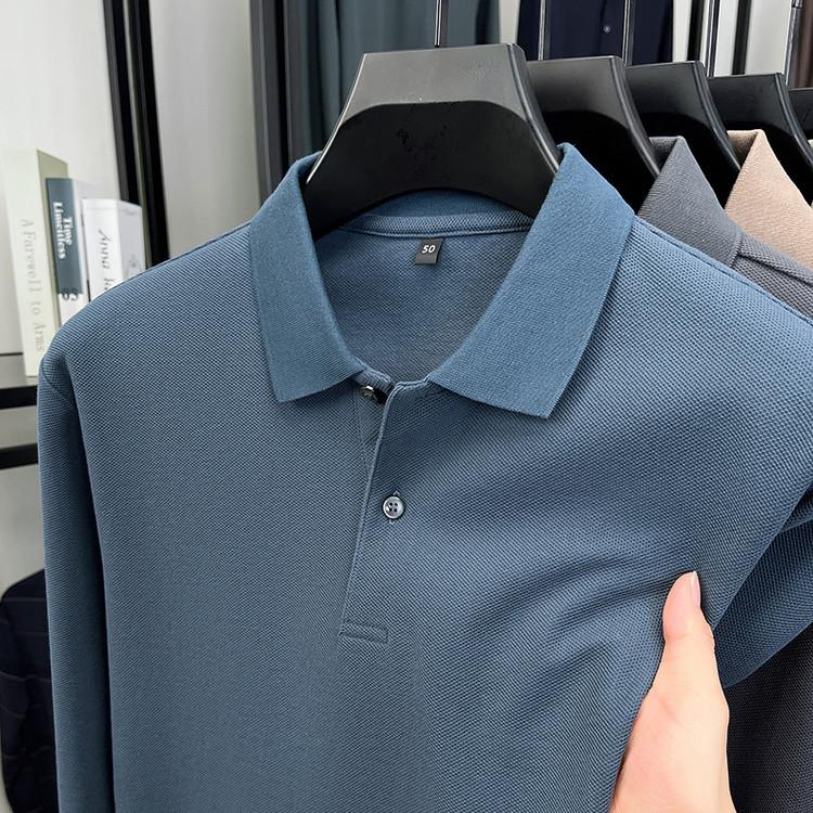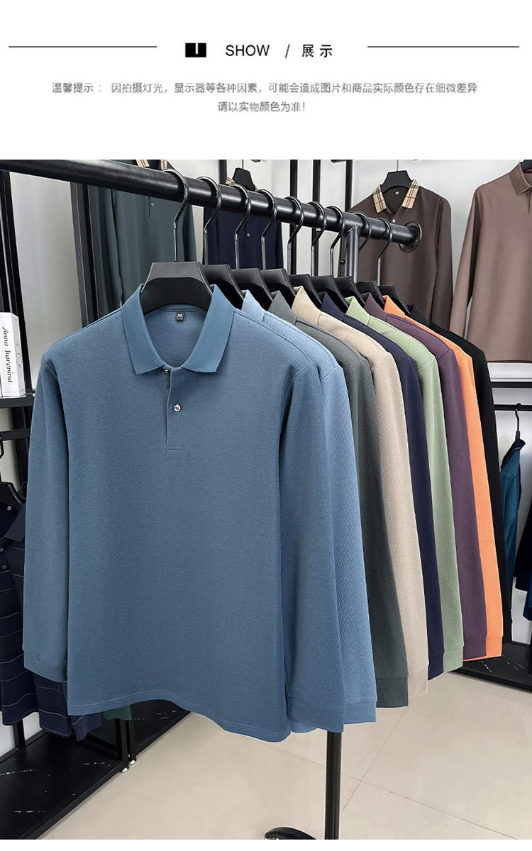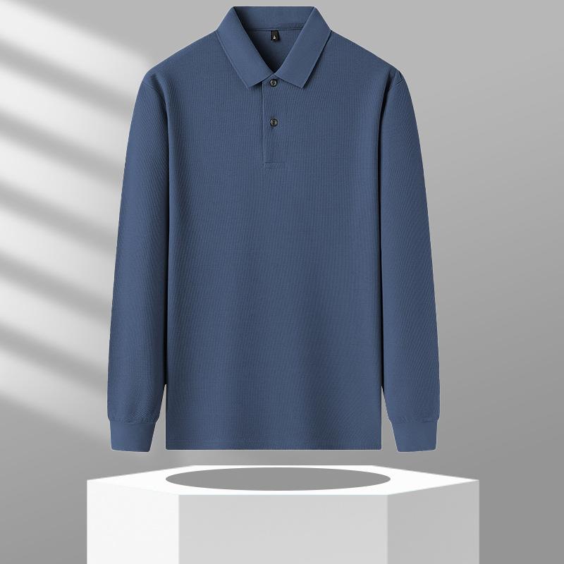 Playera de Manga Larga de Algodón 100% Puro para Hombre 2025 Otoño Nuevo Edad Media Negocios Casual Solapa Ropa de Papá Top Color Sólido