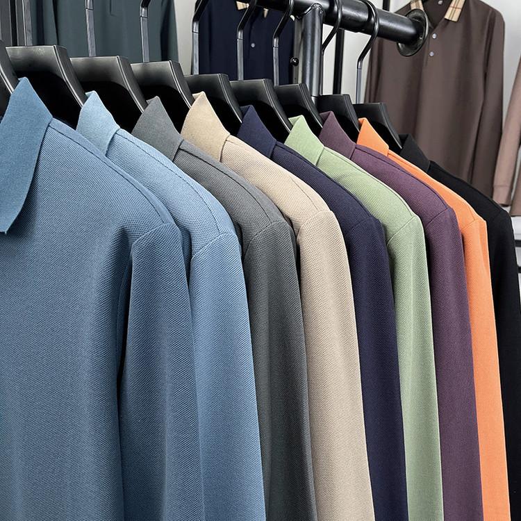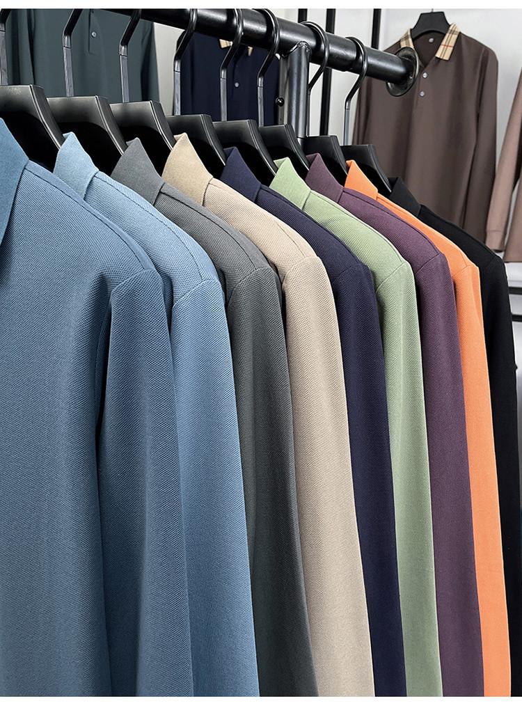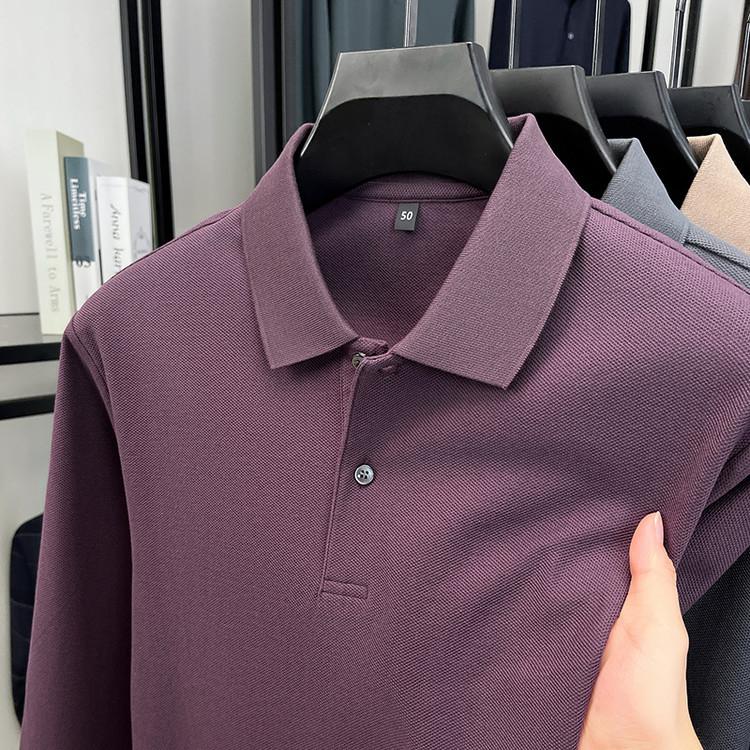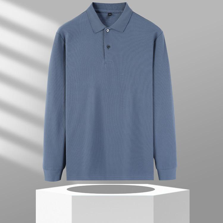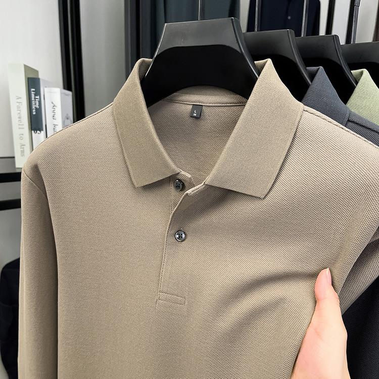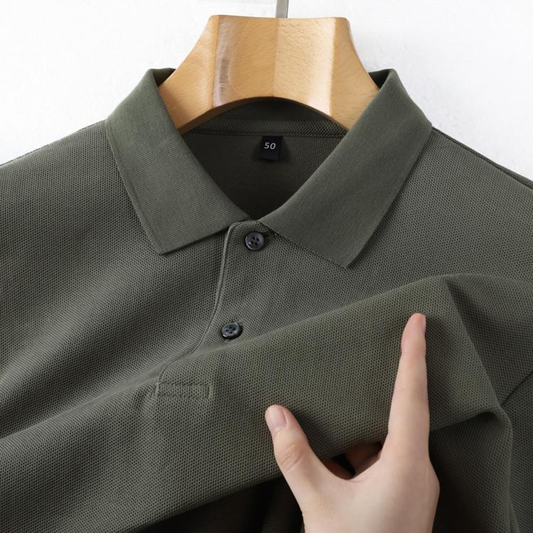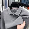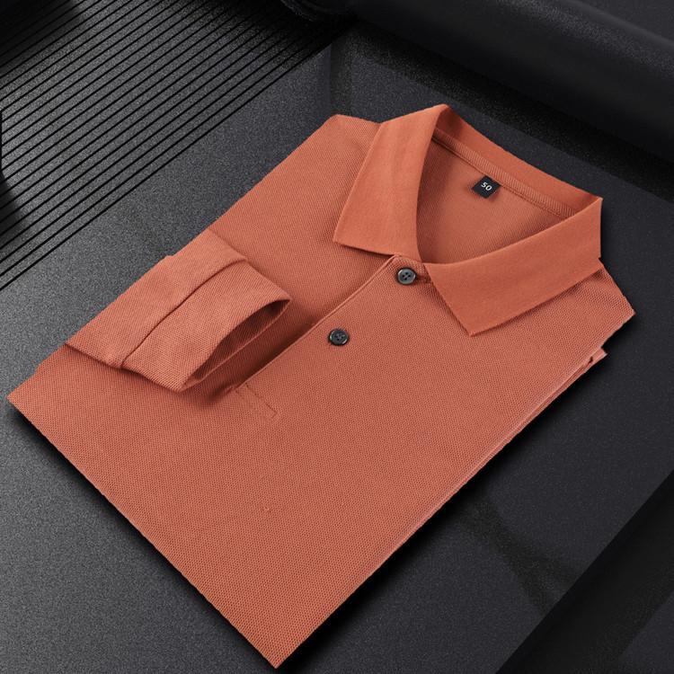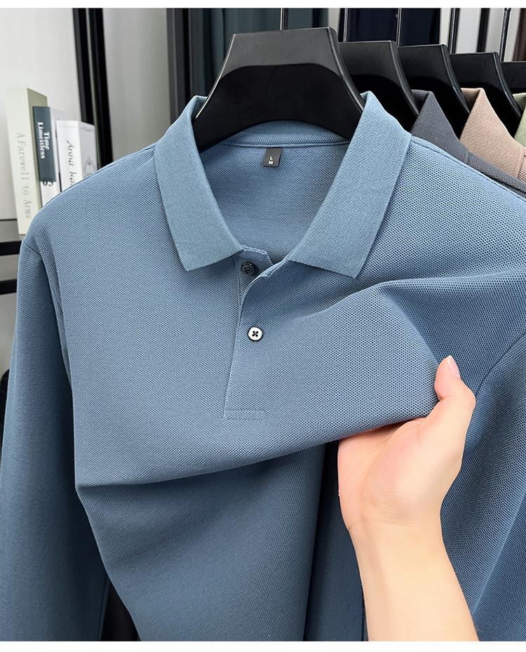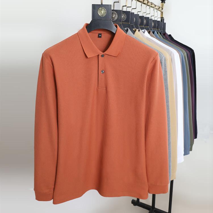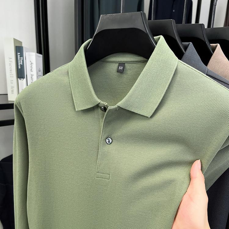 Playera de Manga Larga de Algodón 100% Puro para Hombre 2025 Otoño Nuevo Edad Media Negocios Casual Solapa Ropa de Papá Top Color Sólido