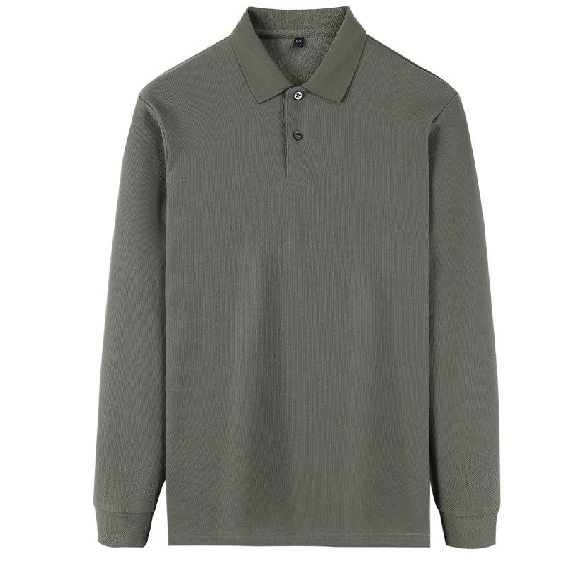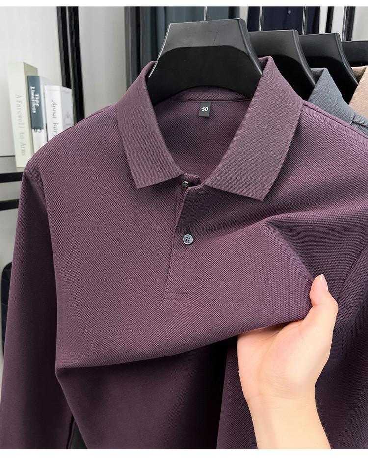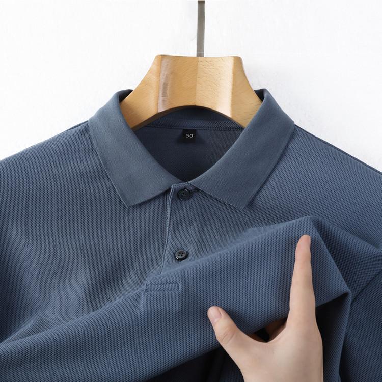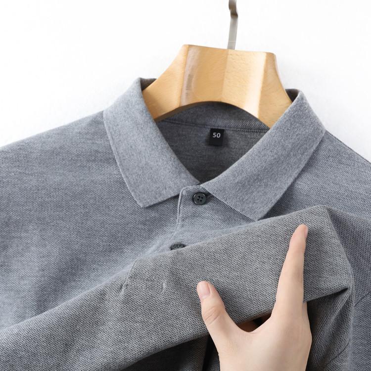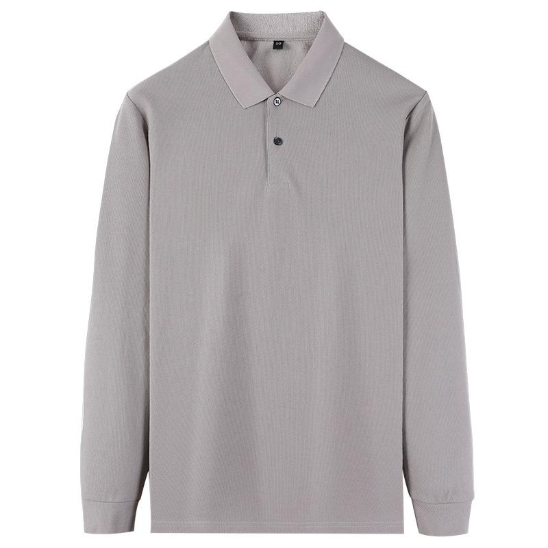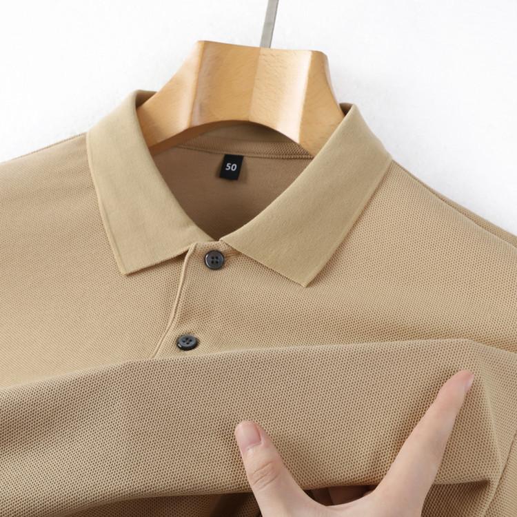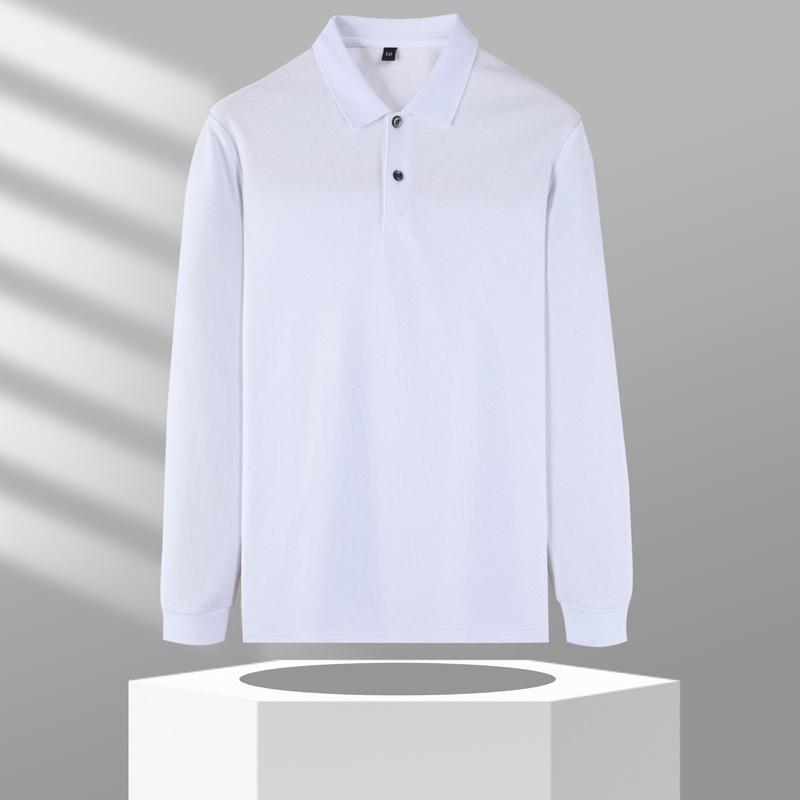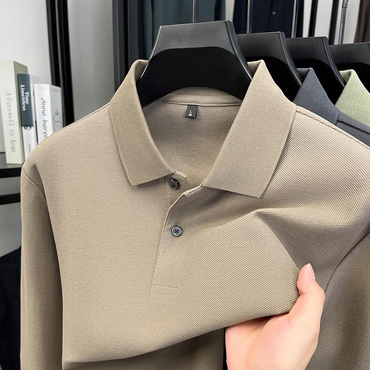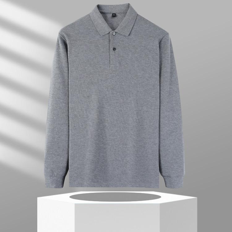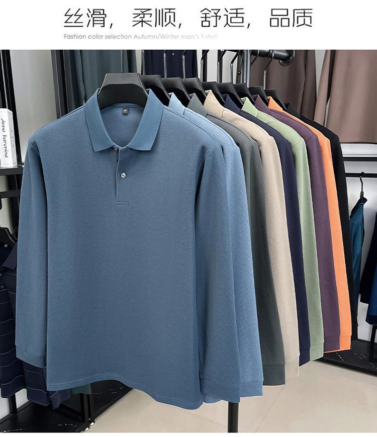 Playera de Manga Larga de Algodón 100% Puro para Hombre 2025 Otoño Nuevo Edad Media Negocios Casual Solapa Ropa de Papá Top Color Sólido