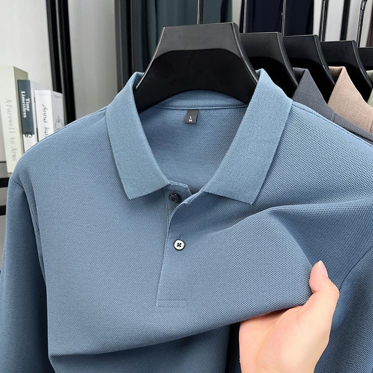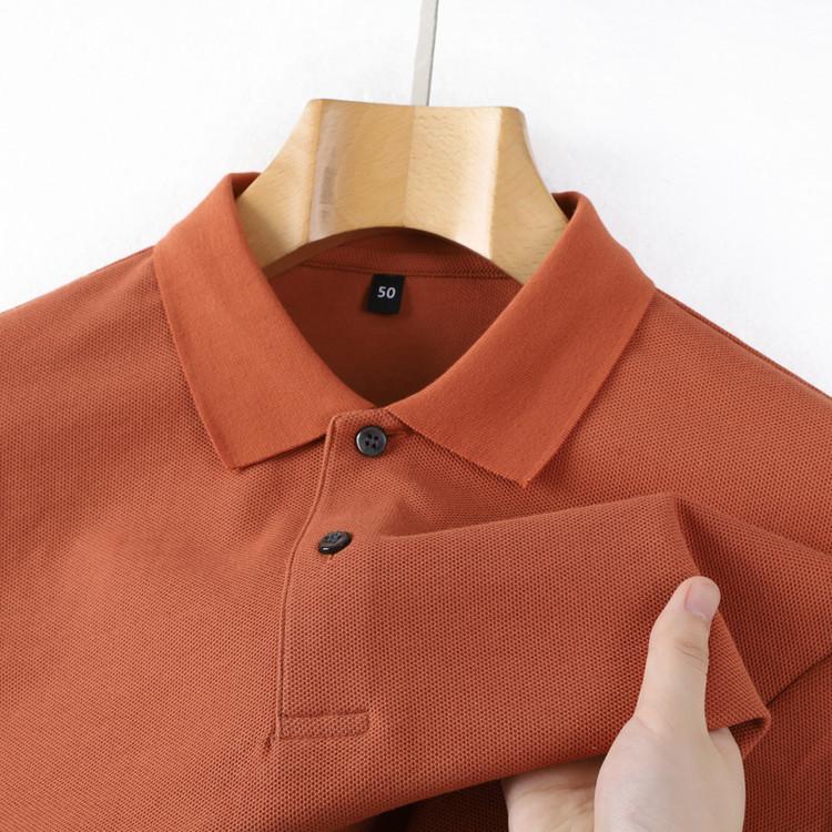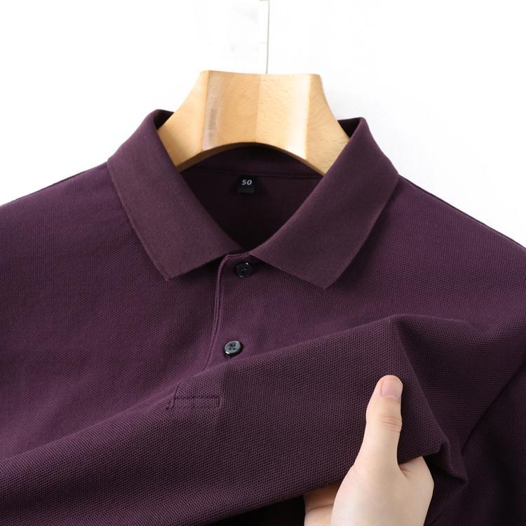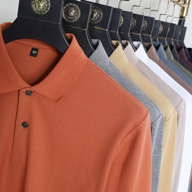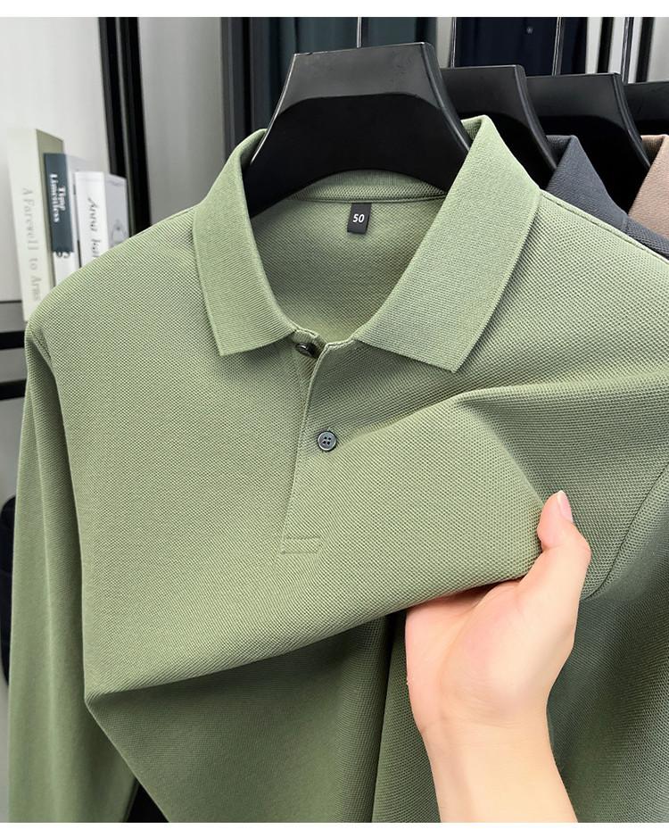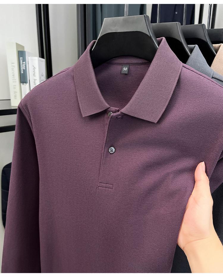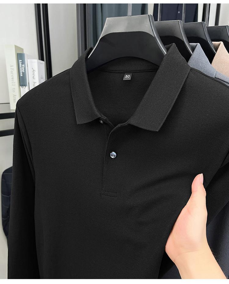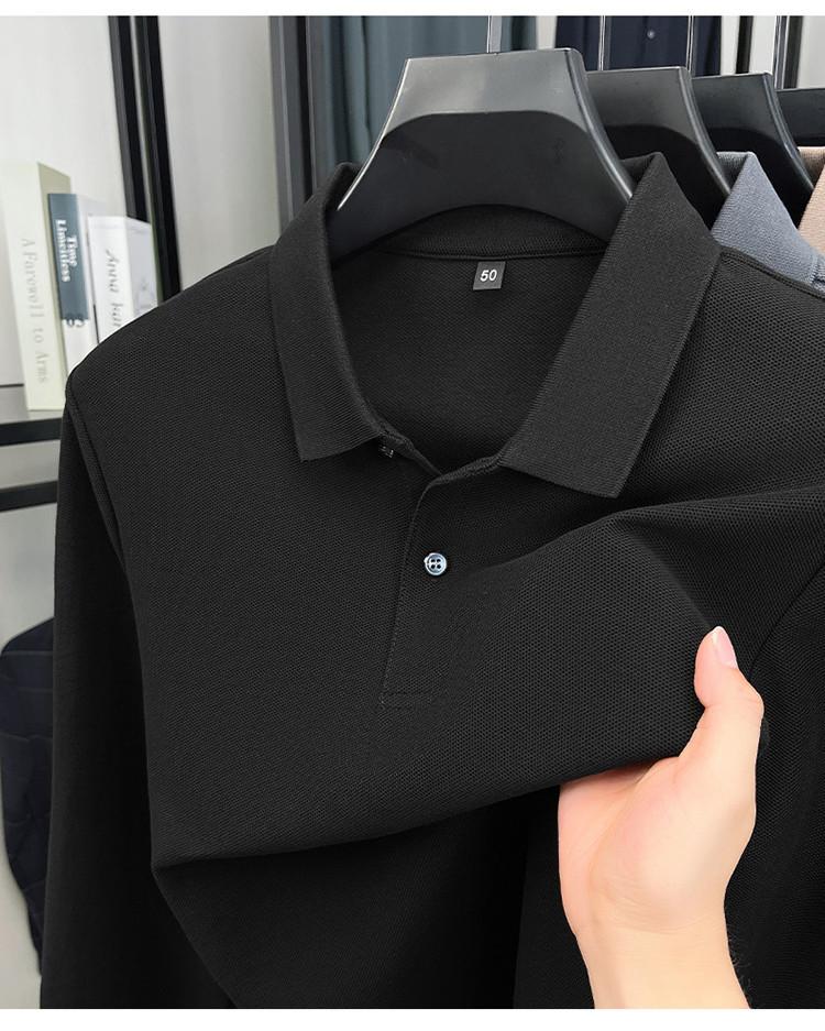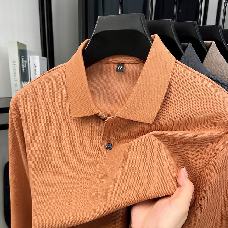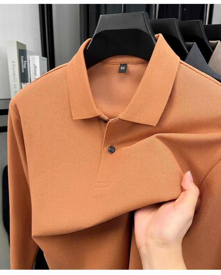 Playera de Manga Larga de Algodón 100% Puro para Hombre 2025 Otoño Nuevo Edad Media Negocios Casual Solapa Ropa de Papá Top Color Sólido