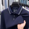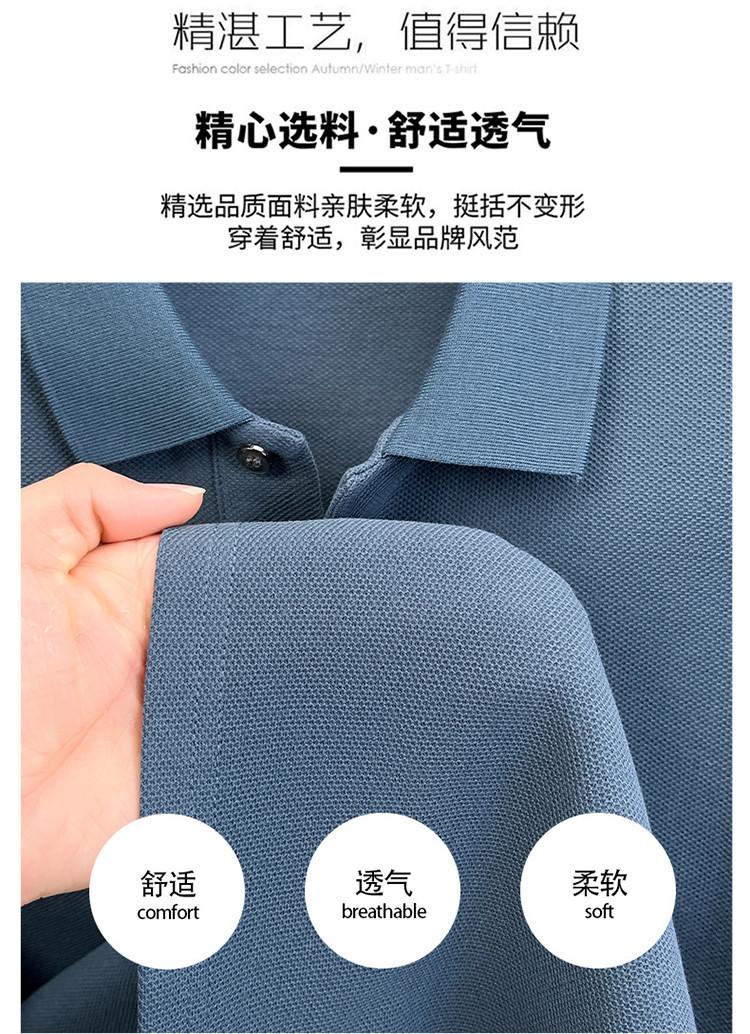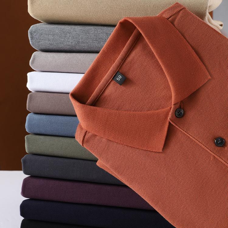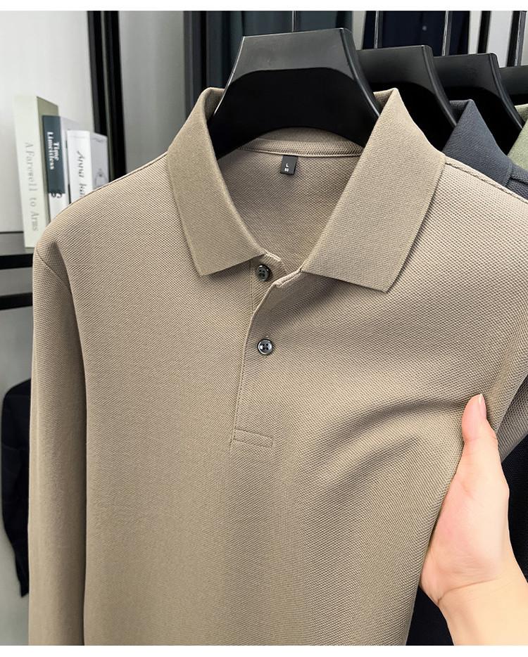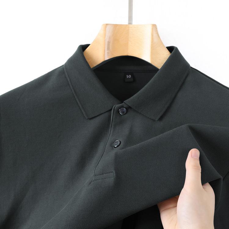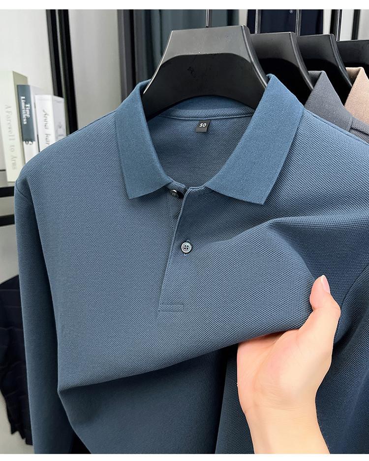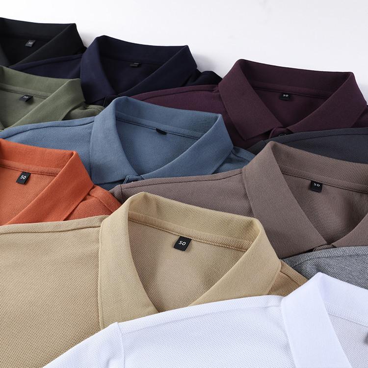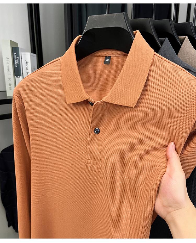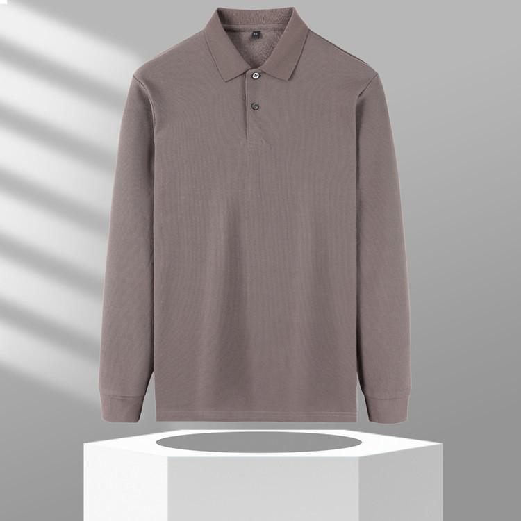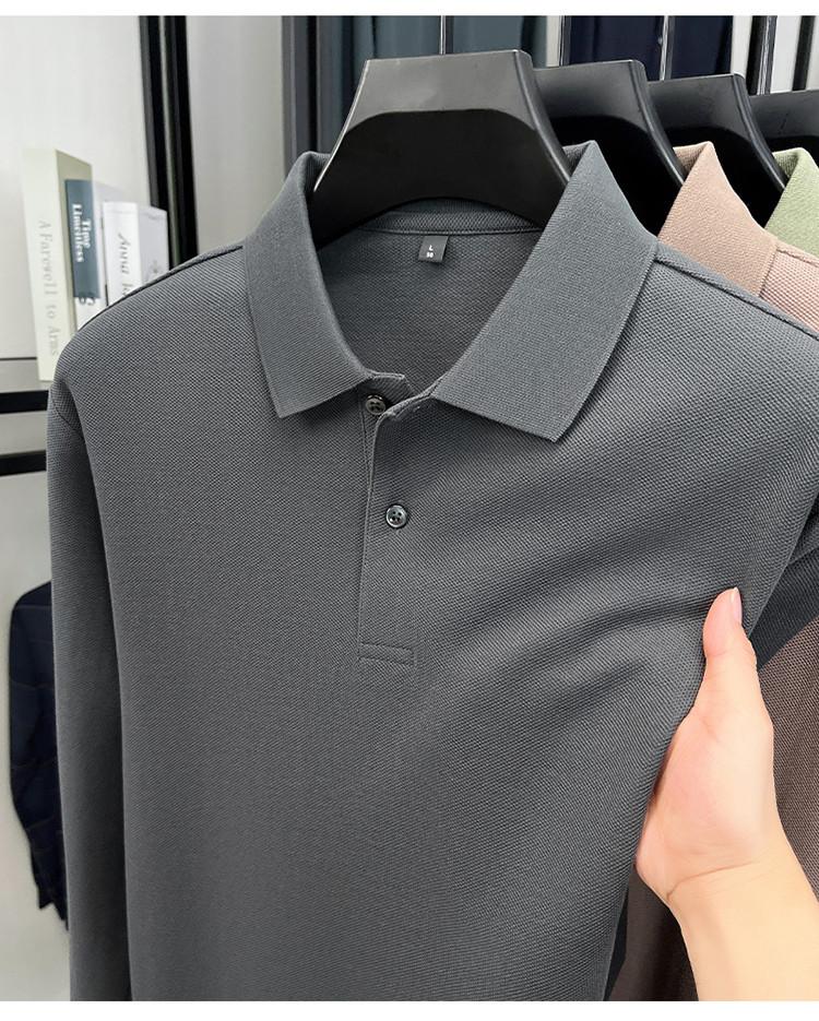 Playera de Manga Larga de Algodón 100% Puro para Hombre 2025 Otoño Nuevo Edad Media Negocios Casual Solapa Ropa de Papá Top Color Sólido