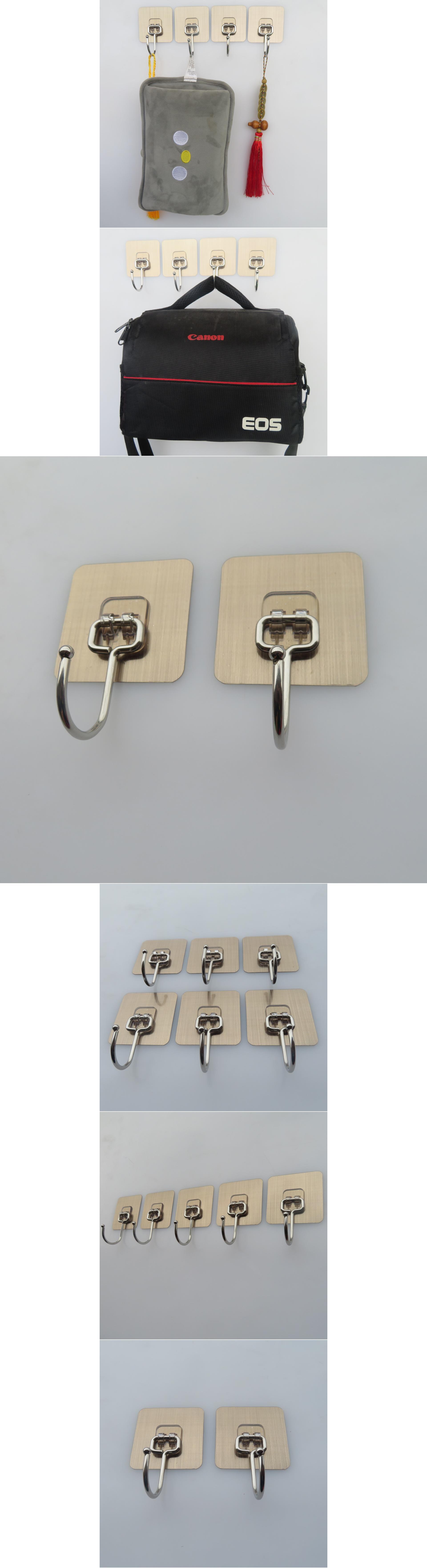 Brushed Adhesive Stainless Steel Large Bend Hook, Transparent sticker stainless steel large bend hook, 4*6 bru...