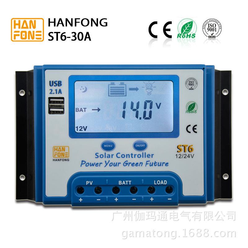 Controlador de panel solar PWM serie ST6 transfronterizo 30A iluminación inteligente 12v24v controlador de carga fotovoltaico