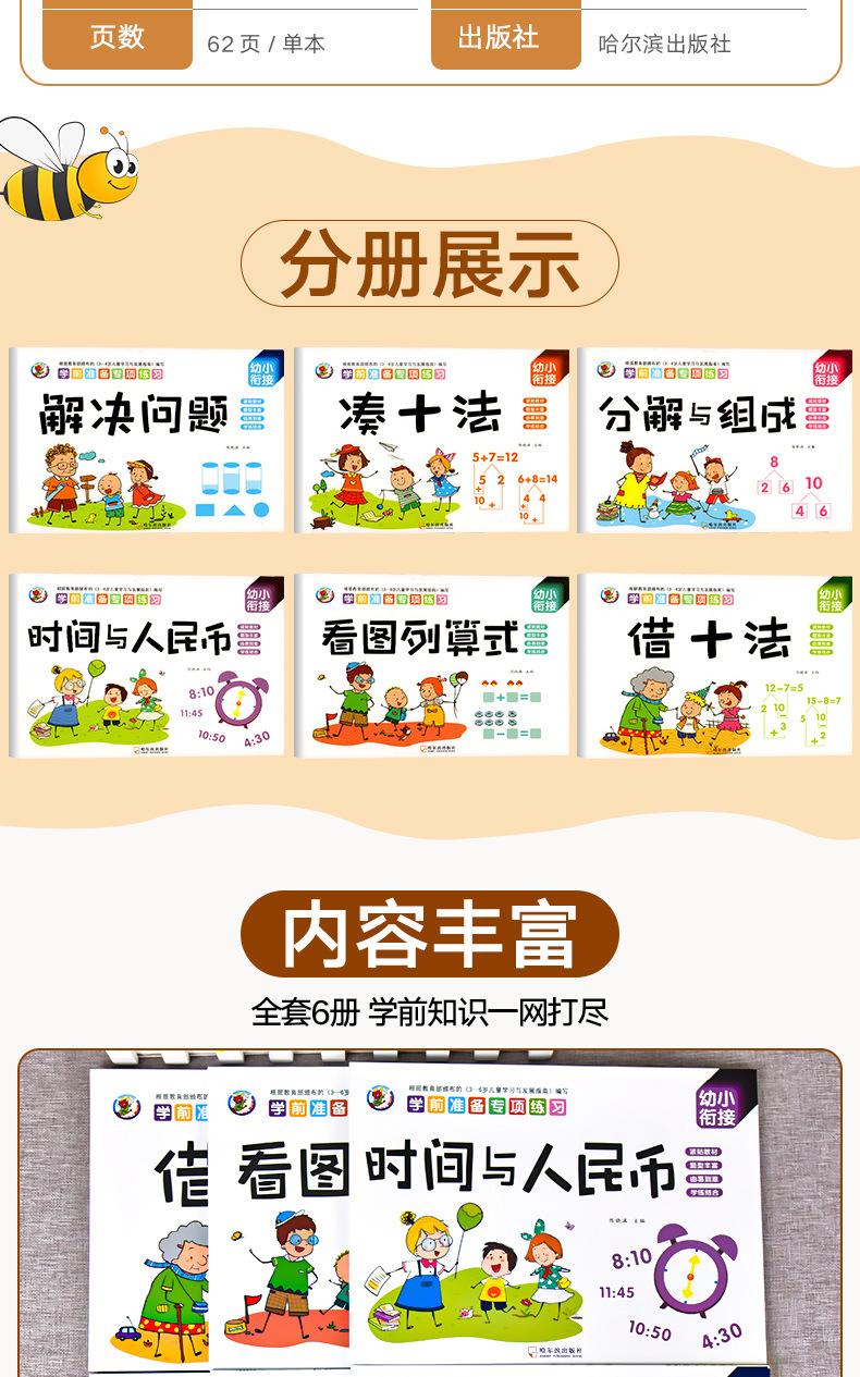 6 Libros Transición de Jardín de Niños a Primaria Un Día Una Práctica Libro de Texto Juego Completo Preescolar a Primaria Entrenamiento de Pensamiento Matemático Método Pedir Prestado Diez
