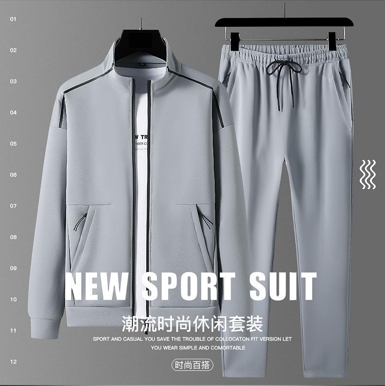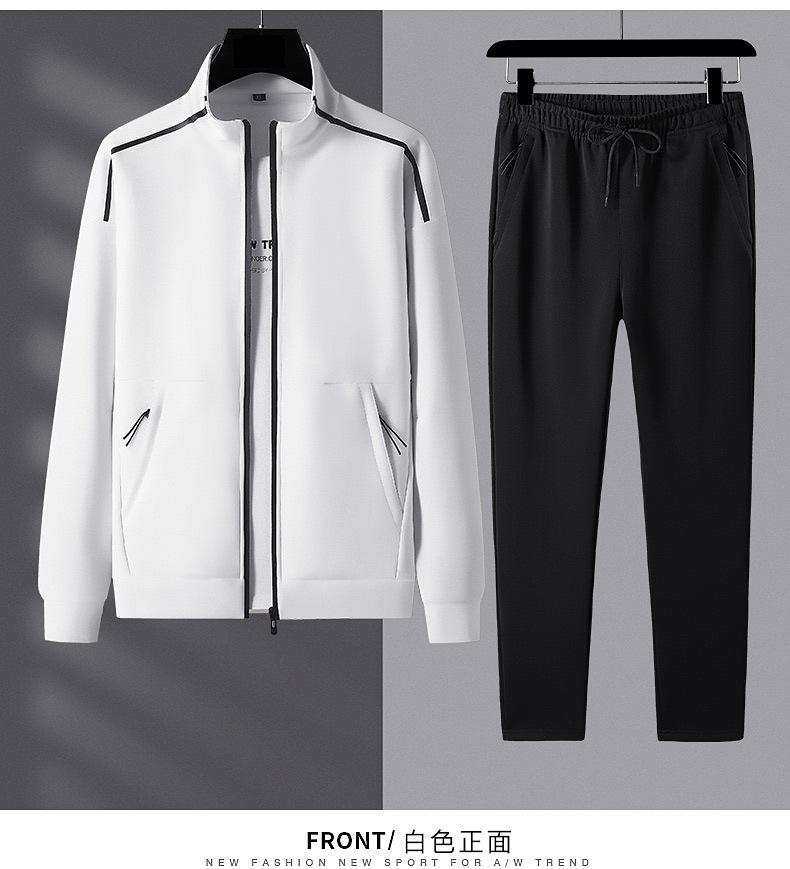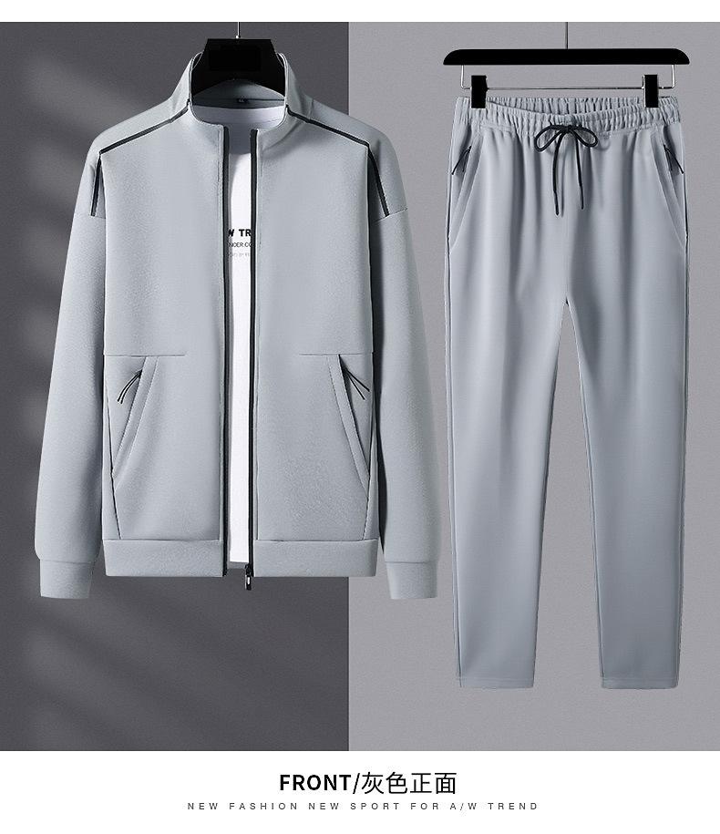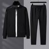 Traje Deportivo Casual de Otoño para Hombre, Cárdigan, Sudadera, Versátil, Cuello Alto, Chaqueta con Cremallera y Pantalón, Conjunto Moderno de Dos Piezas