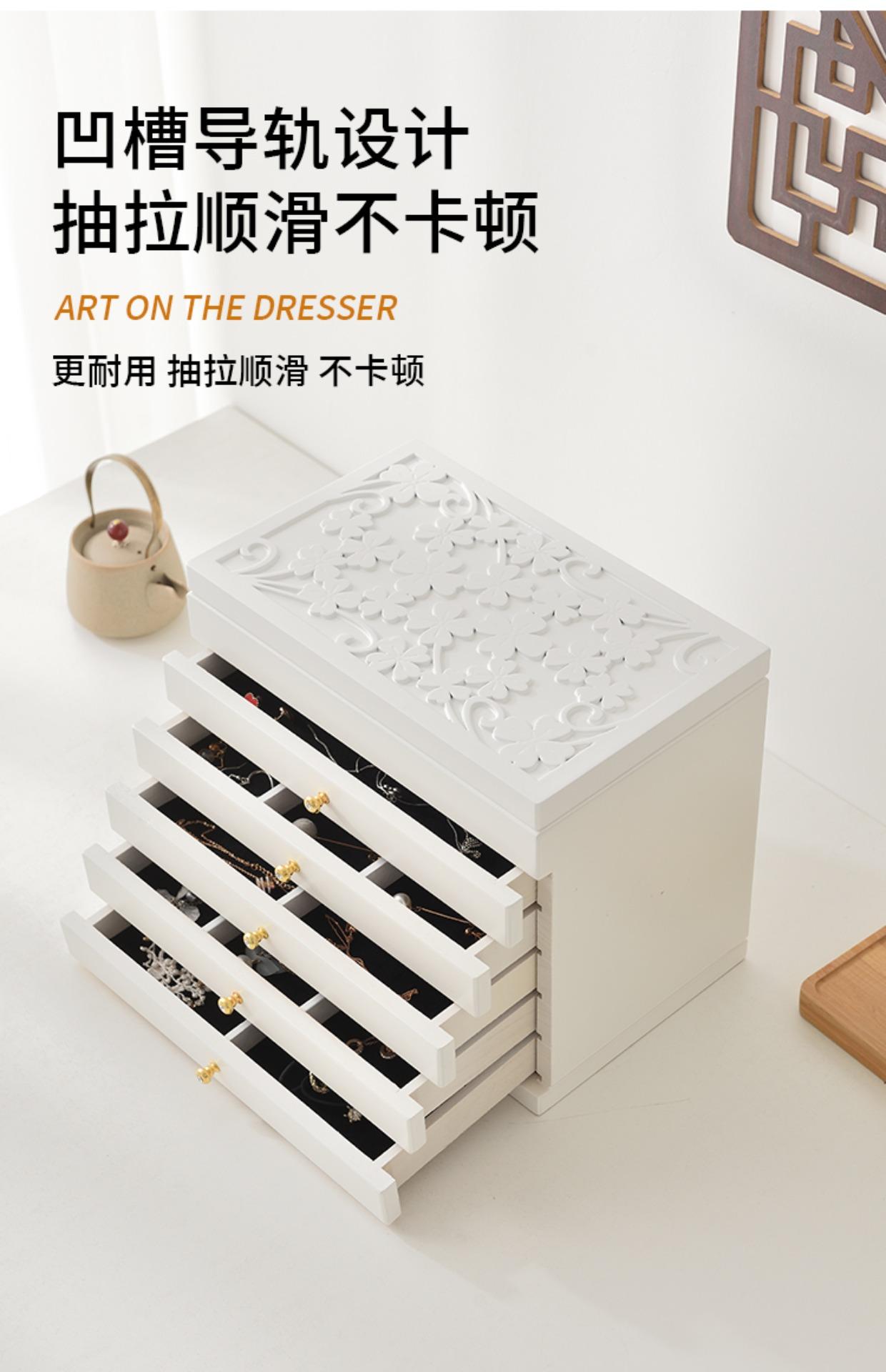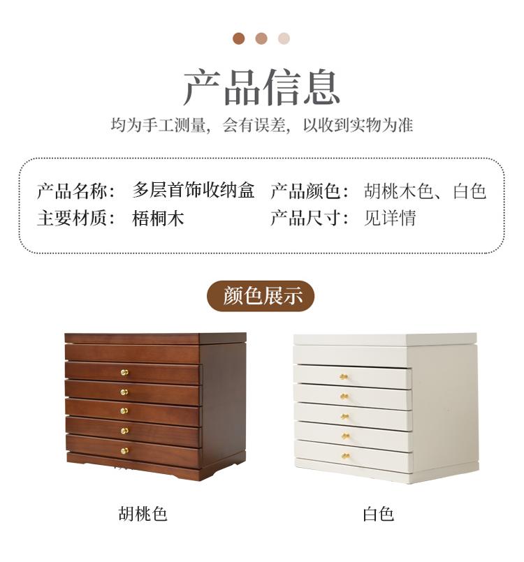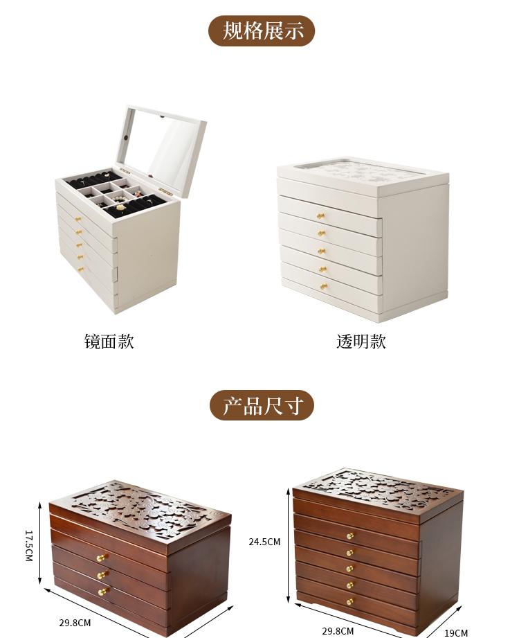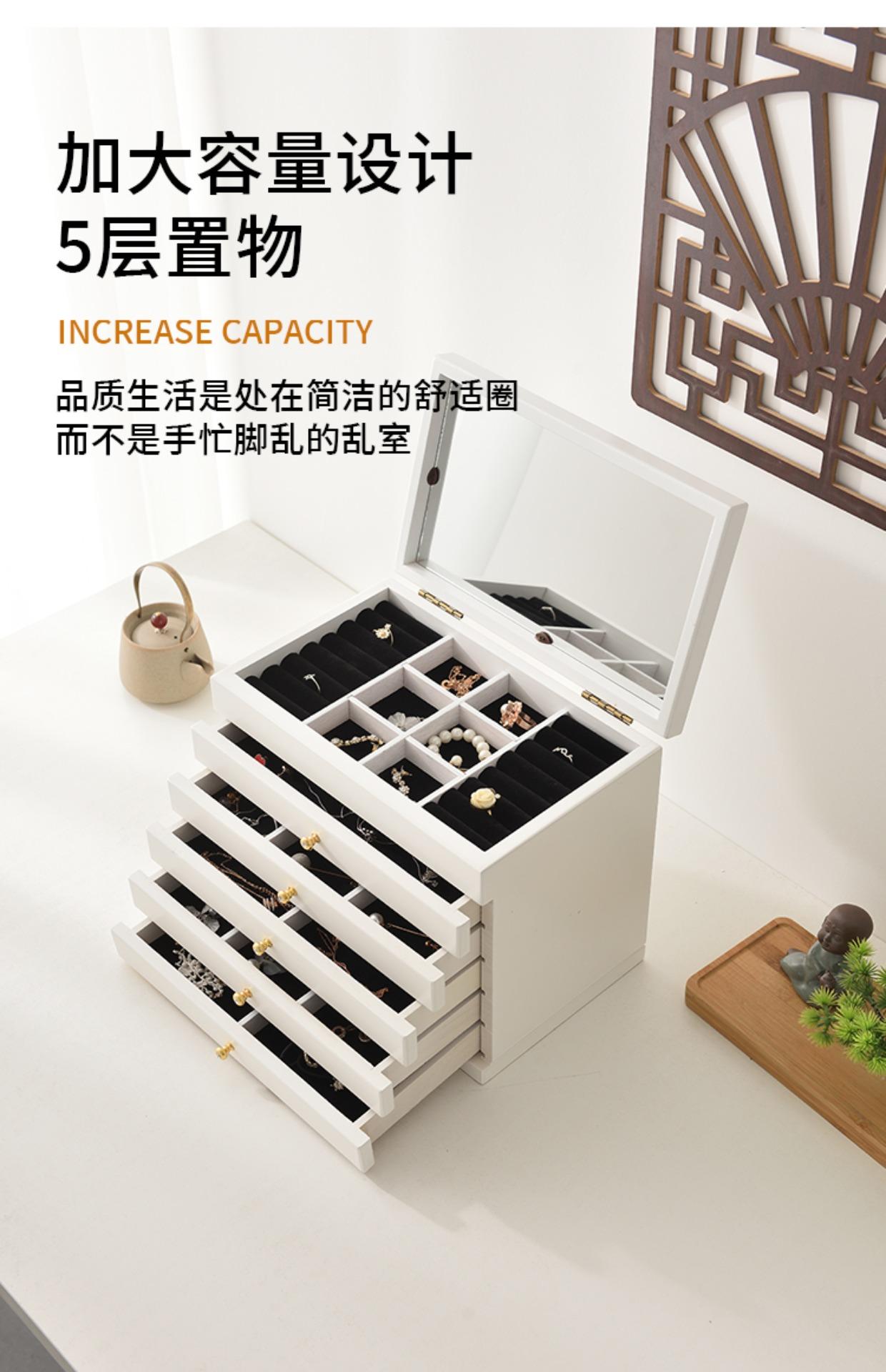 Joyero de madera maciza, caja de maquillaje con espejo de varias capas, caja de almacenamiento, estilo chino, ligero, de lujo, con cajón de varias capas.