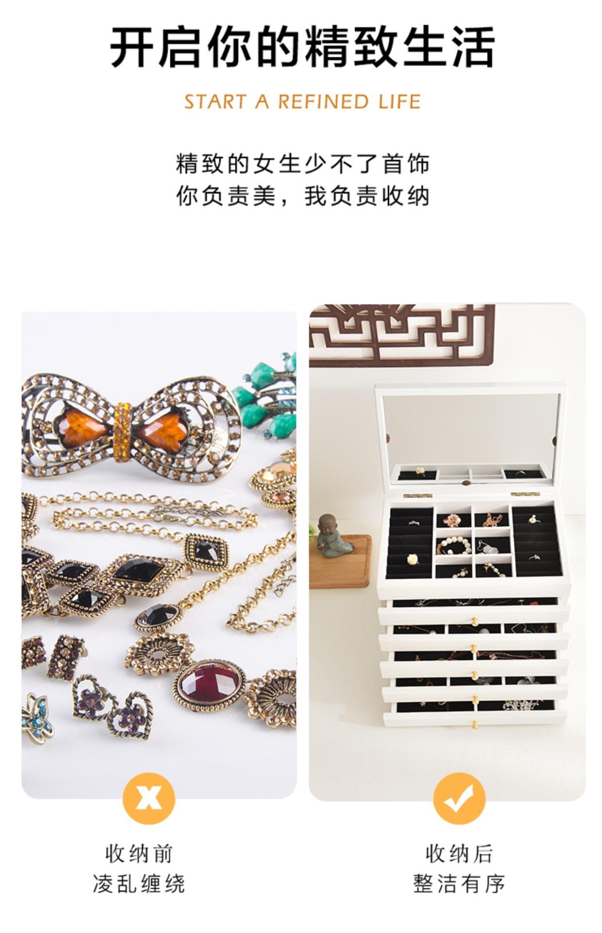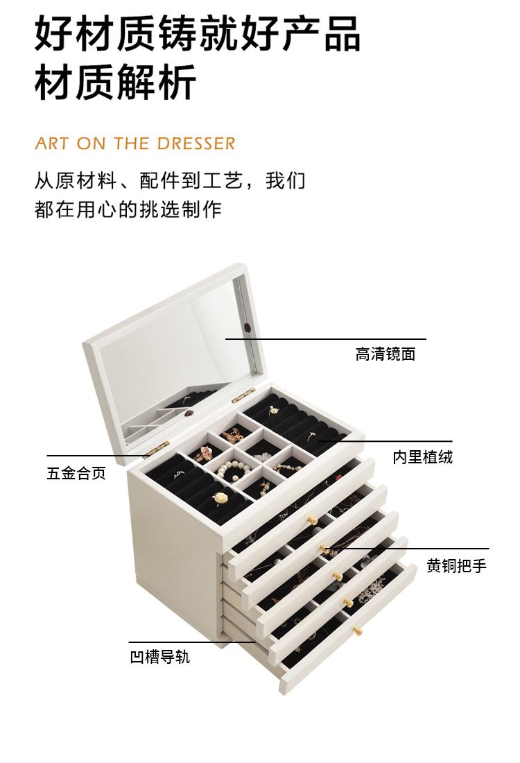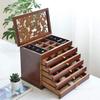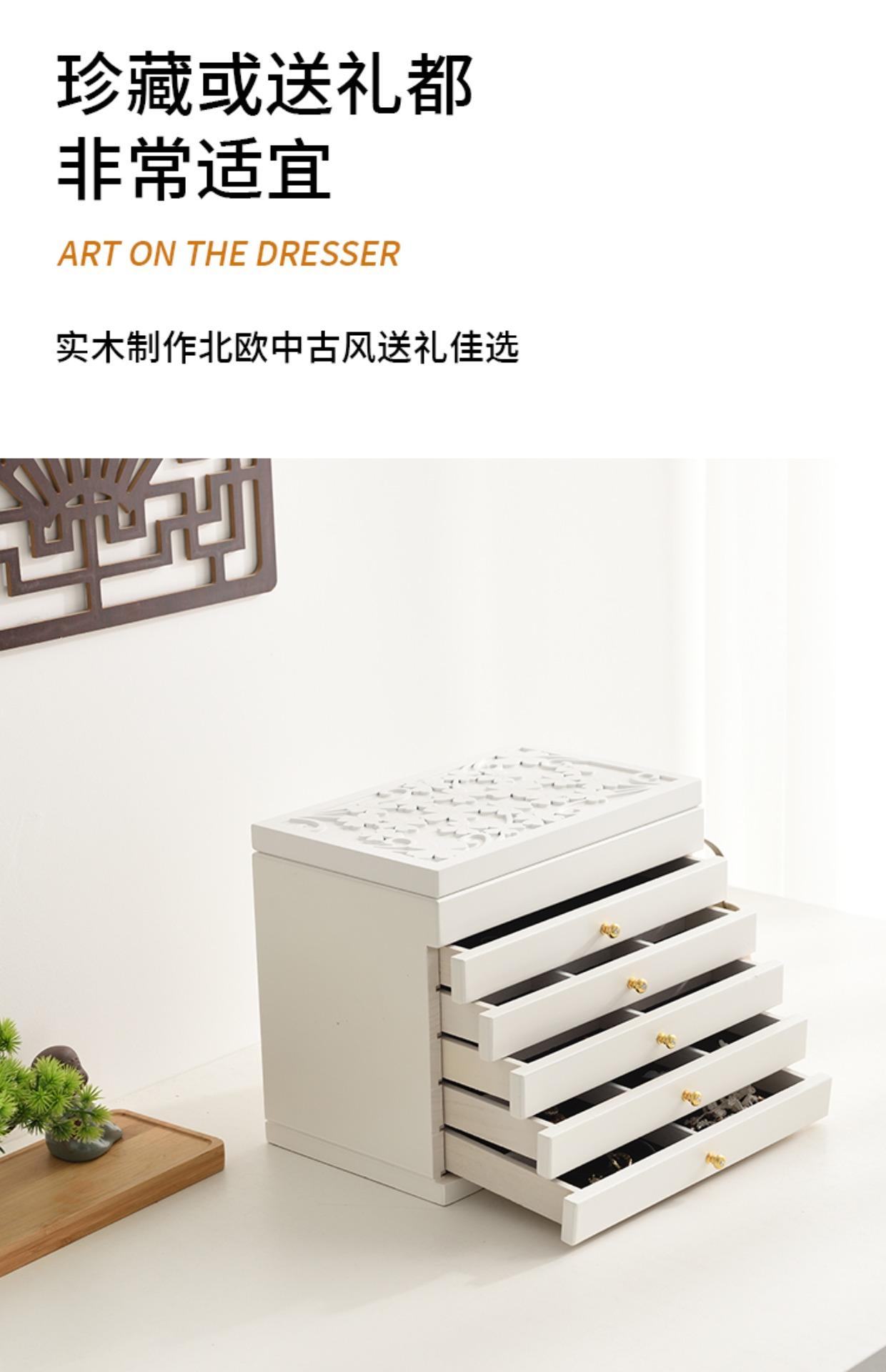 Joyero de madera maciza, caja de maquillaje con espejo de varias capas, caja de almacenamiento, estilo chino, ligero, de lujo, con cajón de varias capas.