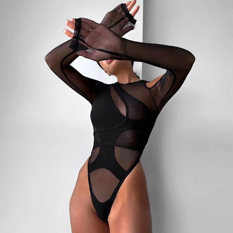 Verano Europeo y Americano Transfronterizo Nuevo Sexy Transparente Descubierto Chica Caliente Malla Body Estación Europea Comercio Exterior Ajustado