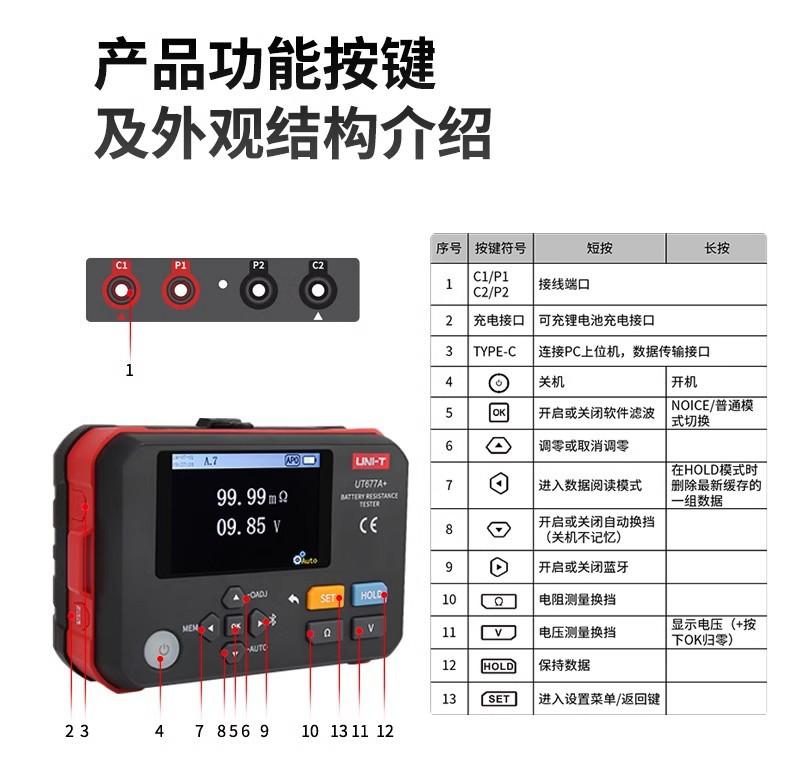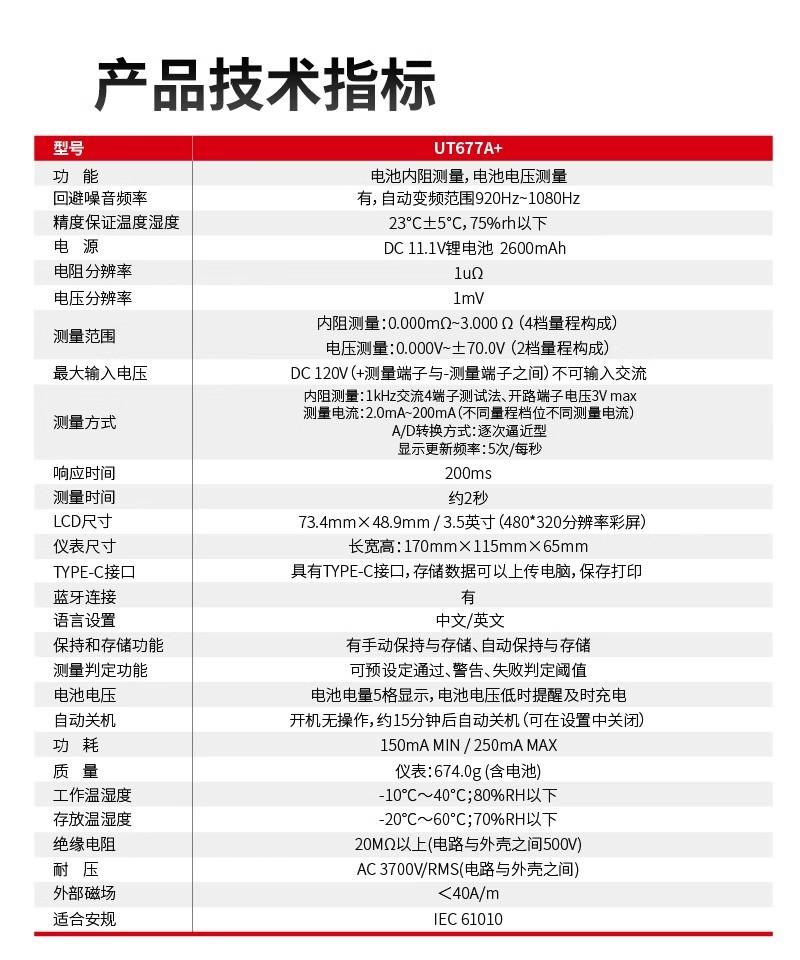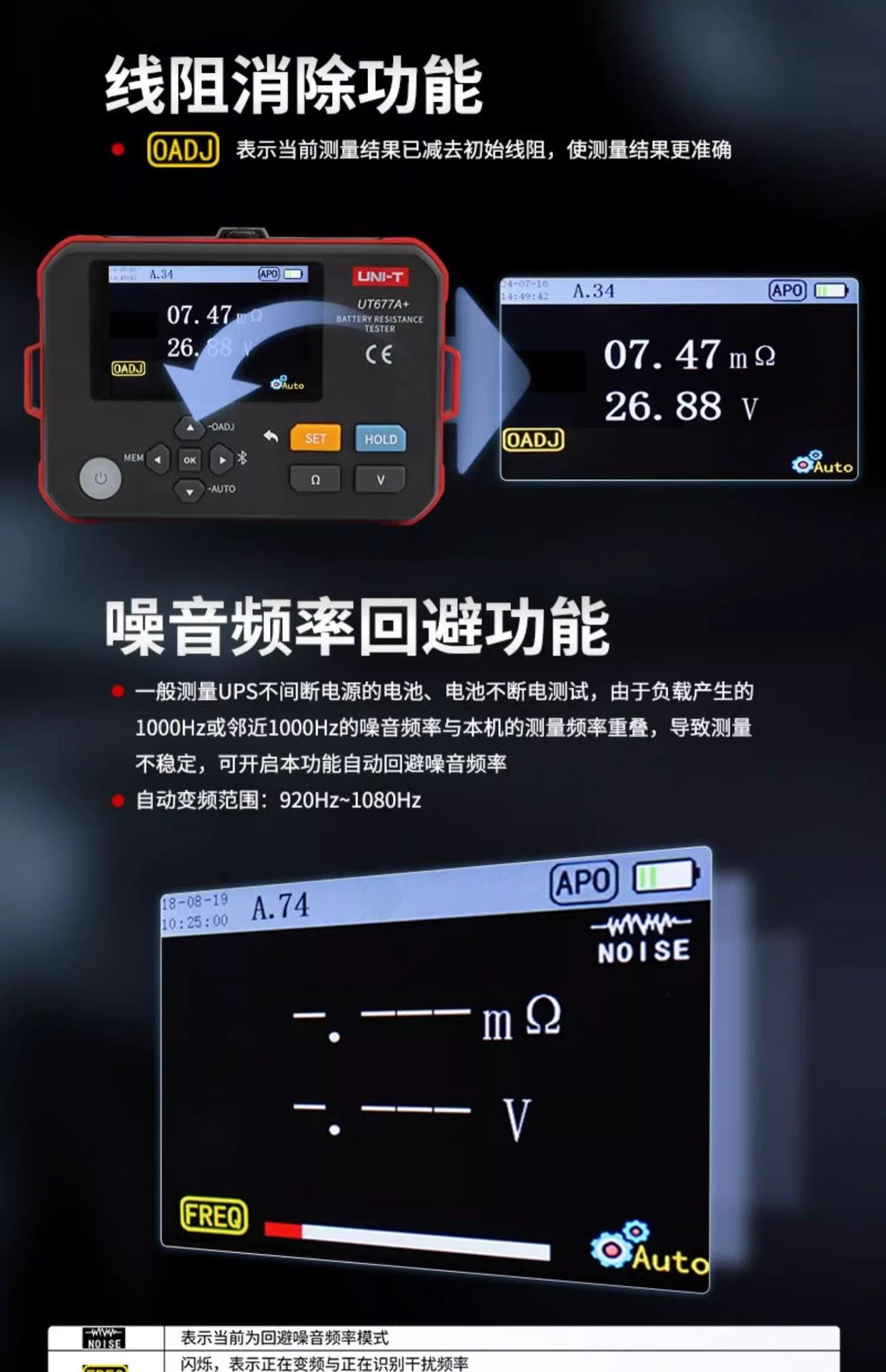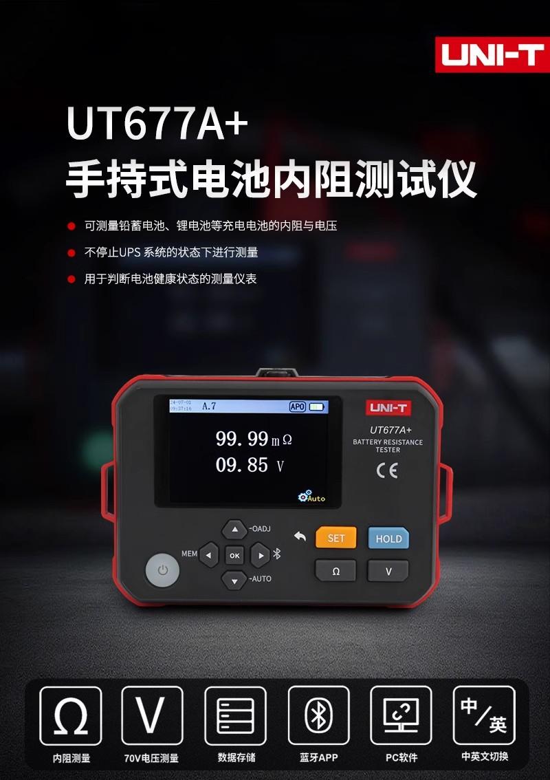 Uni-T UT677A+ Probador de Resistencia Interna de Batería Pantalla Digital Voltaje Temperatura Batería de Almacenamiento Batería de Litio Detección de Resistencia Interna