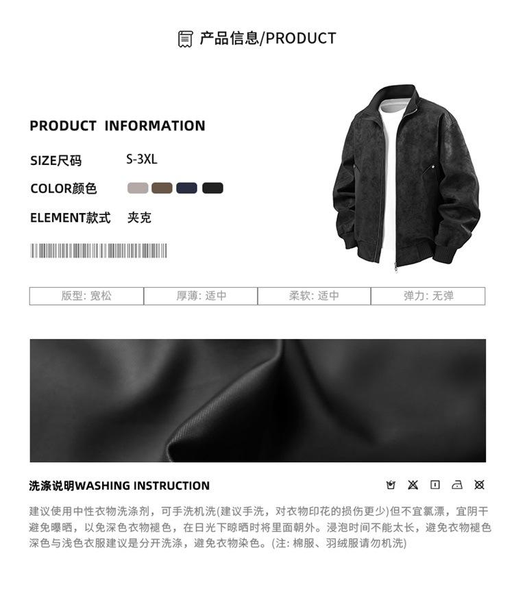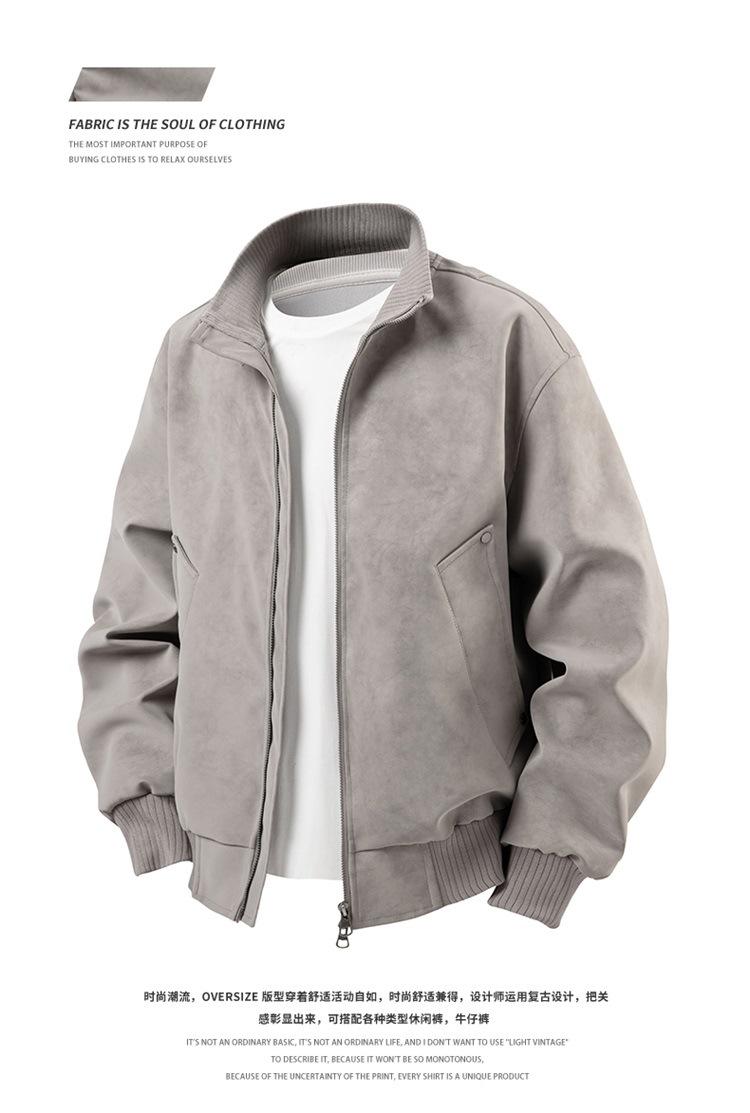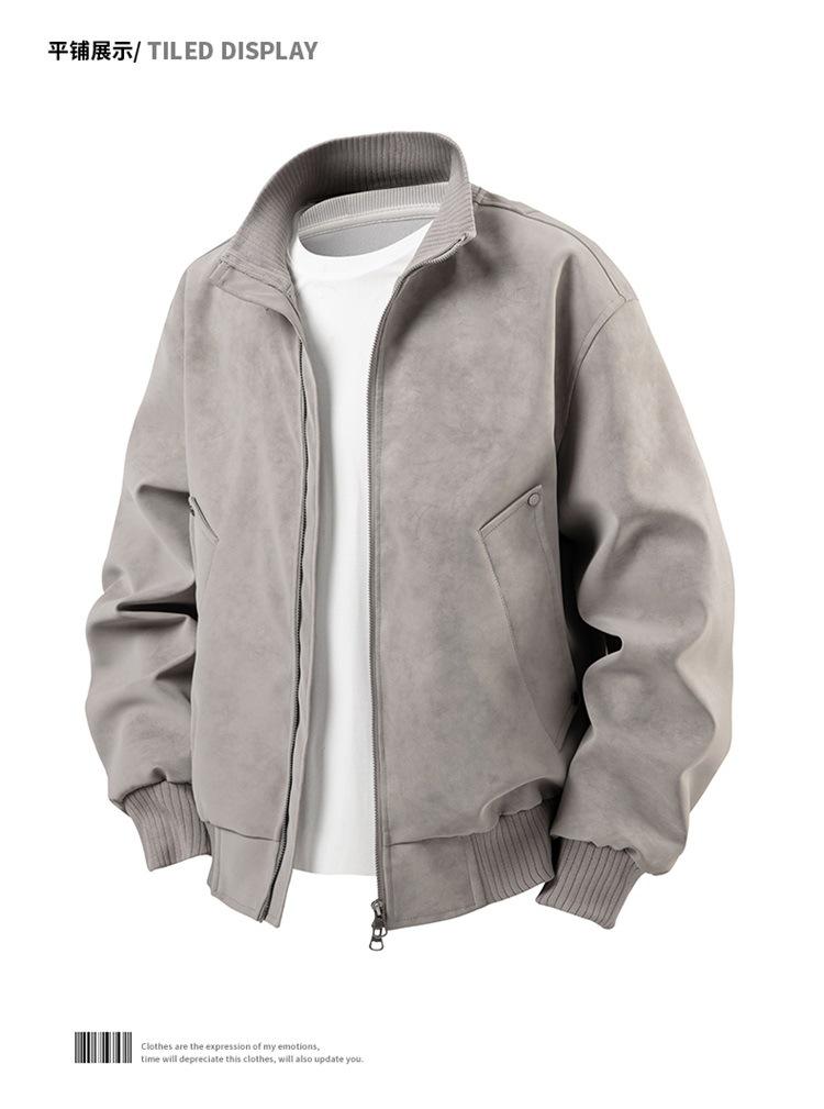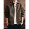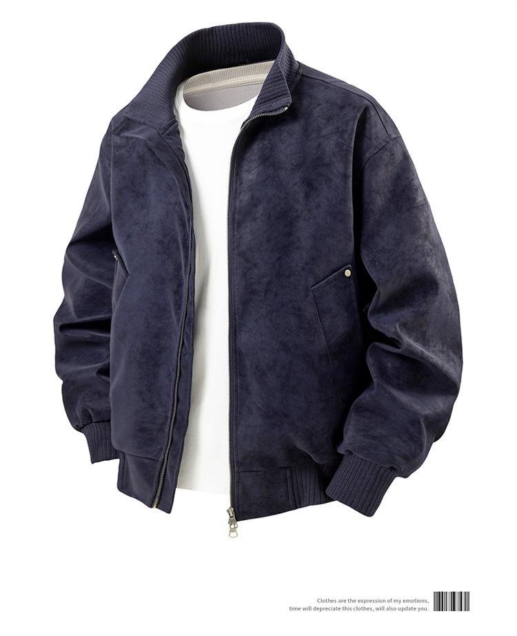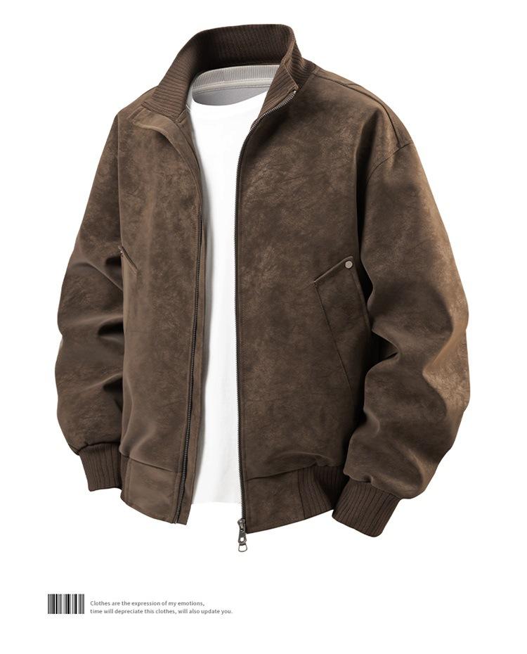 Otoño/Invierno 2025 Nueva Chaqueta de Cuero Retro Holgada con Cuello Mao para Hombre Talla Grande Moda Casual Cárdigan Abrigo Hombre