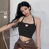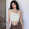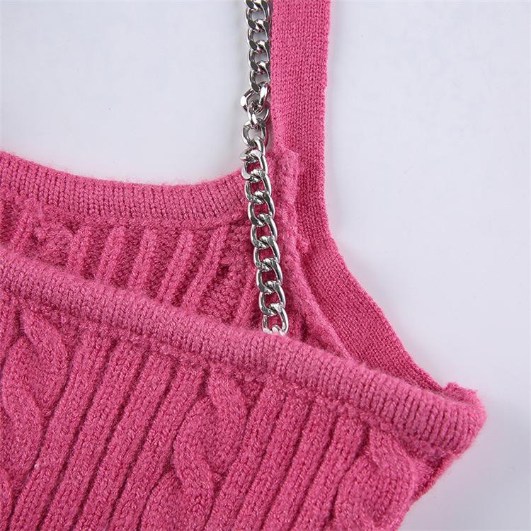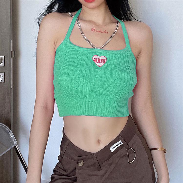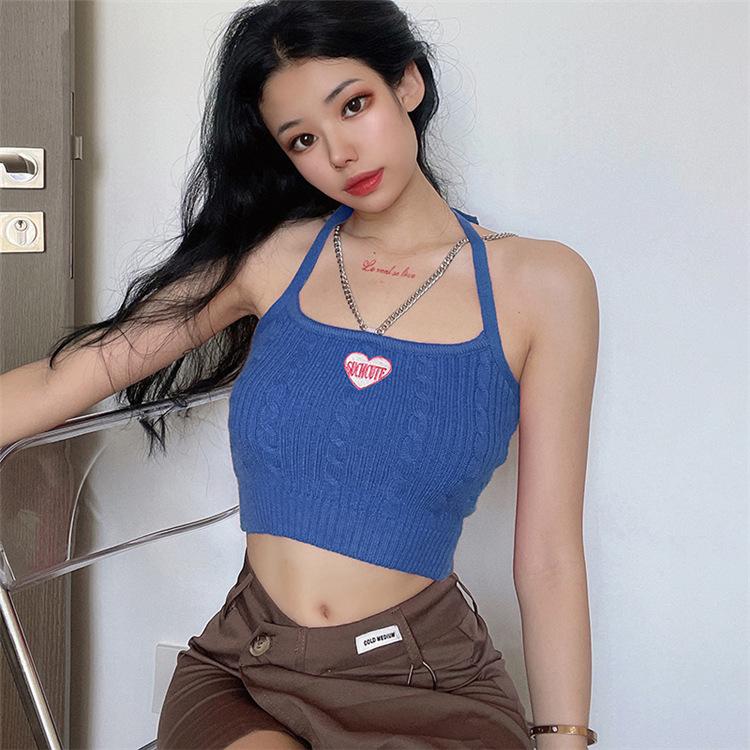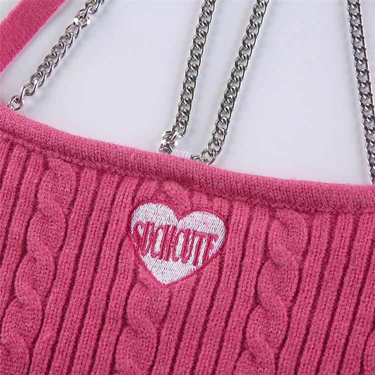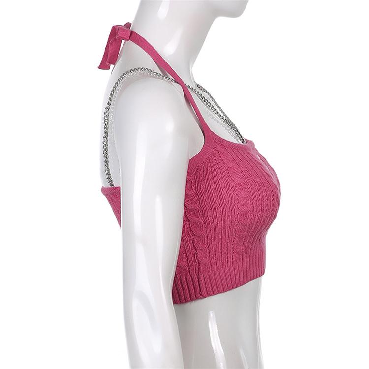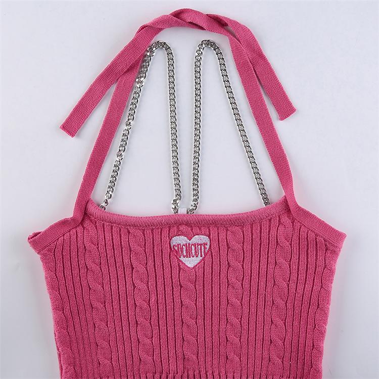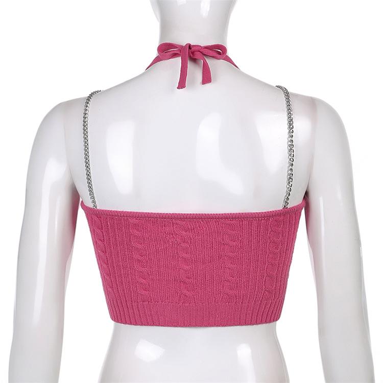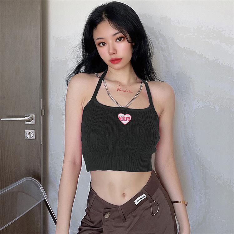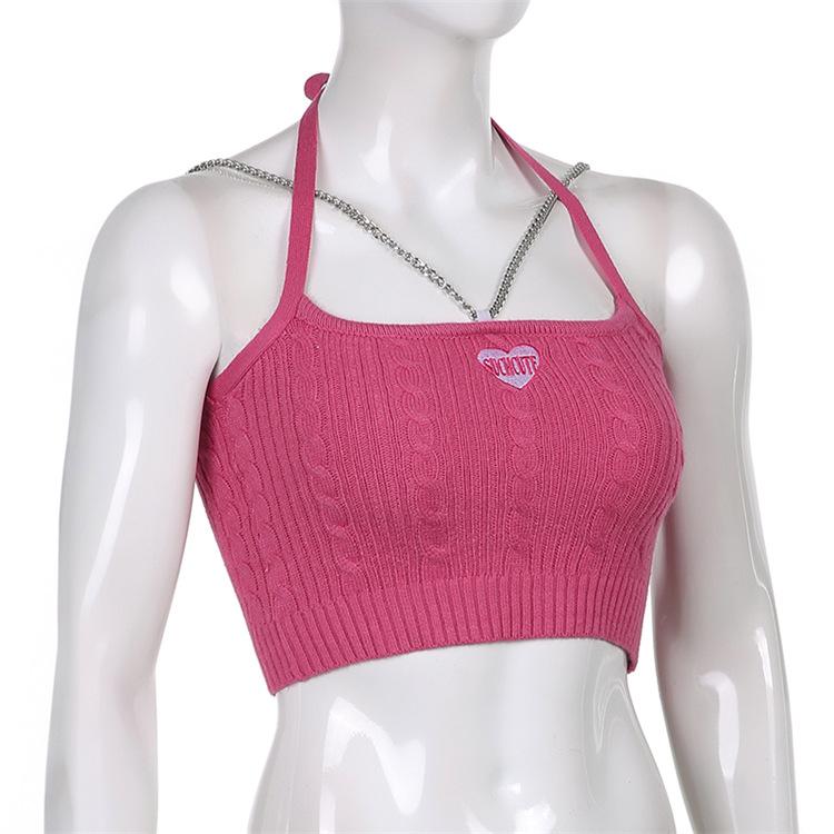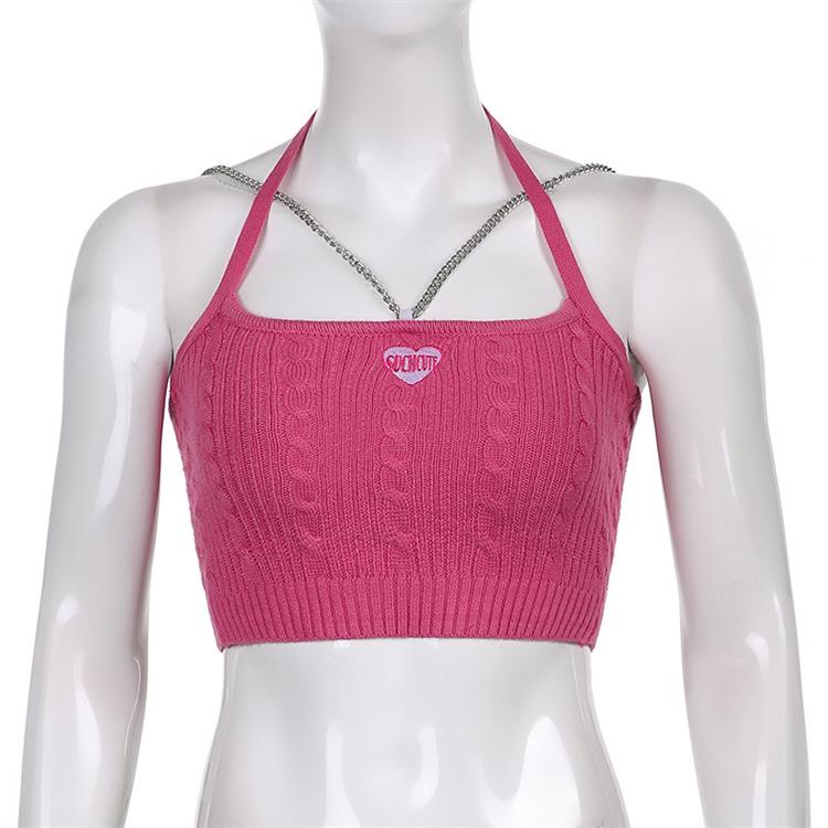 Spice Girl Cadena Vintage Colgante Cuello Tejido Chaleco 2023 Verano Bordado Combinable Ajustado Ombliguera Deseo Puro