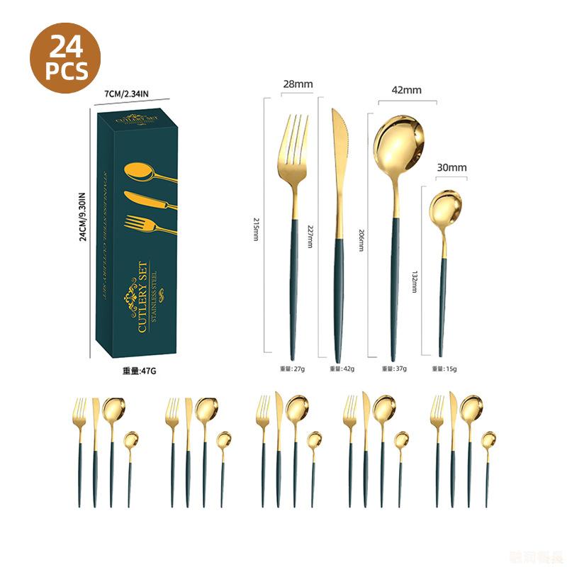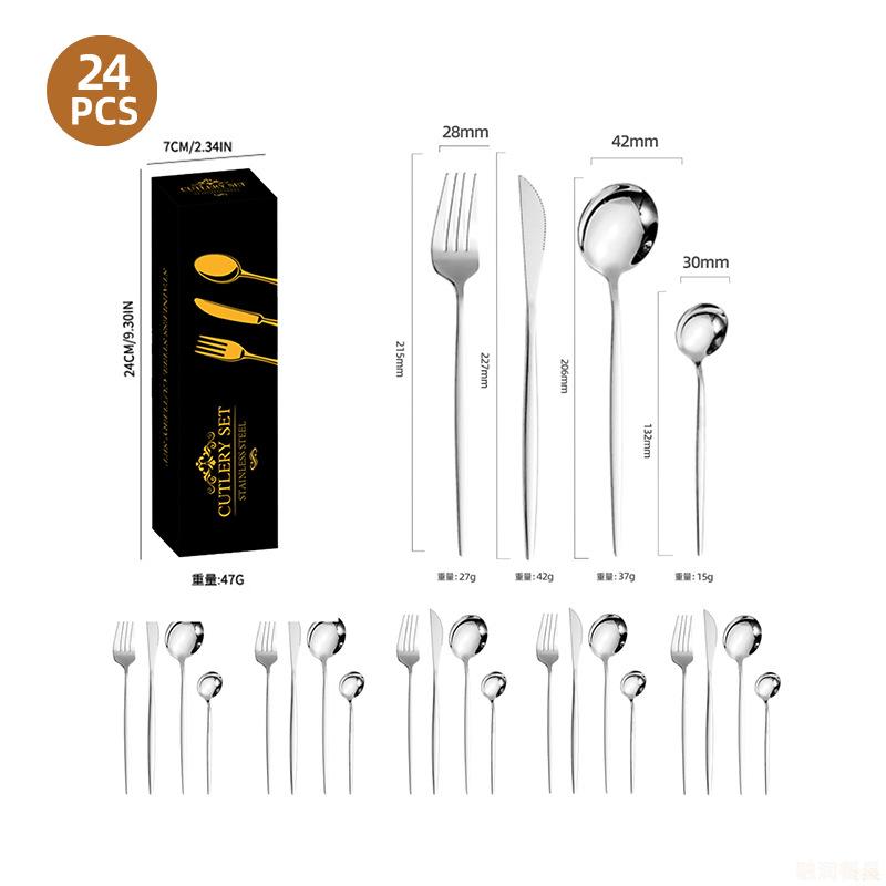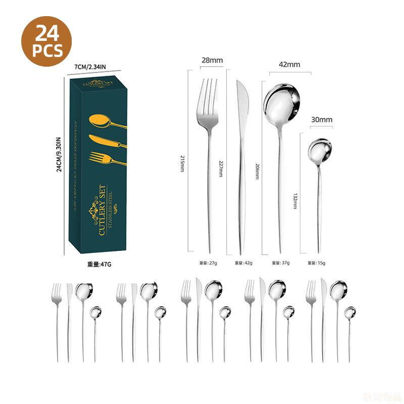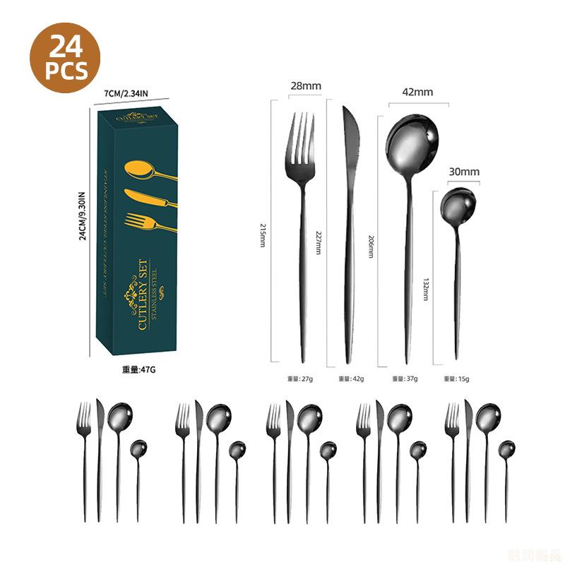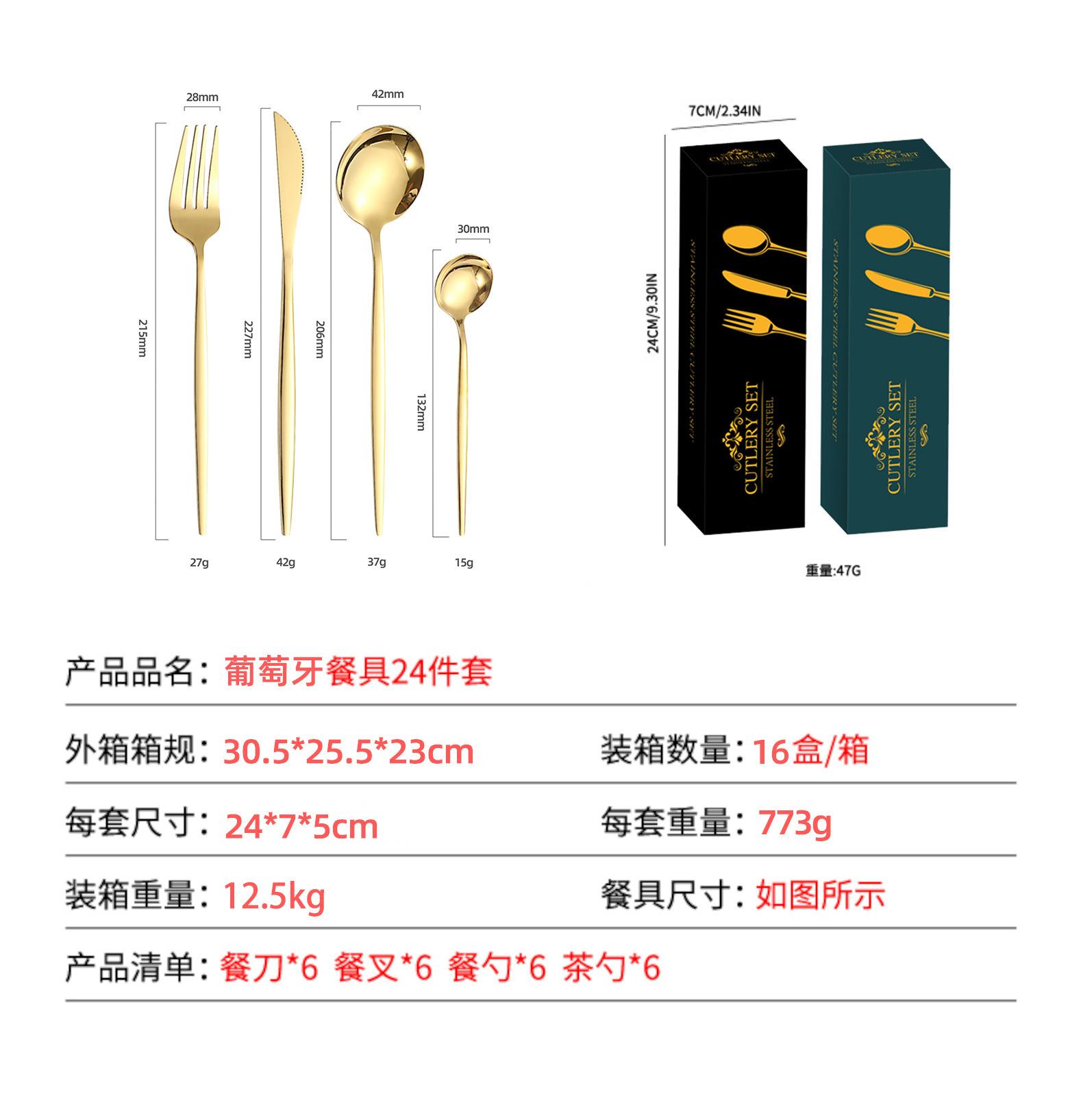 Acero Inoxidable Portugués Vajilla de 24 Piezas Cuchillo para Carne, Tenedor y Cuchara Juego de 4 Piezas Caja de Regalo para el Hogar Caja de Regalo