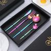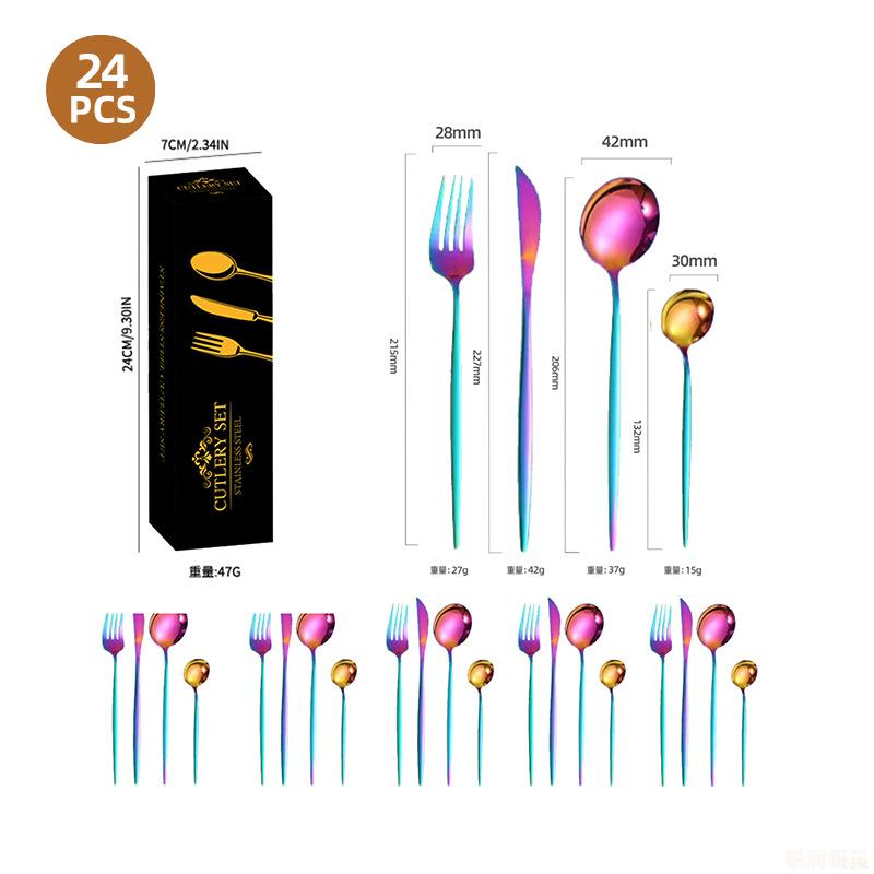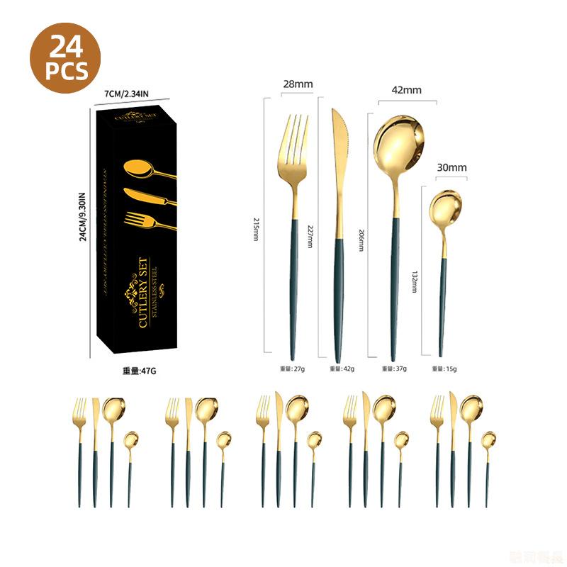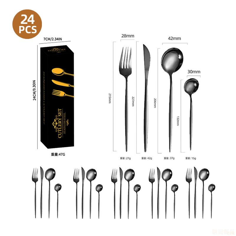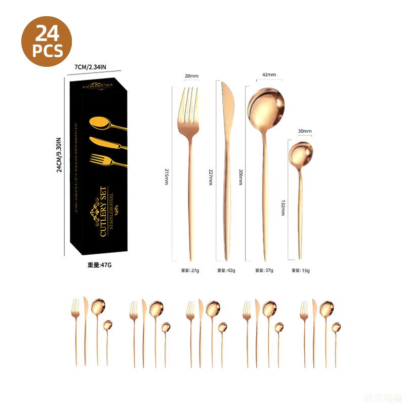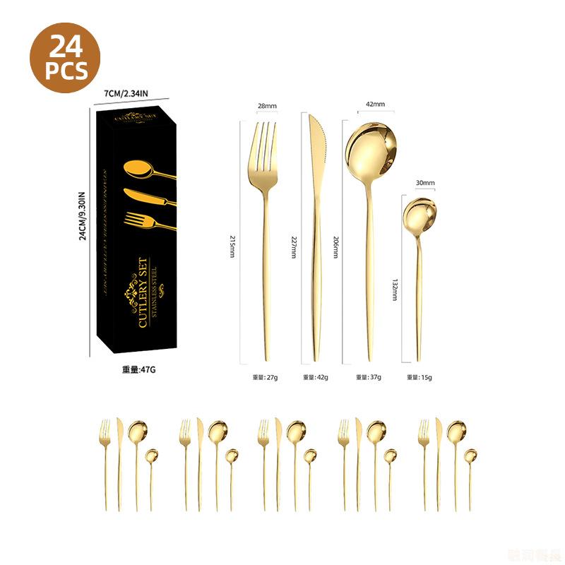 Acero Inoxidable Portugués Vajilla de 24 Piezas Cuchillo para Carne, Tenedor y Cuchara Juego de 4 Piezas Caja de Regalo para el Hogar Caja de Regalo