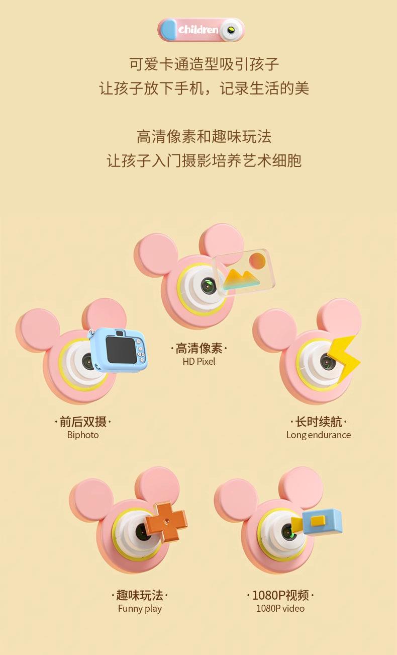 Cámara digital infantil HD de dibujos animados transfronteriza, linda mini cámara digital SLR de juguete, grabadora de video