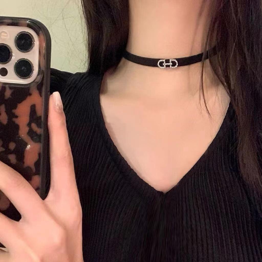 Collar de Cuerda Negra de Nicho con Letra D Gargantilla para Mujer Cadena para Clavícula Correa para el Cuello Accesorios para el Cuello Collar