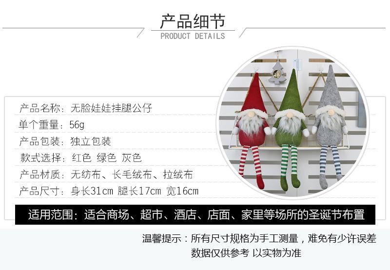 Suministros de Decoración Navideña 2019 Muñeco sin Rostro Piernas Largas Sentado Muñeco de Papá Noel Colgante Decoración de Ventana