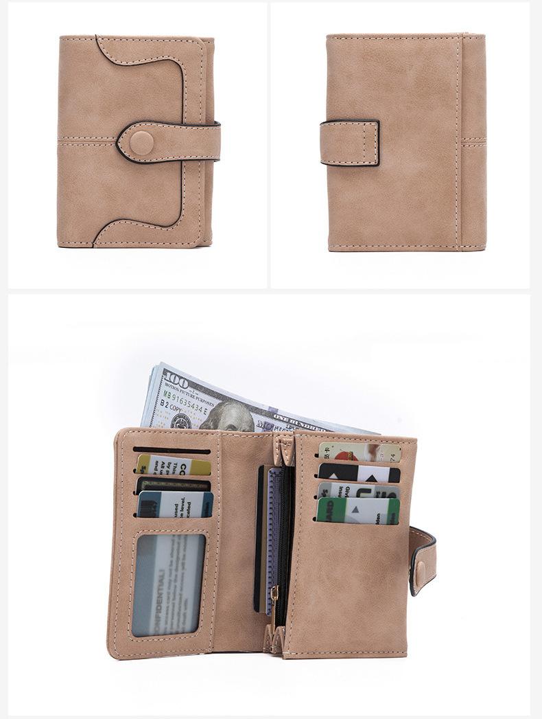 | Amazon AliExpress billetera de comercio exterior transfronterizo para mujer corta europea y americana retro esmerilada con cremallera para mujer monedero con cremallera |