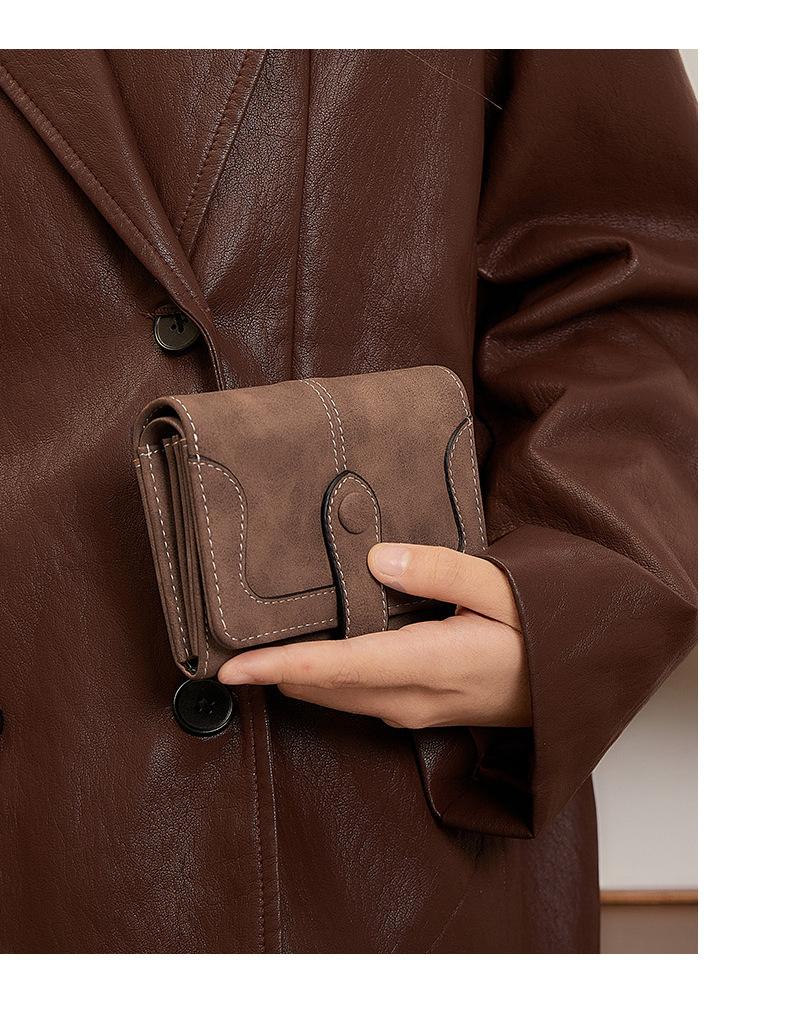 | Cartera corta para mujer estilo retro europeo y americano de PU esmerilado con hebilla metálica de hoja, cremallera, plegable, multifuncional, monedero para estudiantes |