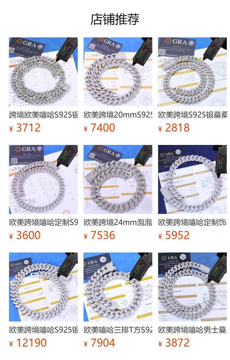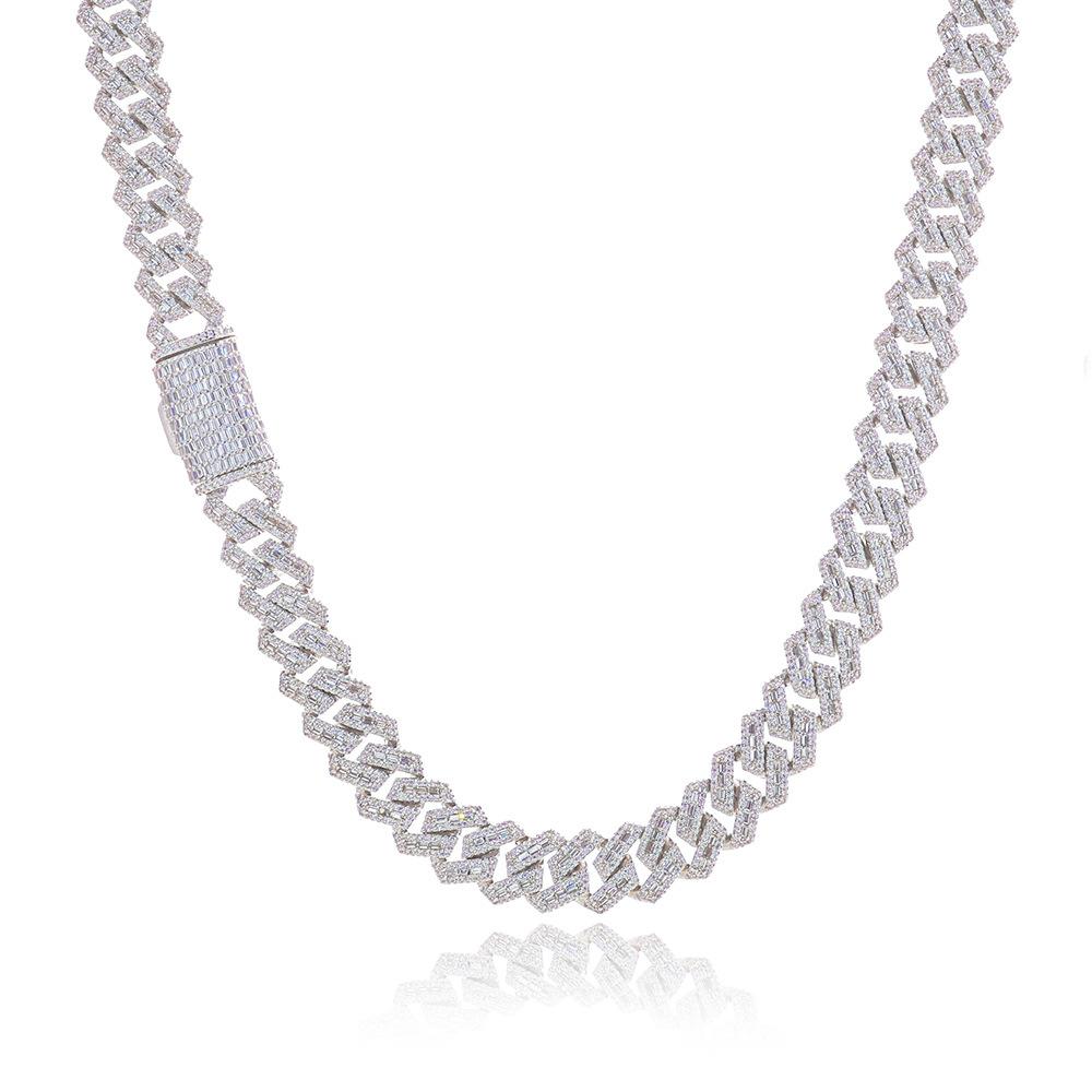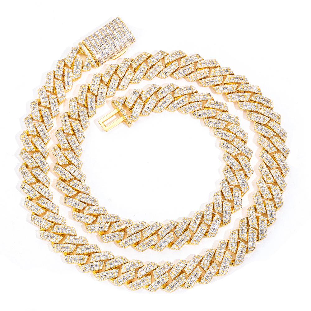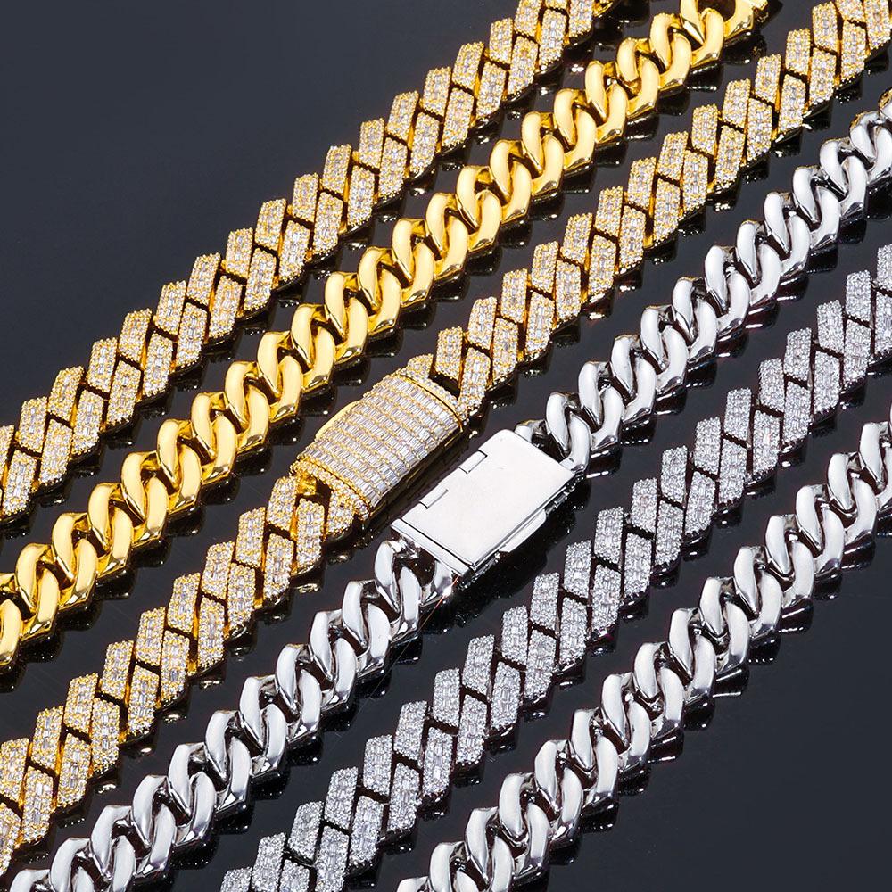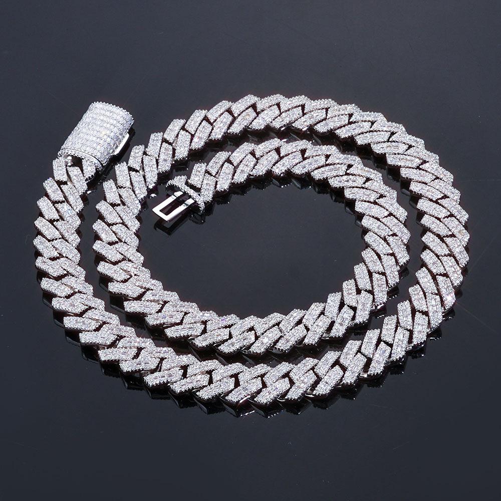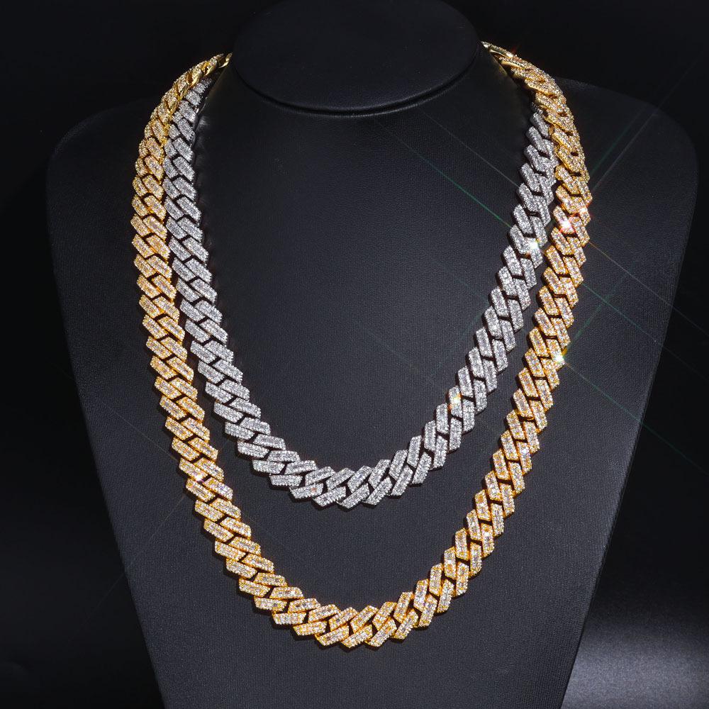 Collar Europeo y Americano de Hip-Hop Transfronterizo de 14 mm de Plata 925 con Incrustaciones Mixtas de Moissanita en Forma de T para Hombre, Joyería de Lujo de Alta Gama Hecha a Medida