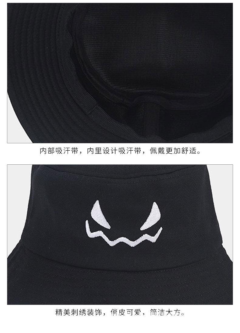 Nuevo Sombrero de Pescador Bordado de Cara de Fantasma Transfronterizo Estilo Coreano para Estudiantes Hombres y Mujeres Sombrero para el Sol Sombrero de Cubeta Estilo Japonés Protección Solar Sombrero de Pescador para Mujeres
