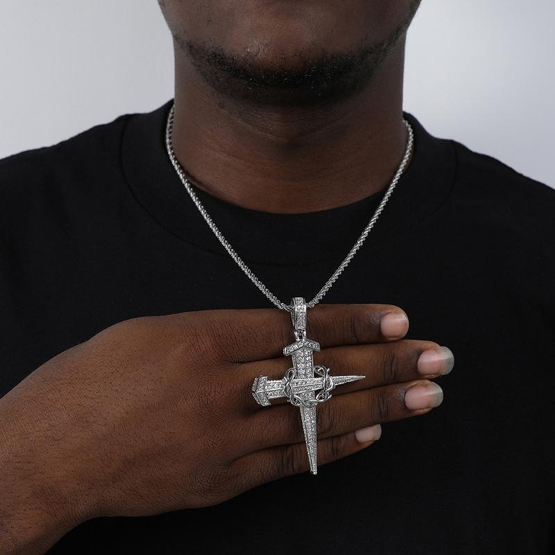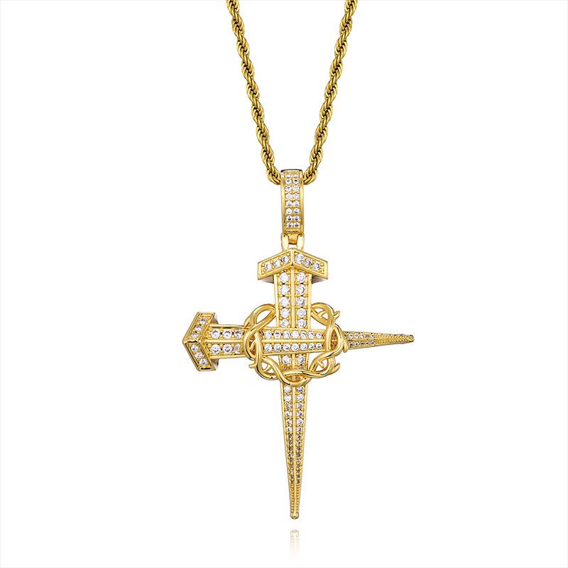 Collar con Colgante de Acero de Titanio Chapado en Oro con Cruz de Moda Hip-Hop Transfronteriza Europea y Americana en Forma de Uña Listo para la Venta Venta Caliente Temu