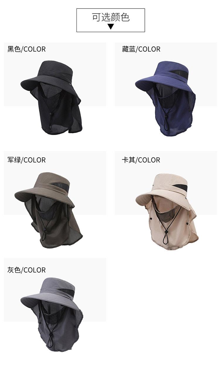 Verano Sombrero Nuevo Montañismo al Aire Libre Sombrilla Sombrero de Pescador Hombres y Mujeres Ala Grande Transpirable Máscara Chal Protección Solar Sombrero de Pesca