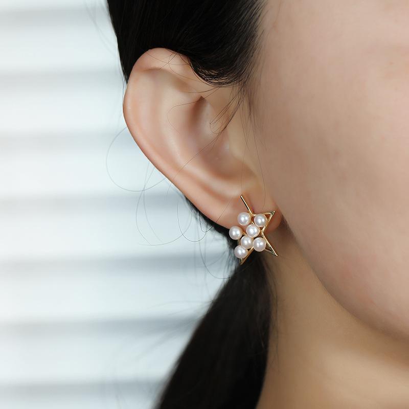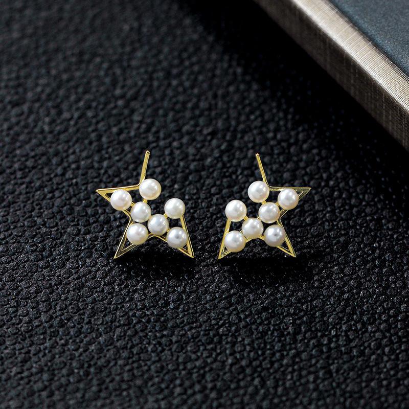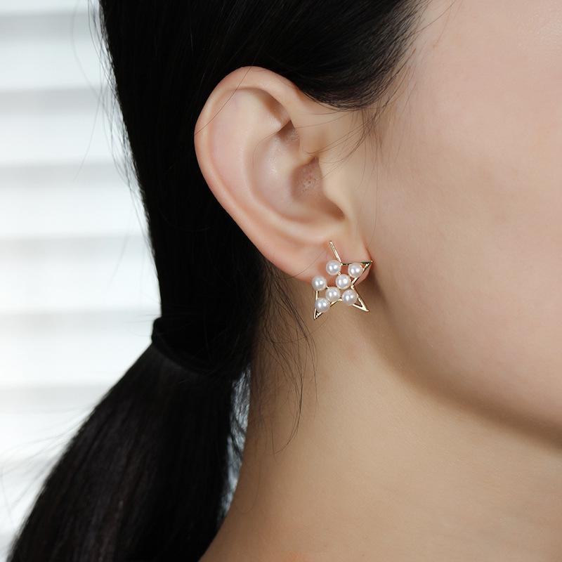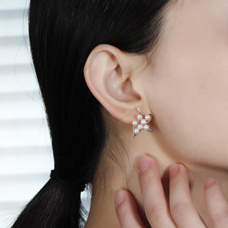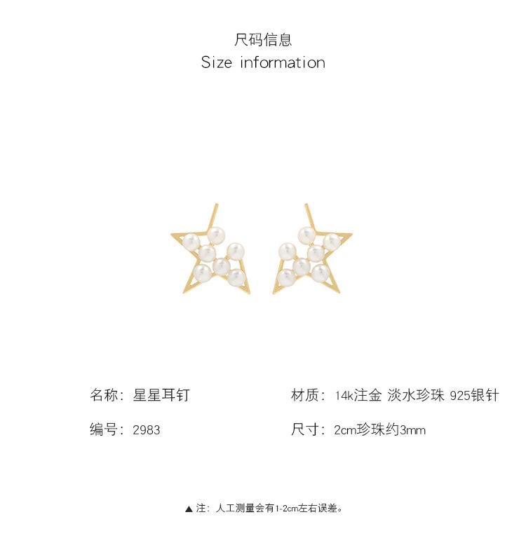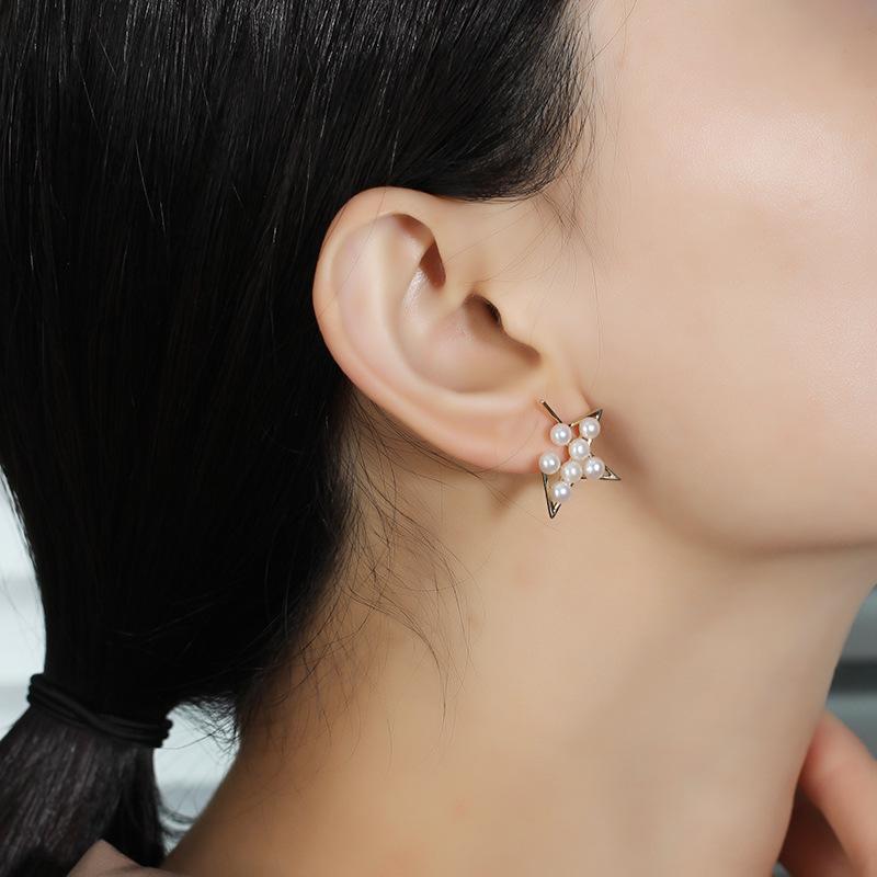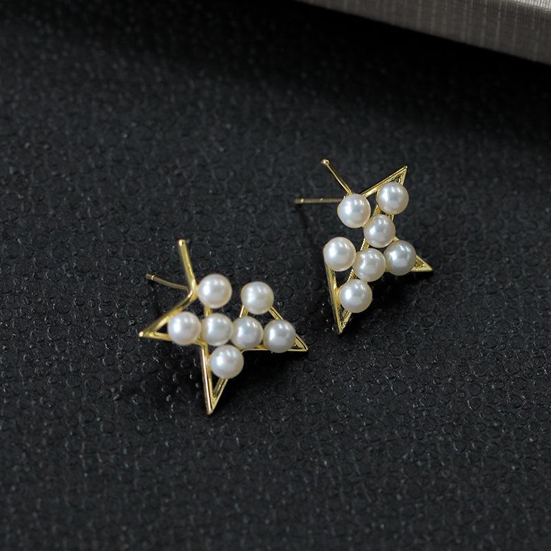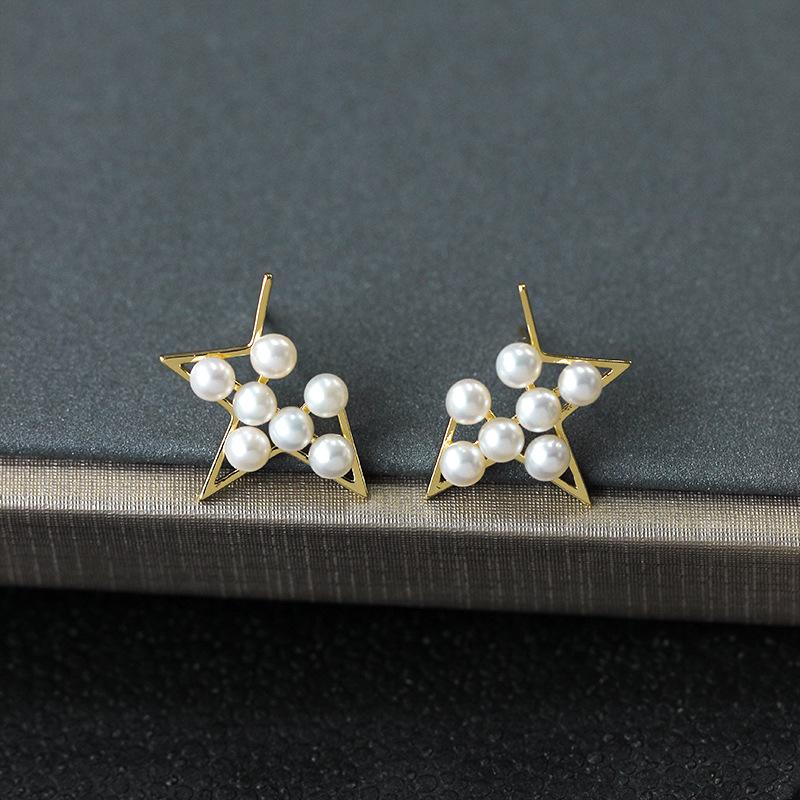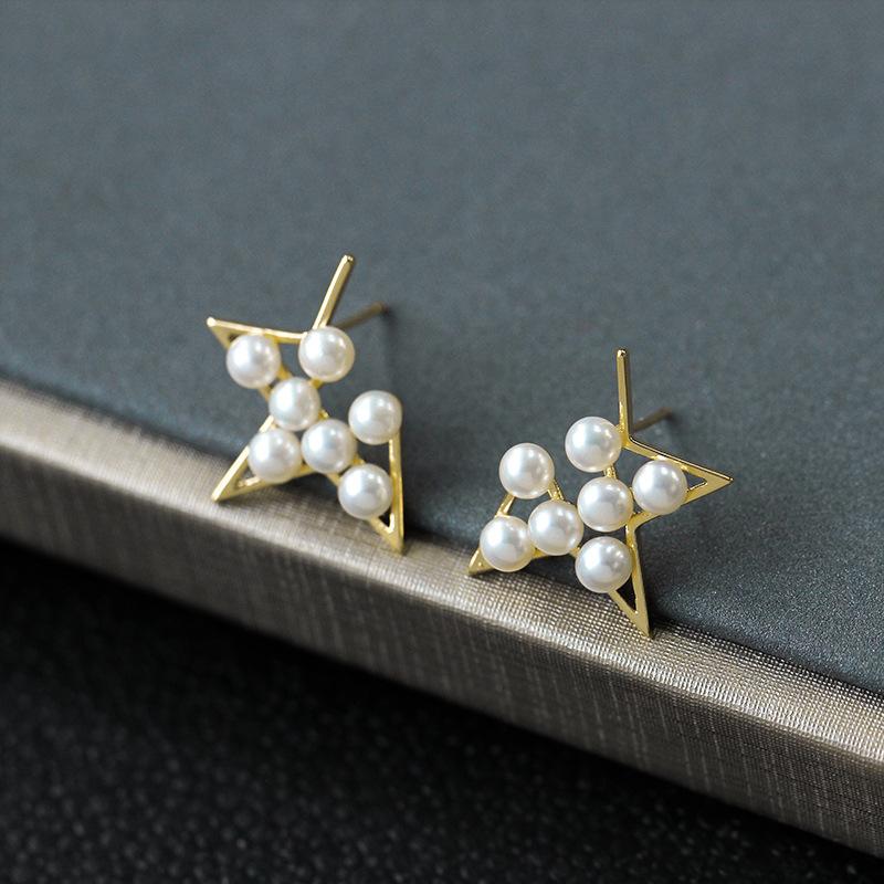 Pendientes de estrella con tachuelas diseño Pendientes de aguja de plata con perlas pendientes Moda de Corea del Sur pendientes dulces simples para todo