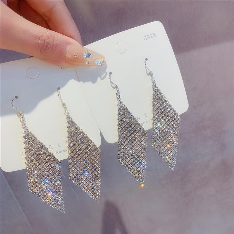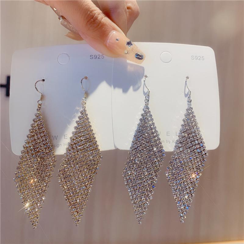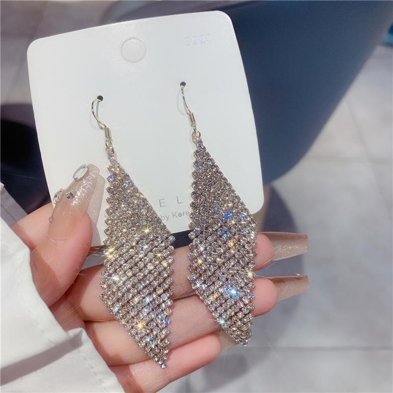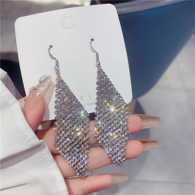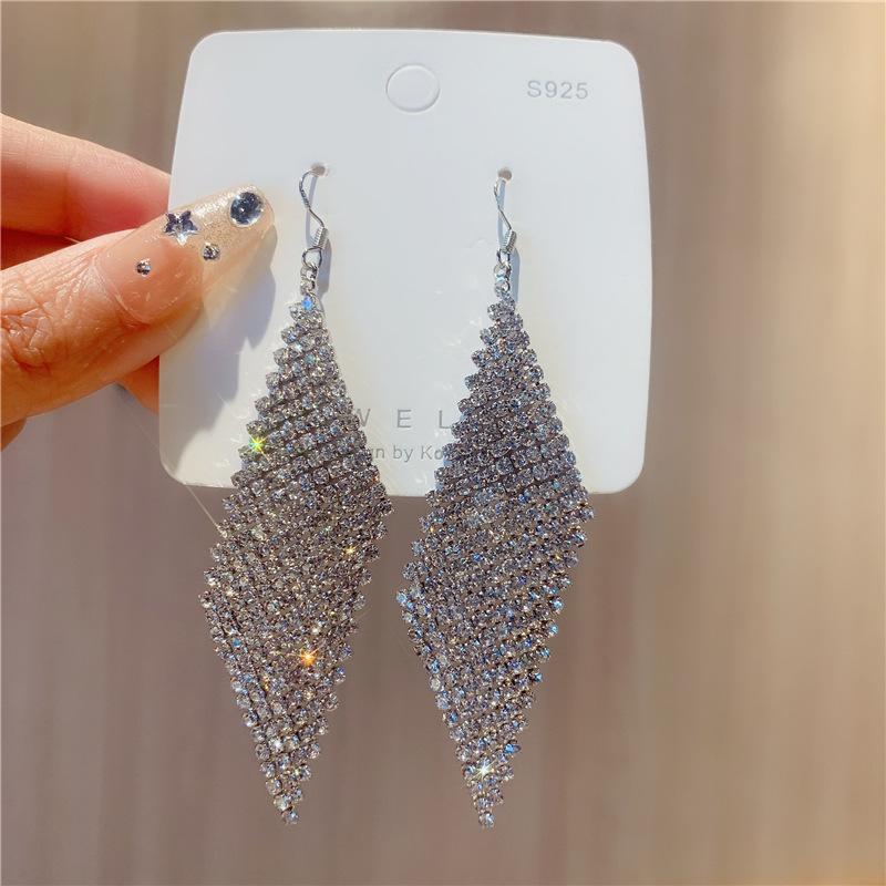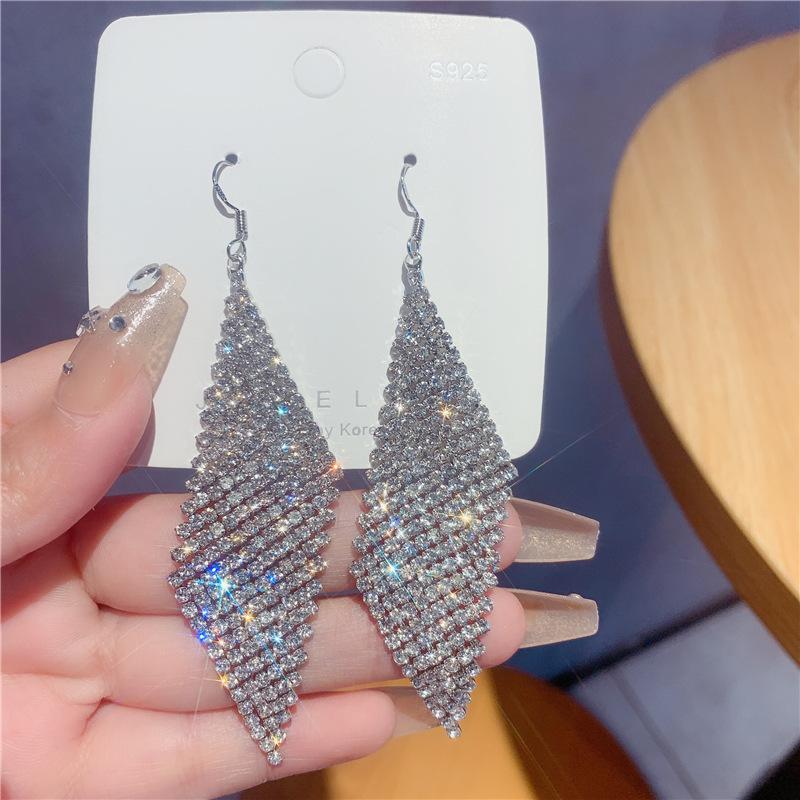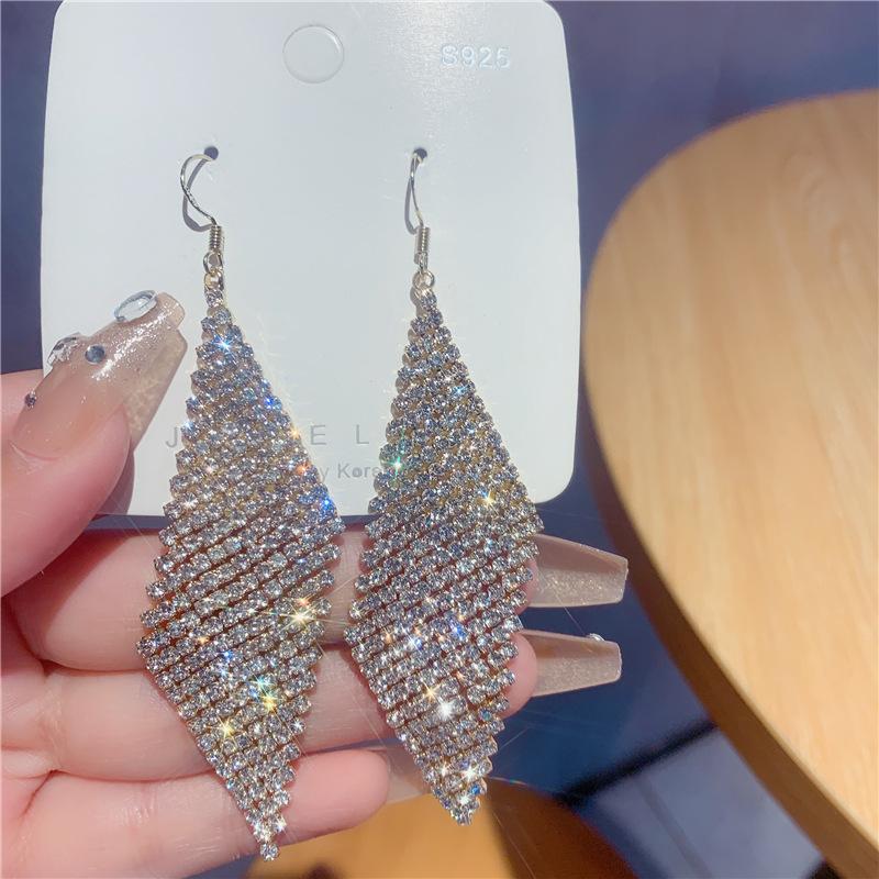 Pendientes geométricos superbrillantes con diamantes para mujer, estilo coreano, exagerados y distintivos, joyería de moda al por mayor.