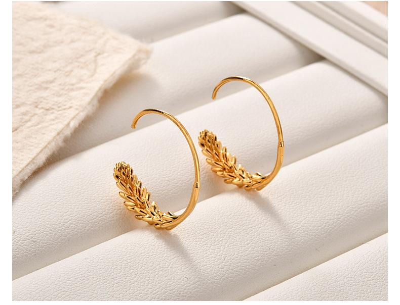 Aretes Redondos de Diseño Nicho Espiga de Trigo Dorado, Modernos, Simples y Versátiles, Estilo Pastoral, Exquisitos Aretes Personalizados para Mujer