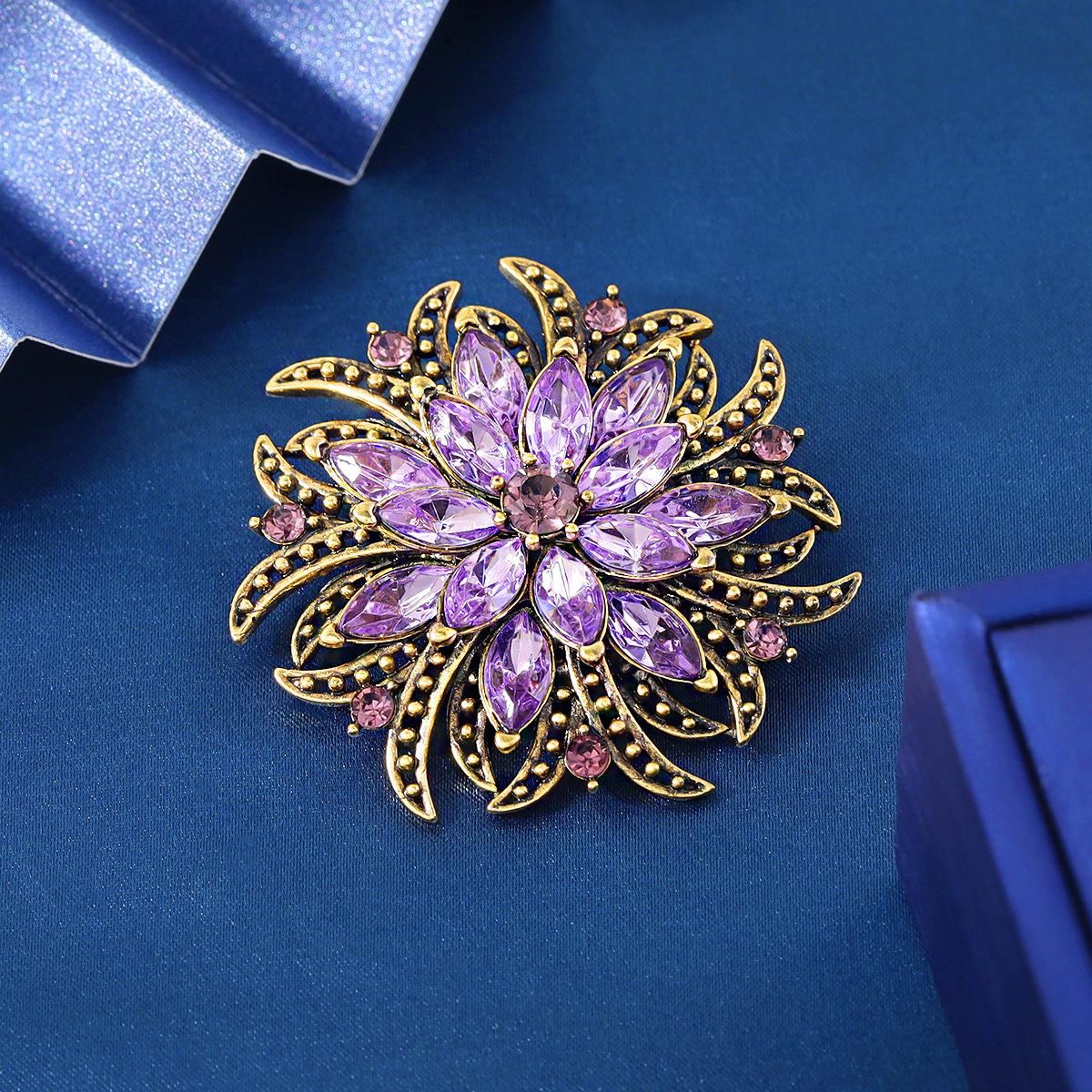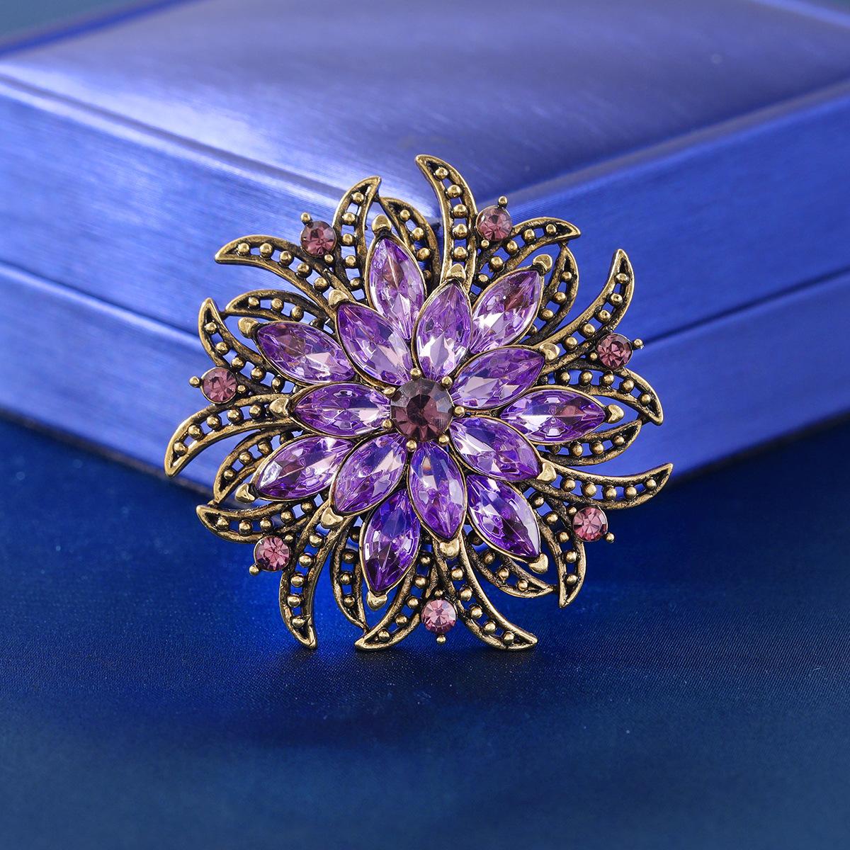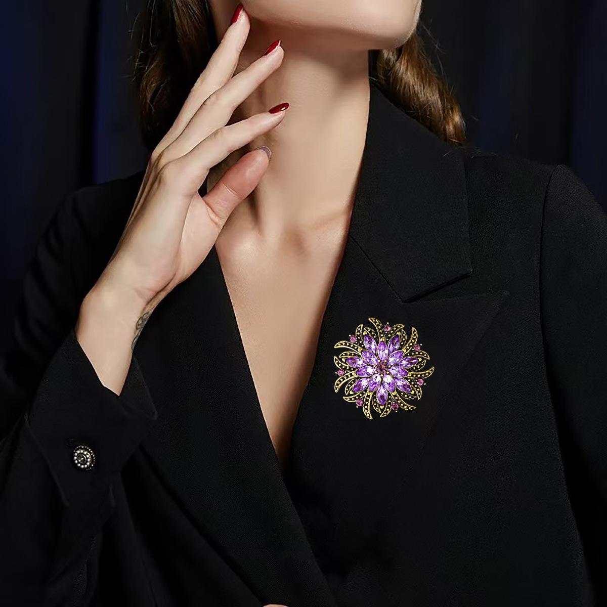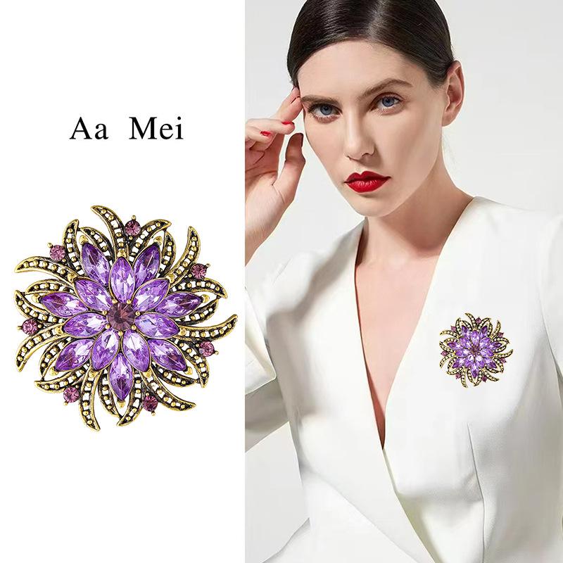 Broche de Flor Acrílico de Diamantes Completos de Diseño Original para Mujer Estilo Coreano Corsage Pin Retro Anti-Exposición Moda Exquisito Aleación
