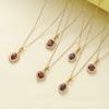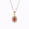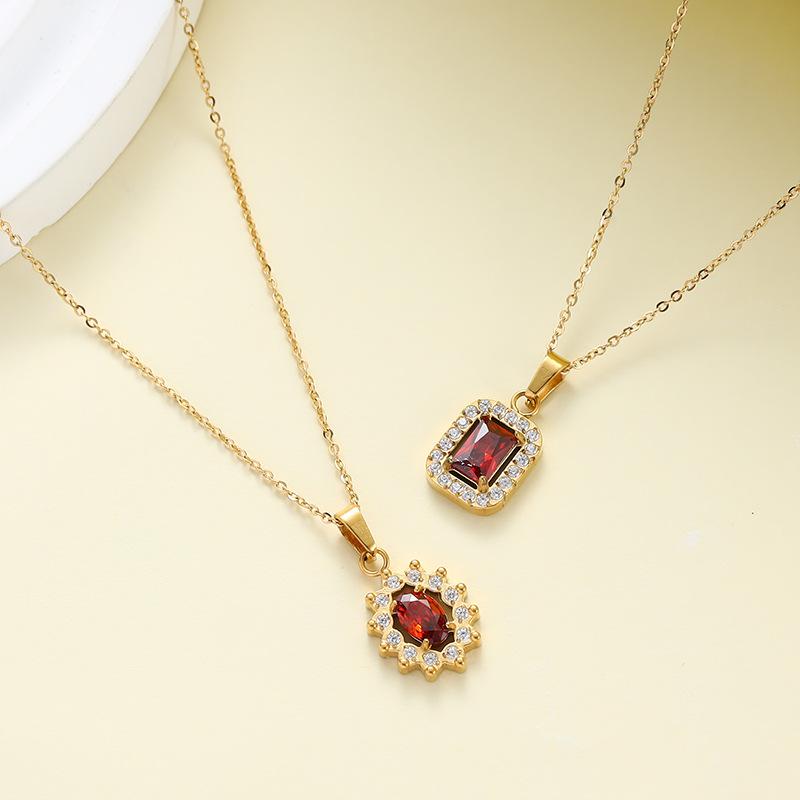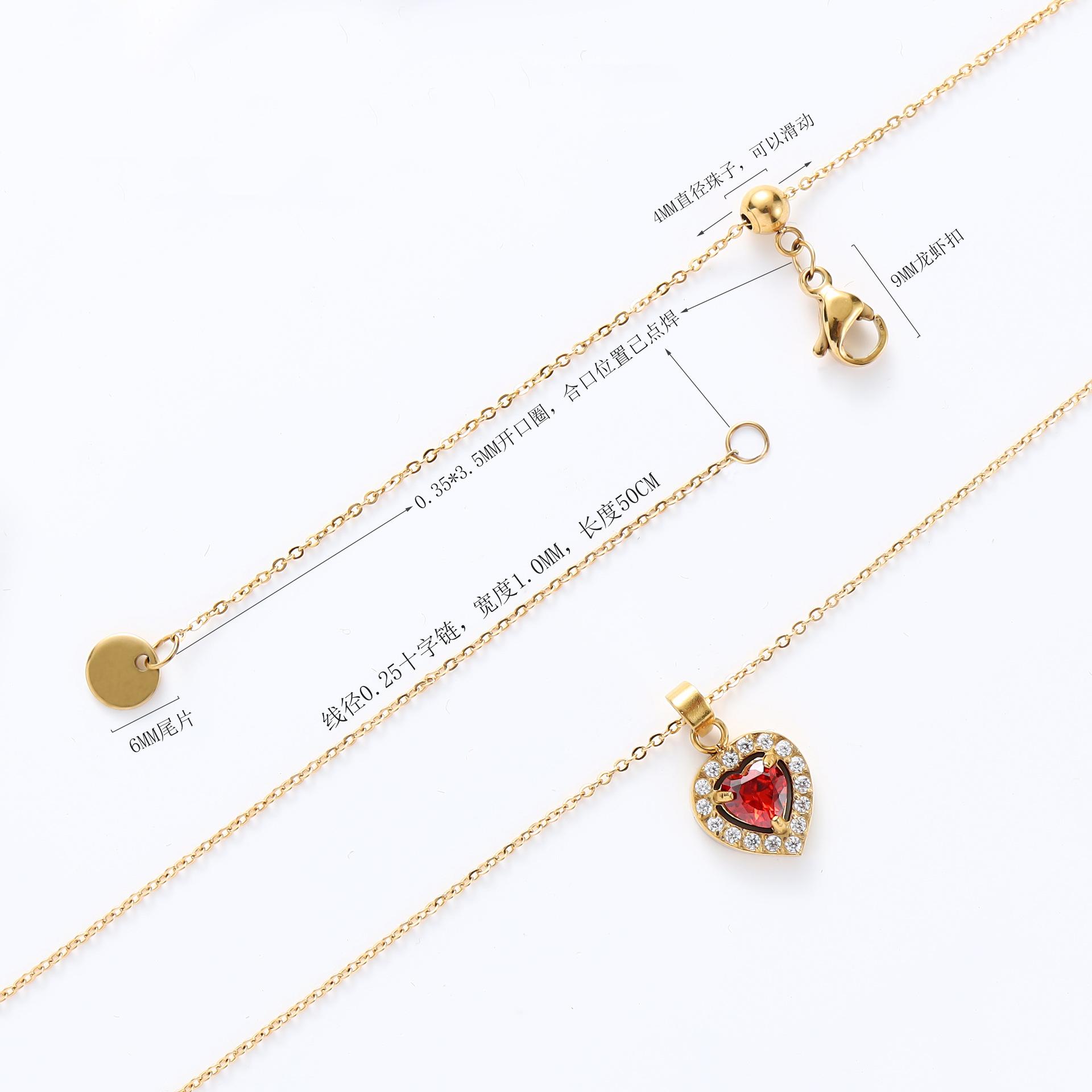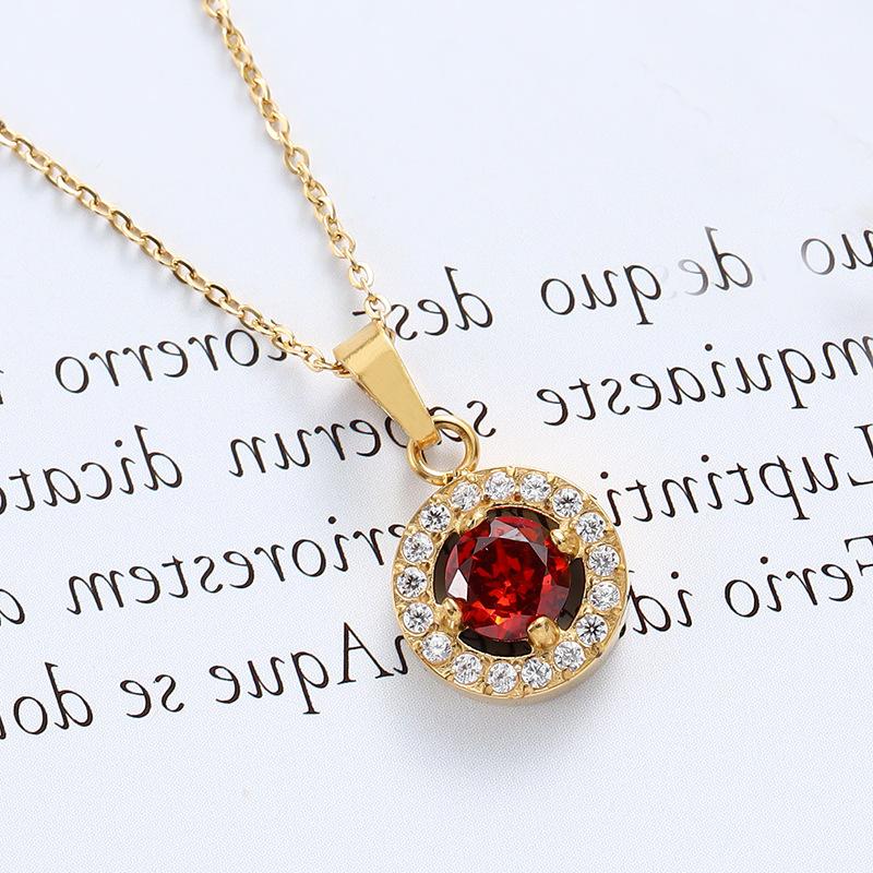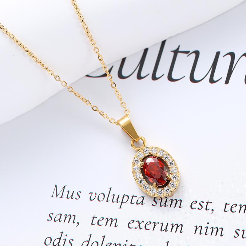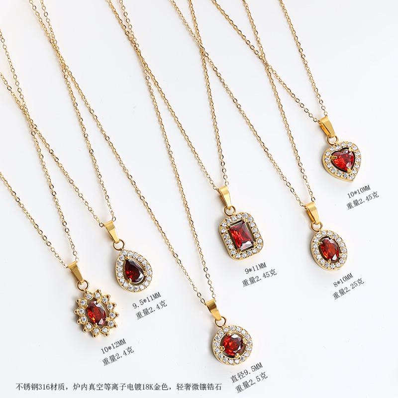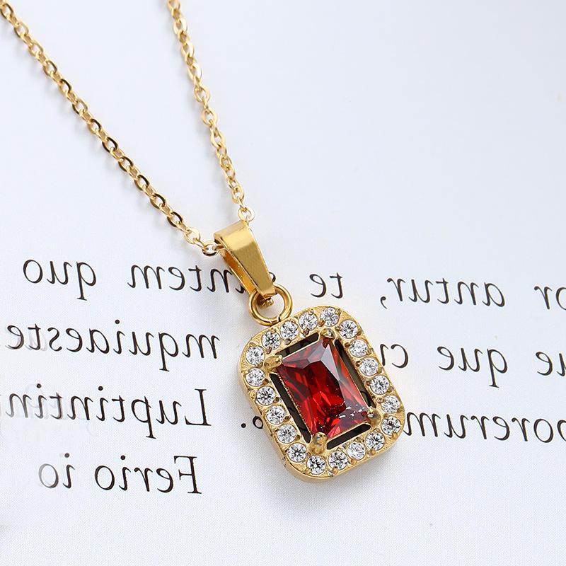 Collar de Clavícula de Circonita Roja Popular de Celebridad de Internet Acero Inoxidable Chapado en Oro de 18K Colgante Versátil Retro Cadena de Clavícula para Mujer