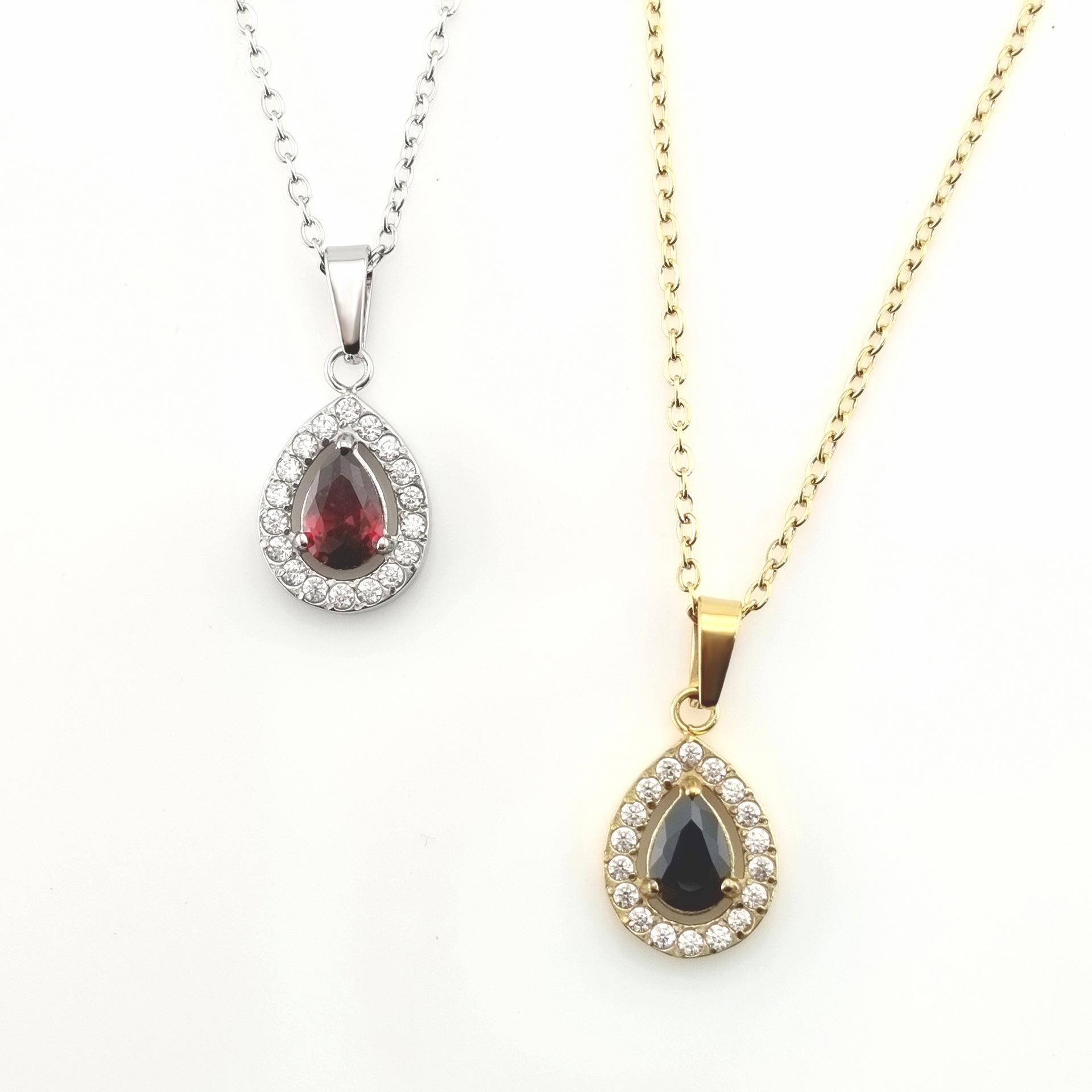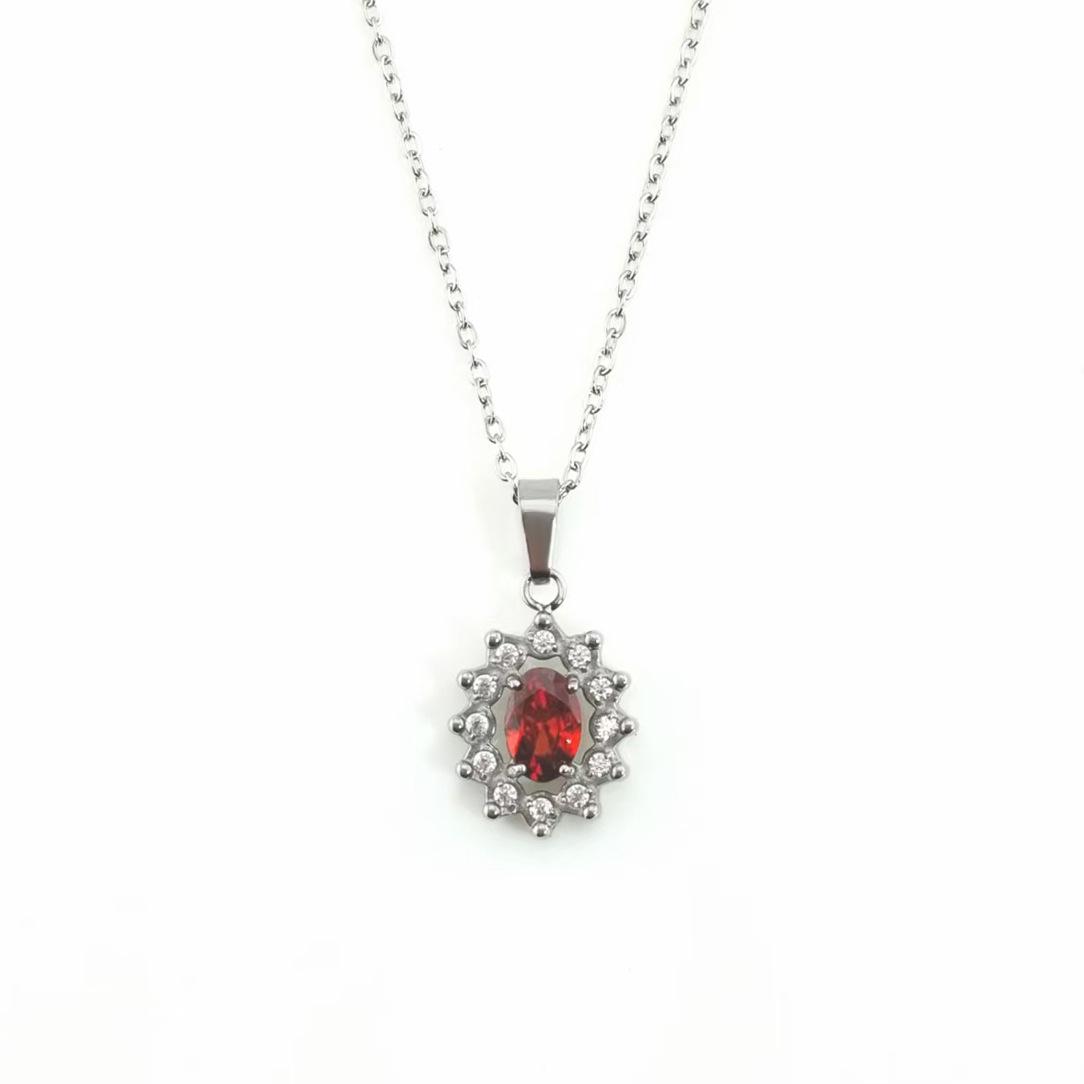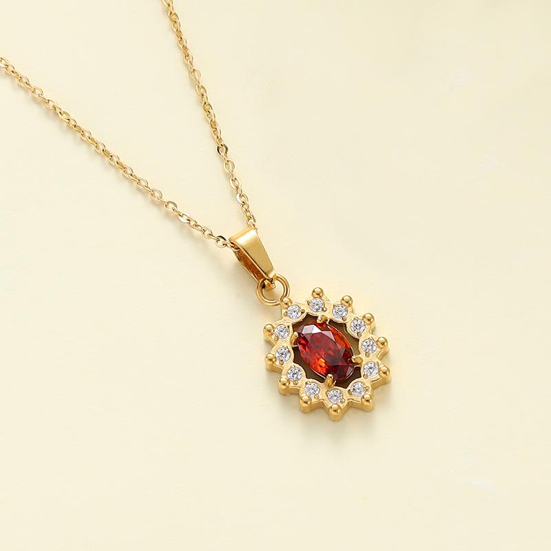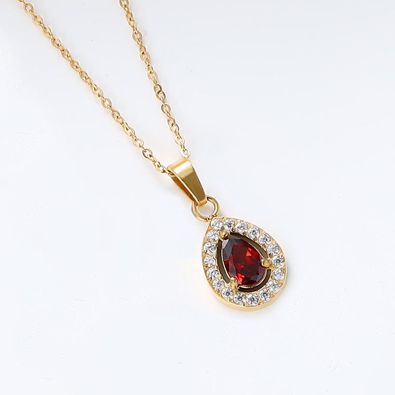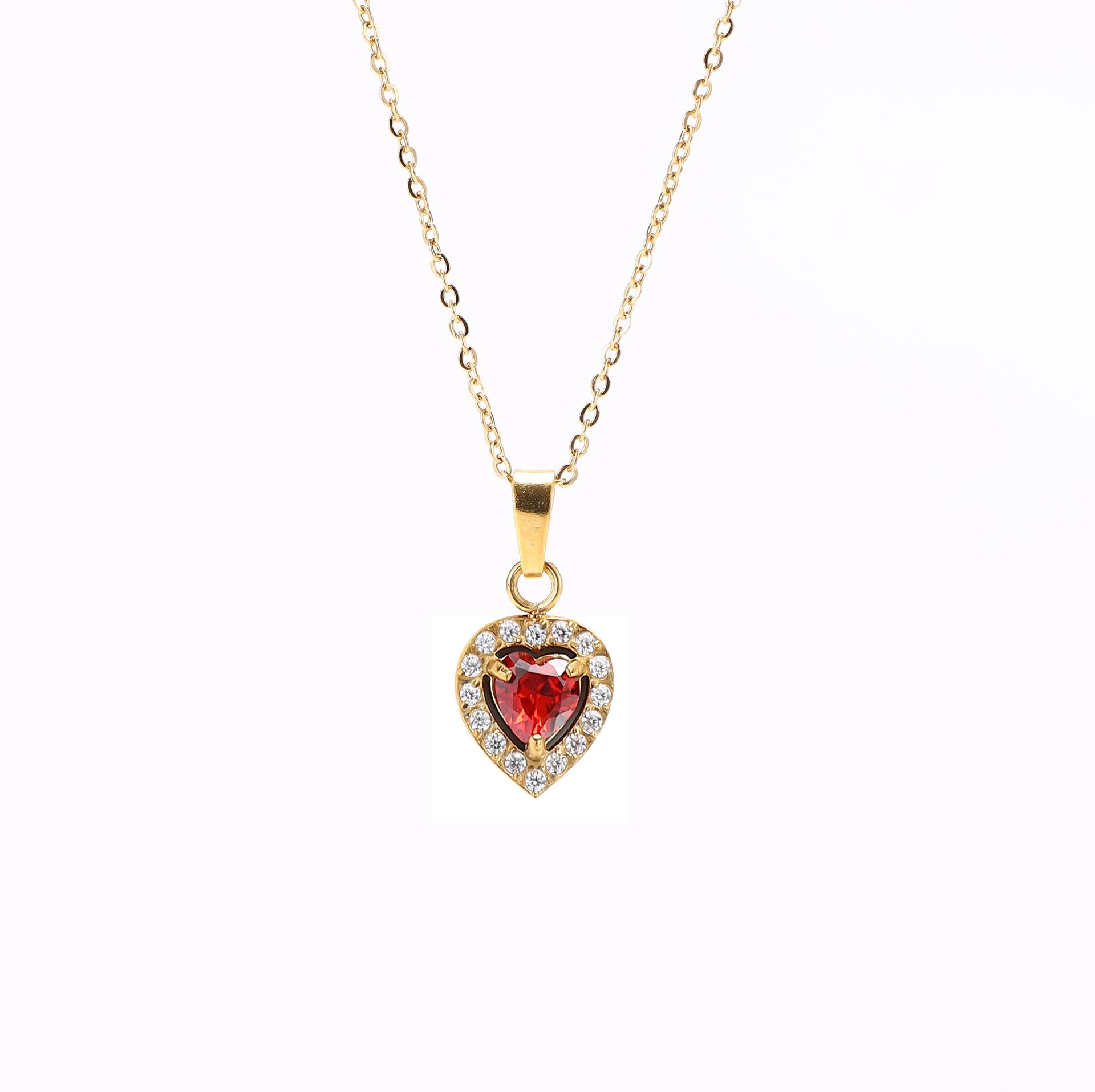 Collar de Clavícula de Circonita Roja Popular de Celebridad de Internet Acero Inoxidable Chapado en Oro de 18K Colgante Versátil Retro Cadena de Clavícula para Mujer