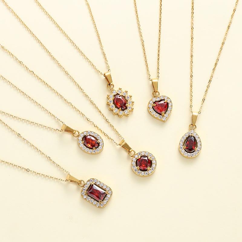 N0005 golden rectangular red stone, N0007 golden round red stone, N0008 golden heart-shaped red stone, N0009 g...